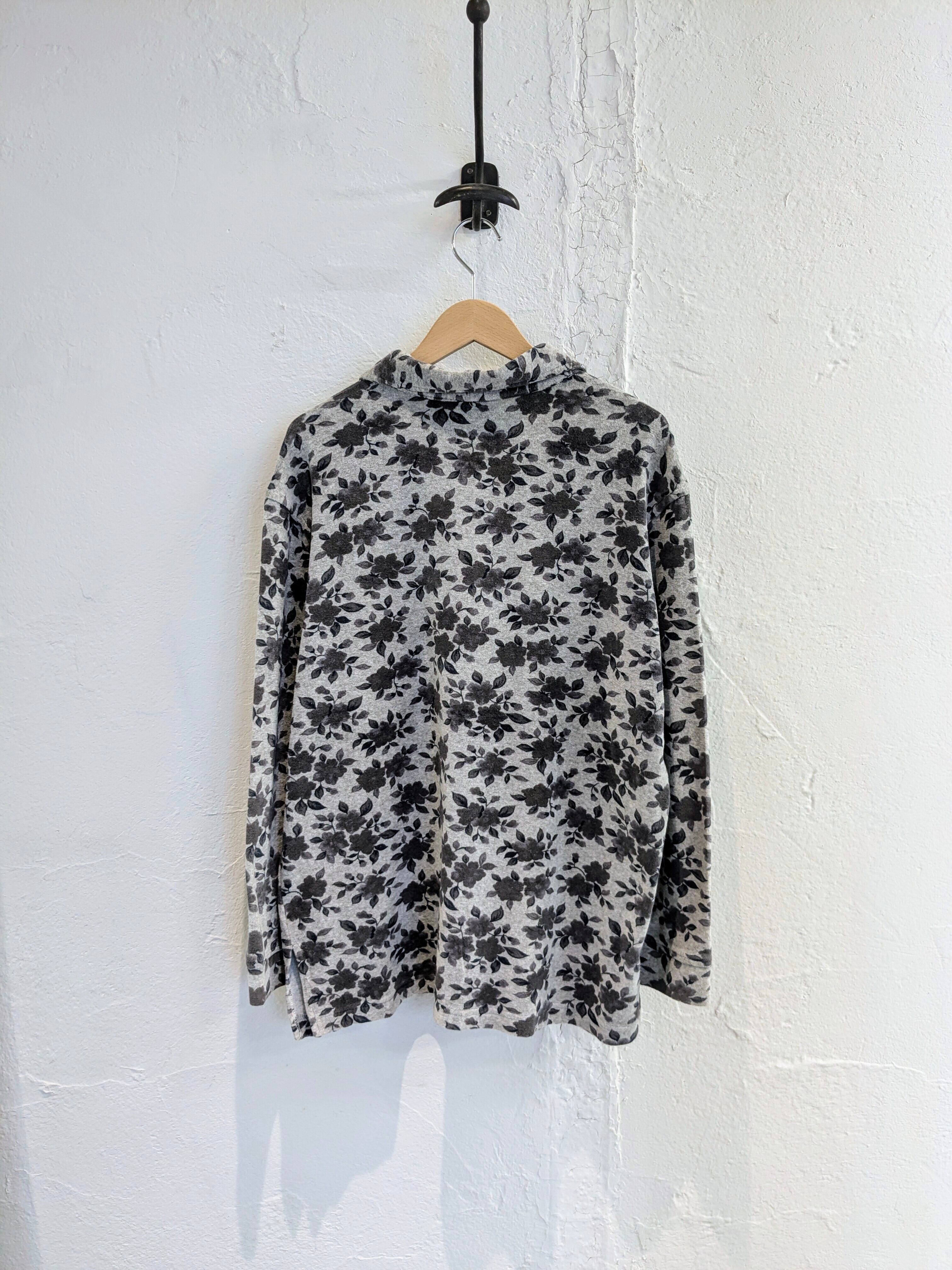 花の総柄シャツ。パイル生地になっていて、マットな落ち着いた面持ちをしており、派手すぎない、大人な花柄シャツ。1枚でもインナーでも存在感を発揮してくれます。生地は厚すぎないので、シーズン的にも長く使える1枚となっています。