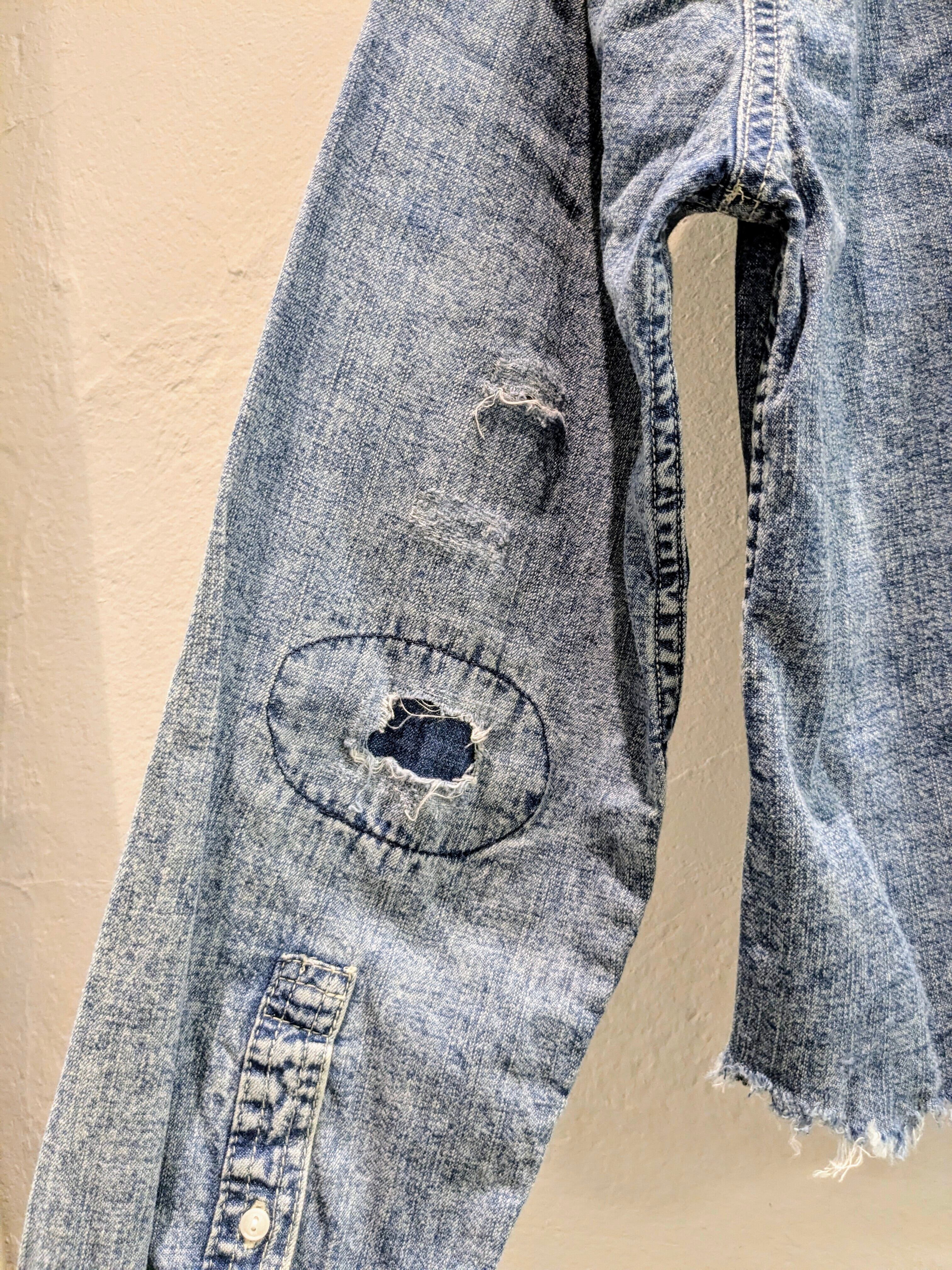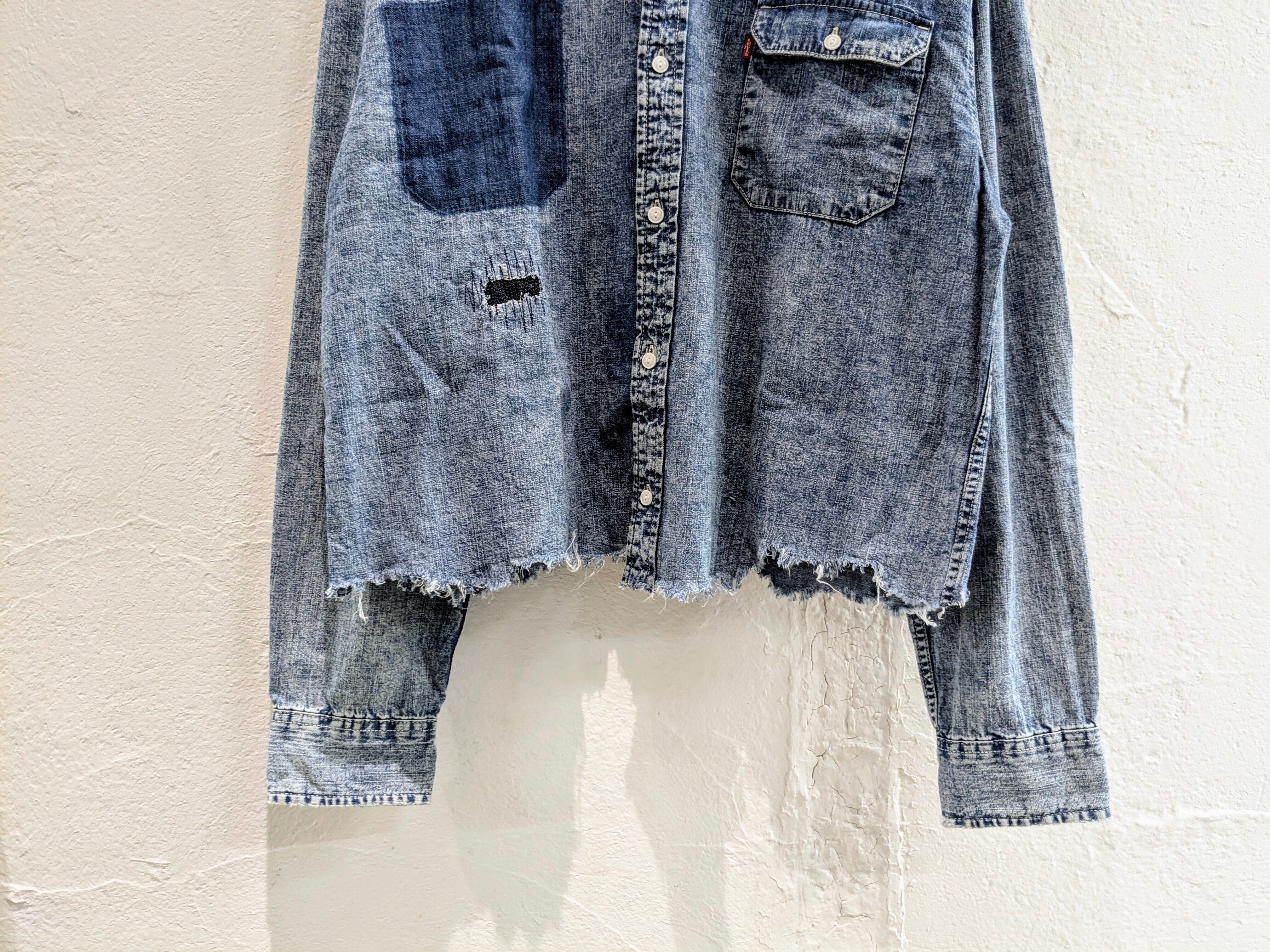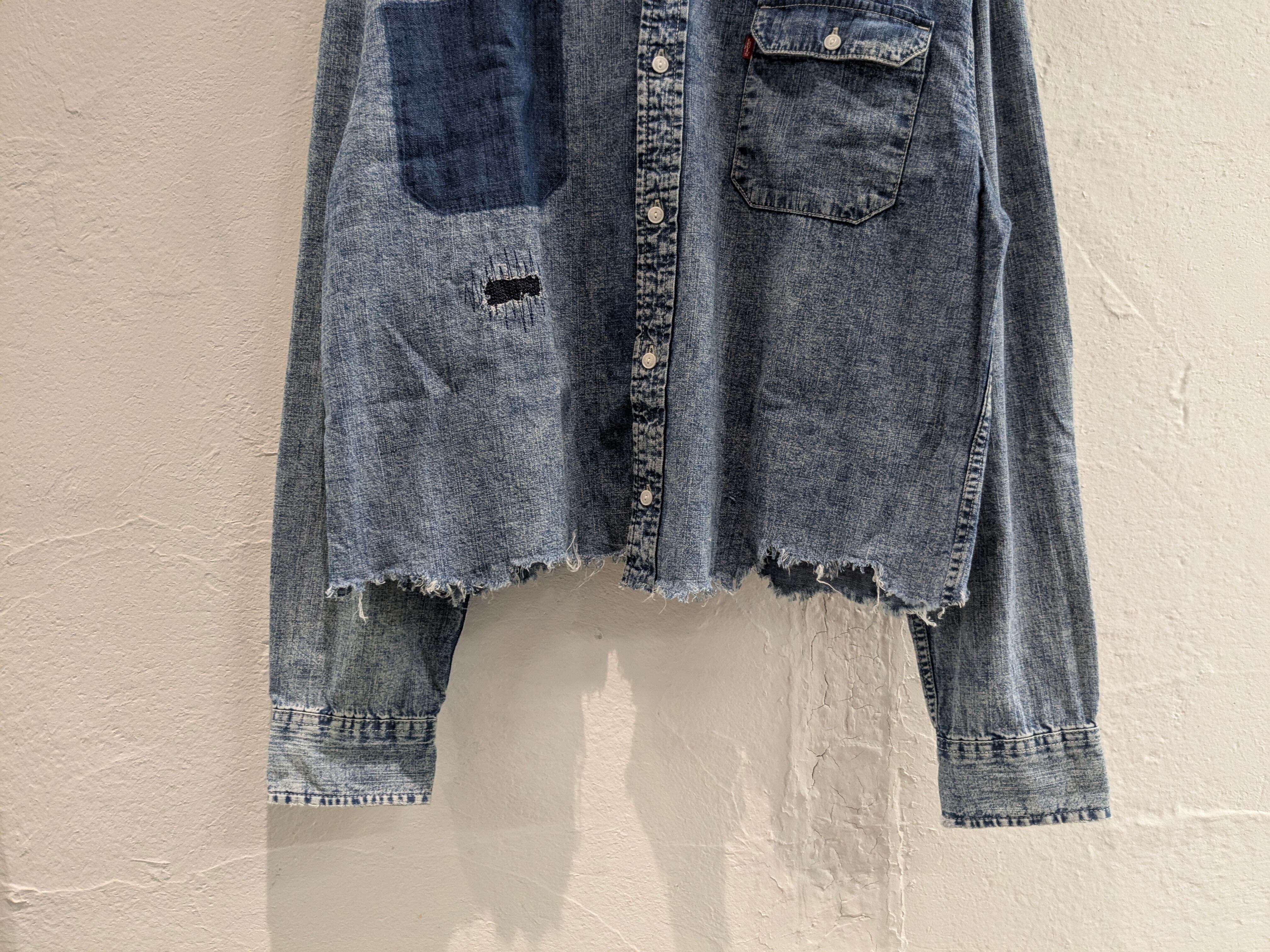 DAMAGE AND REPAIR CUTOFF DENIM SHIRT