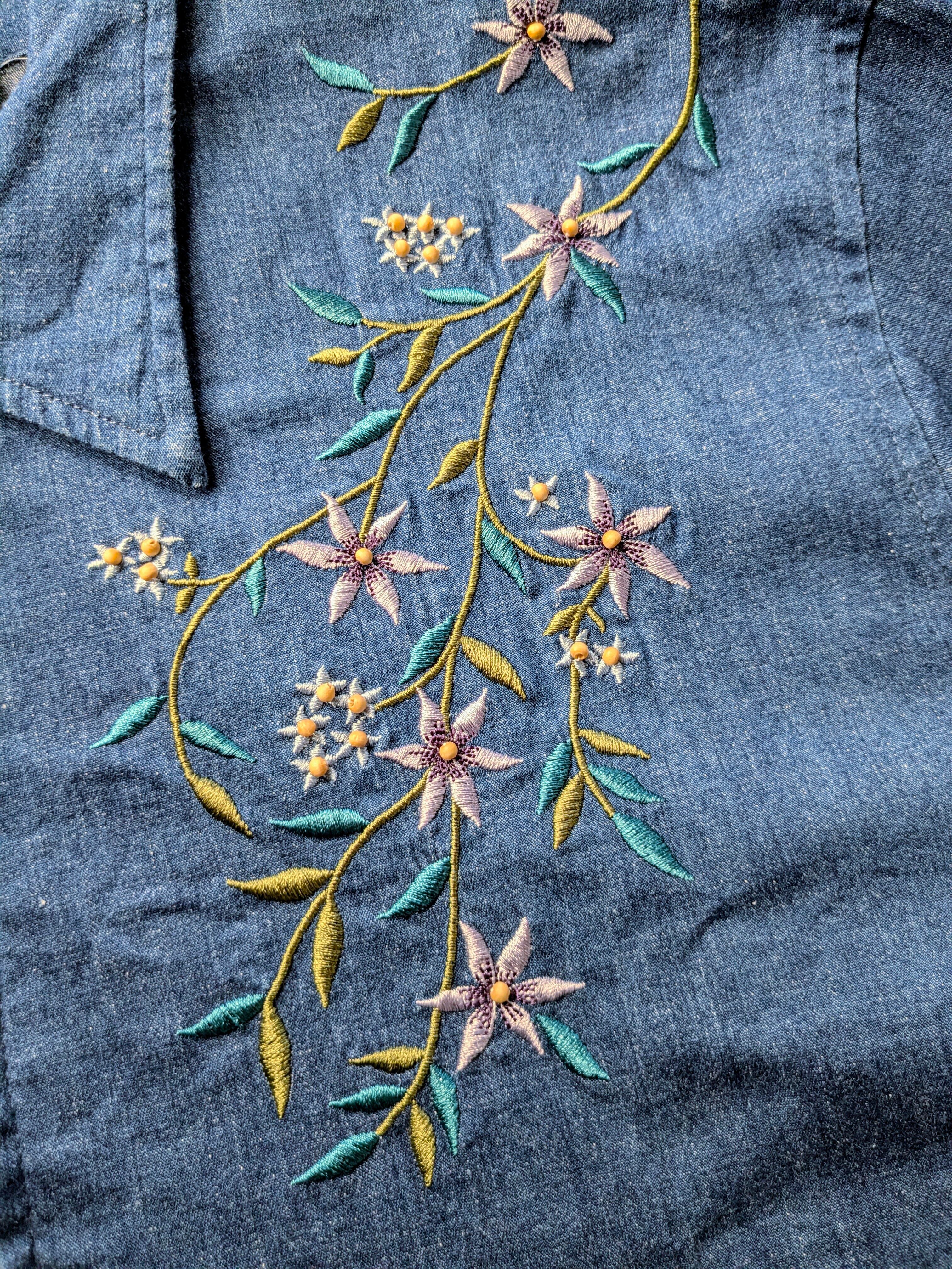 とにかく花の刺繍が繊細で上品なデザインのデニムブルゾン。とても綺麗な刺繍で色使いもとても上品。