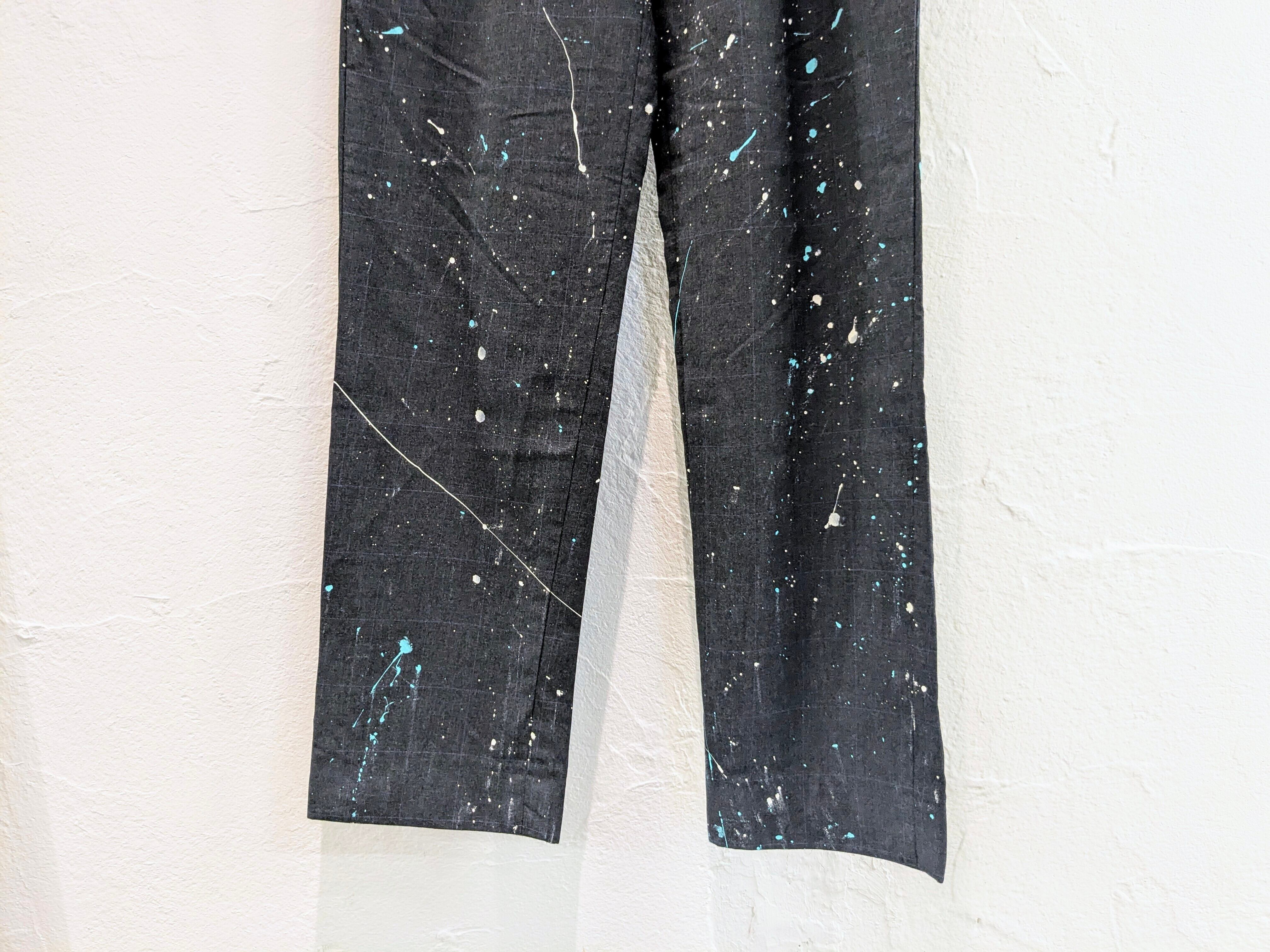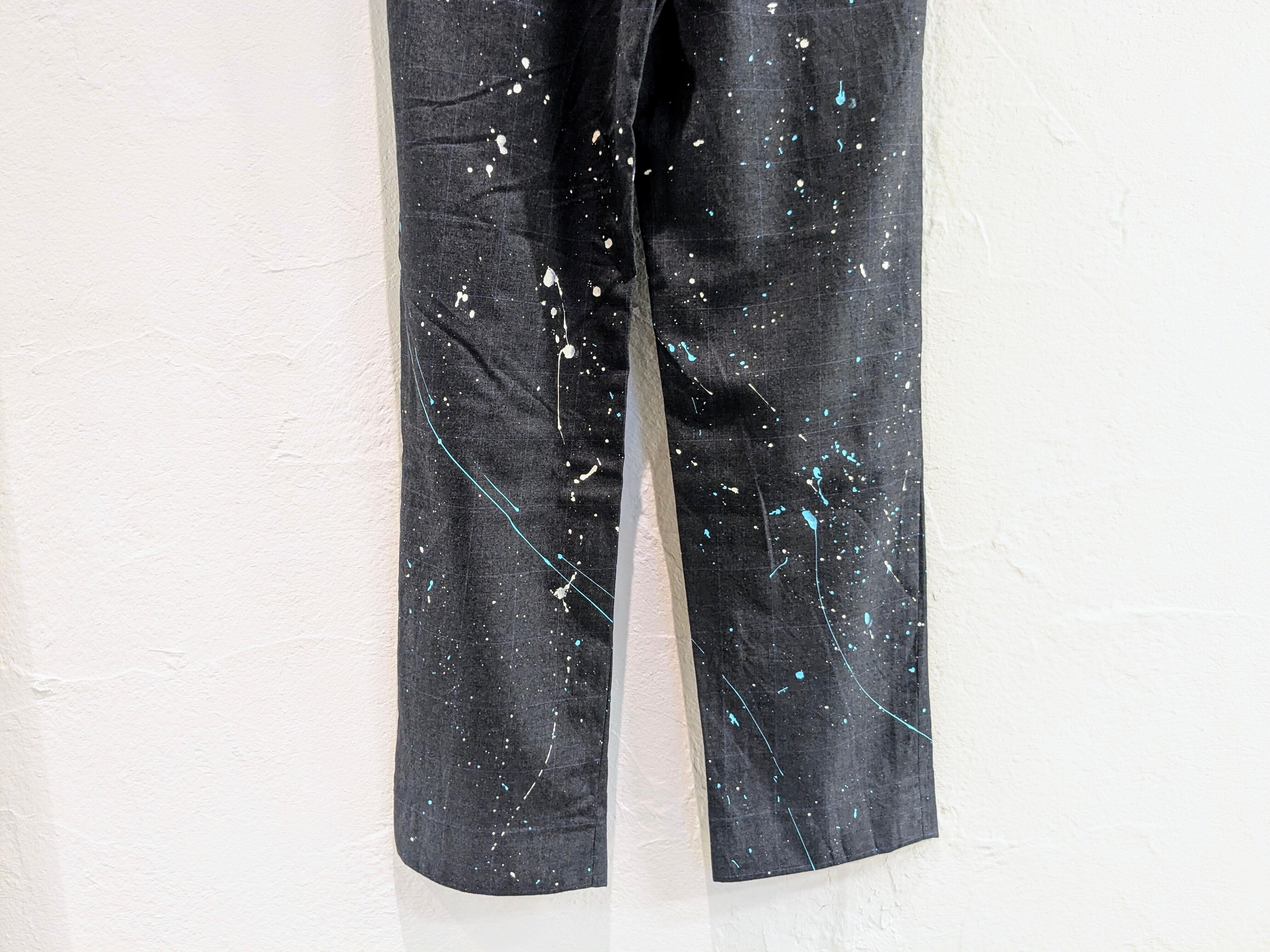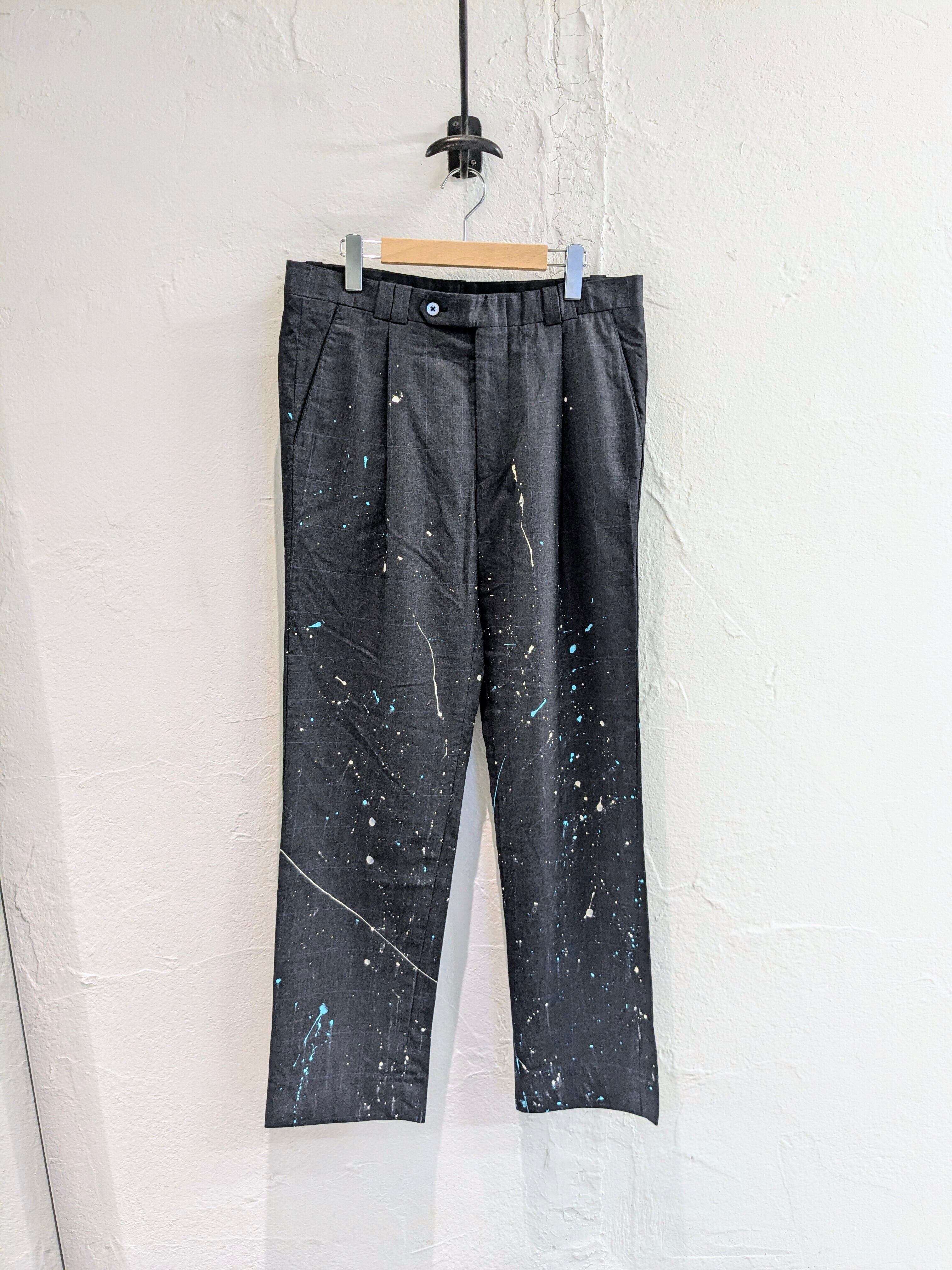 スラックスを履いてペンキ作業をすることはほとんどないかと思います。あえて、相反するものを組み合わせ作ってもらっています。