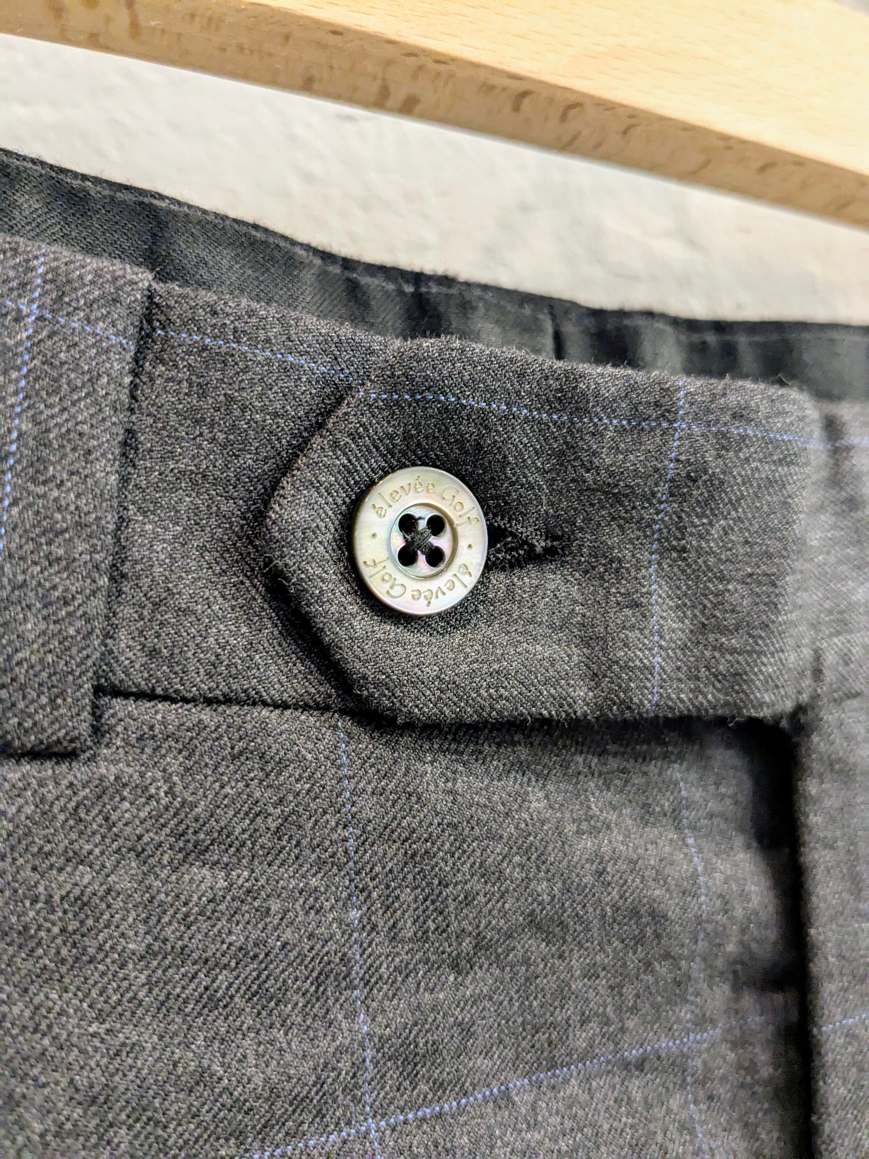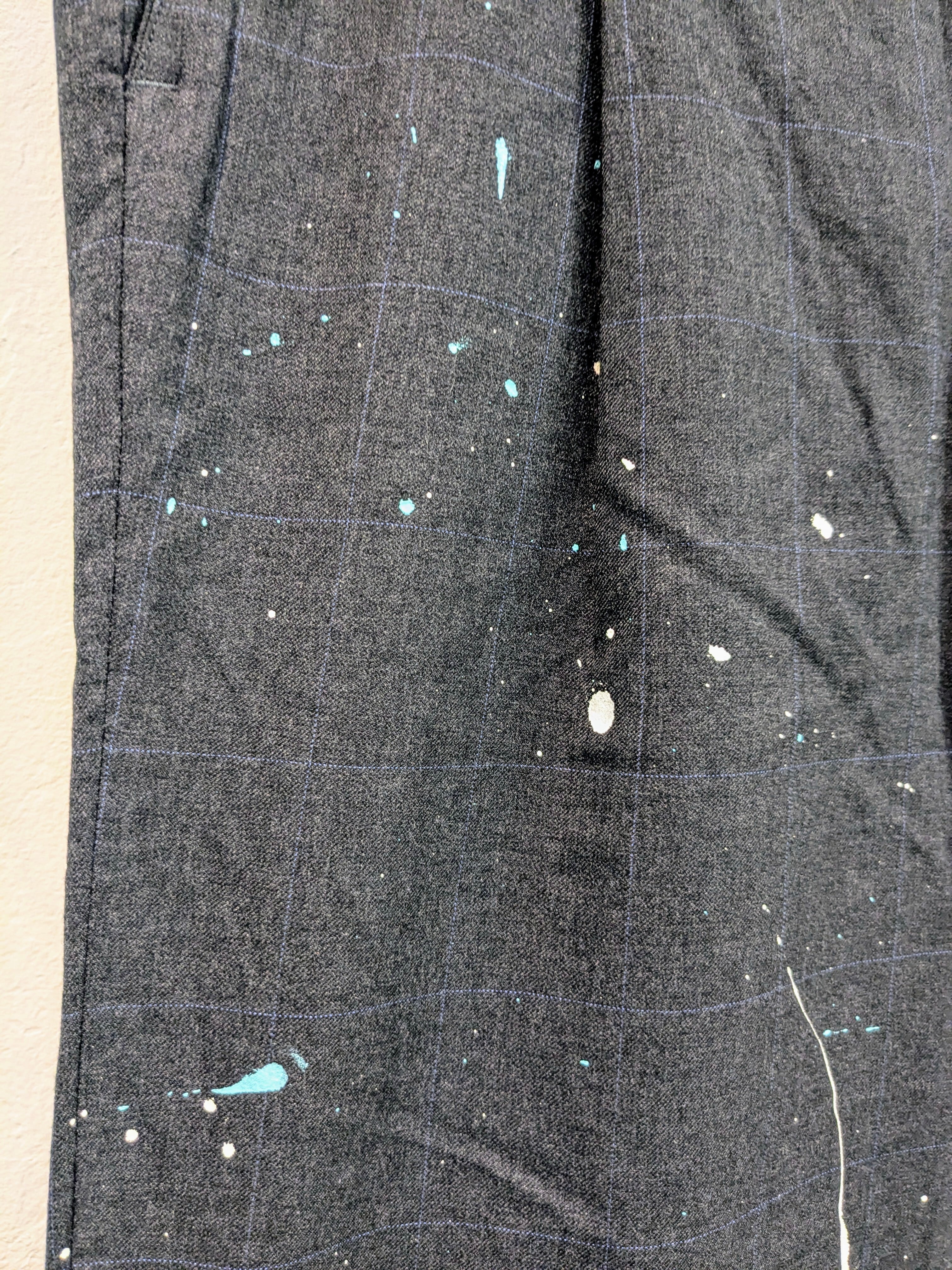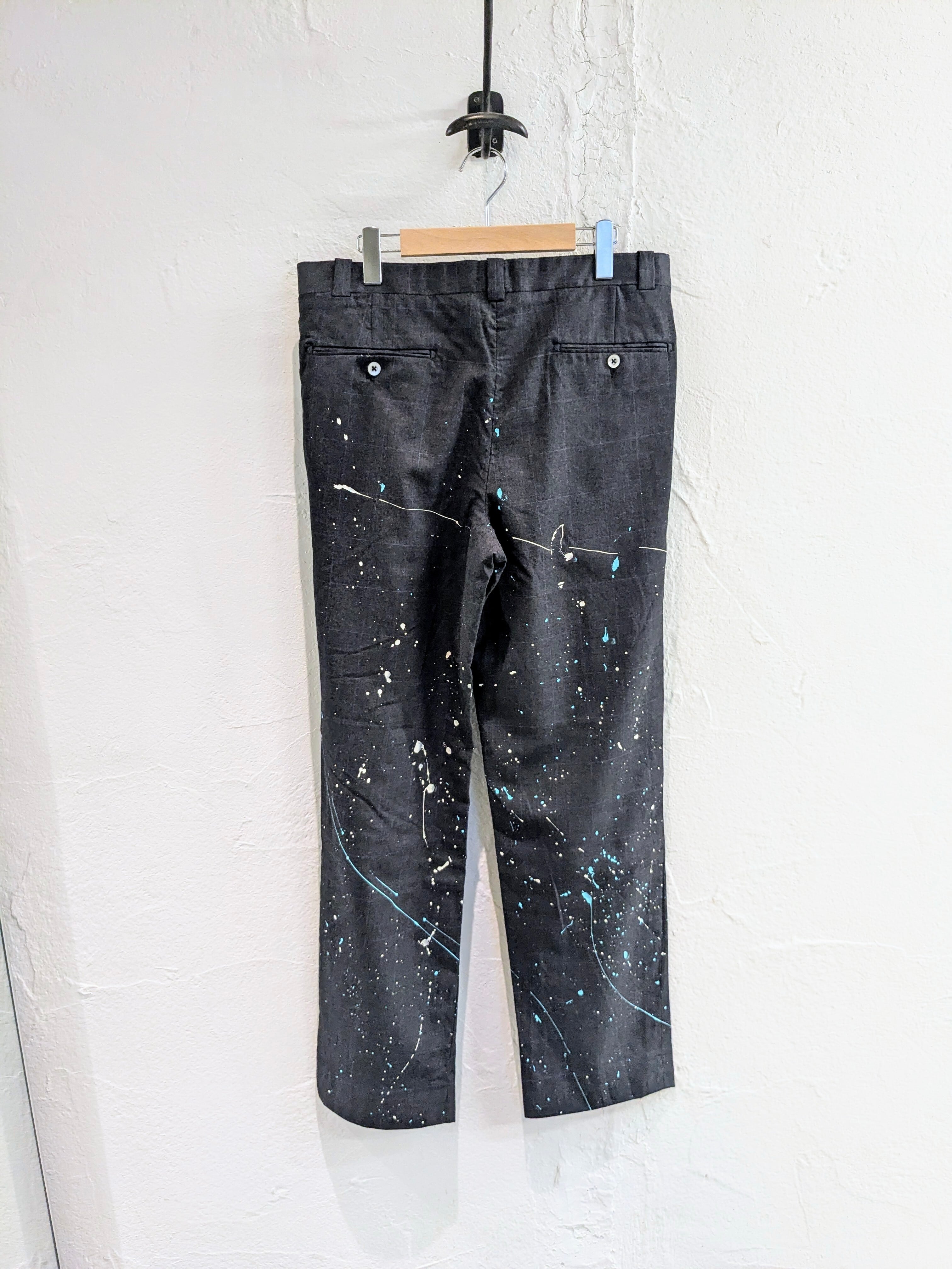 スラックスを履いてペンキ作業をすることはほとんどないかと思います。あえて、相反するものを組み合わせ作ってもらっています。