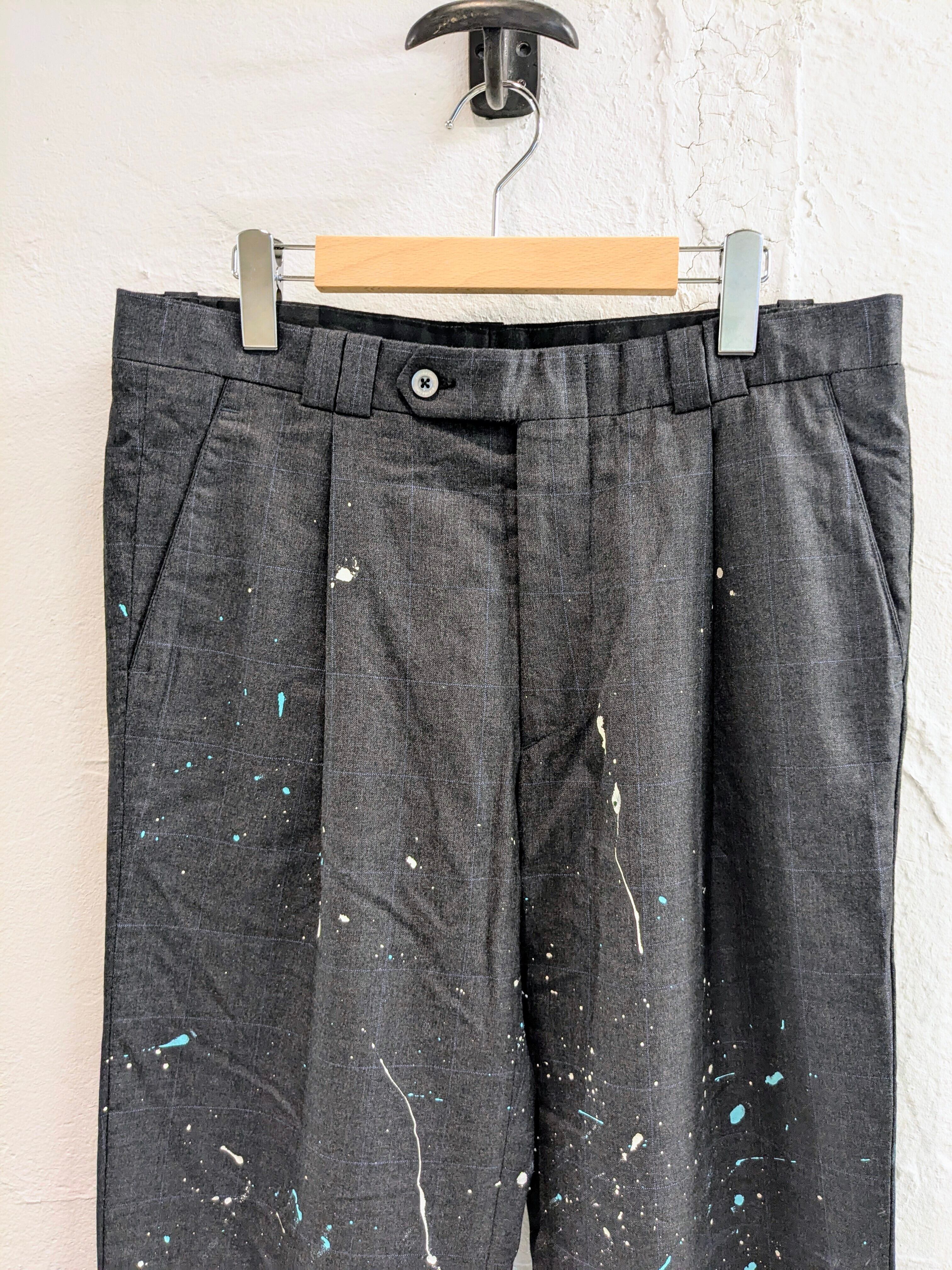 ART SPLASH PAINTED TUCK WINDOWPANE TROUSERS