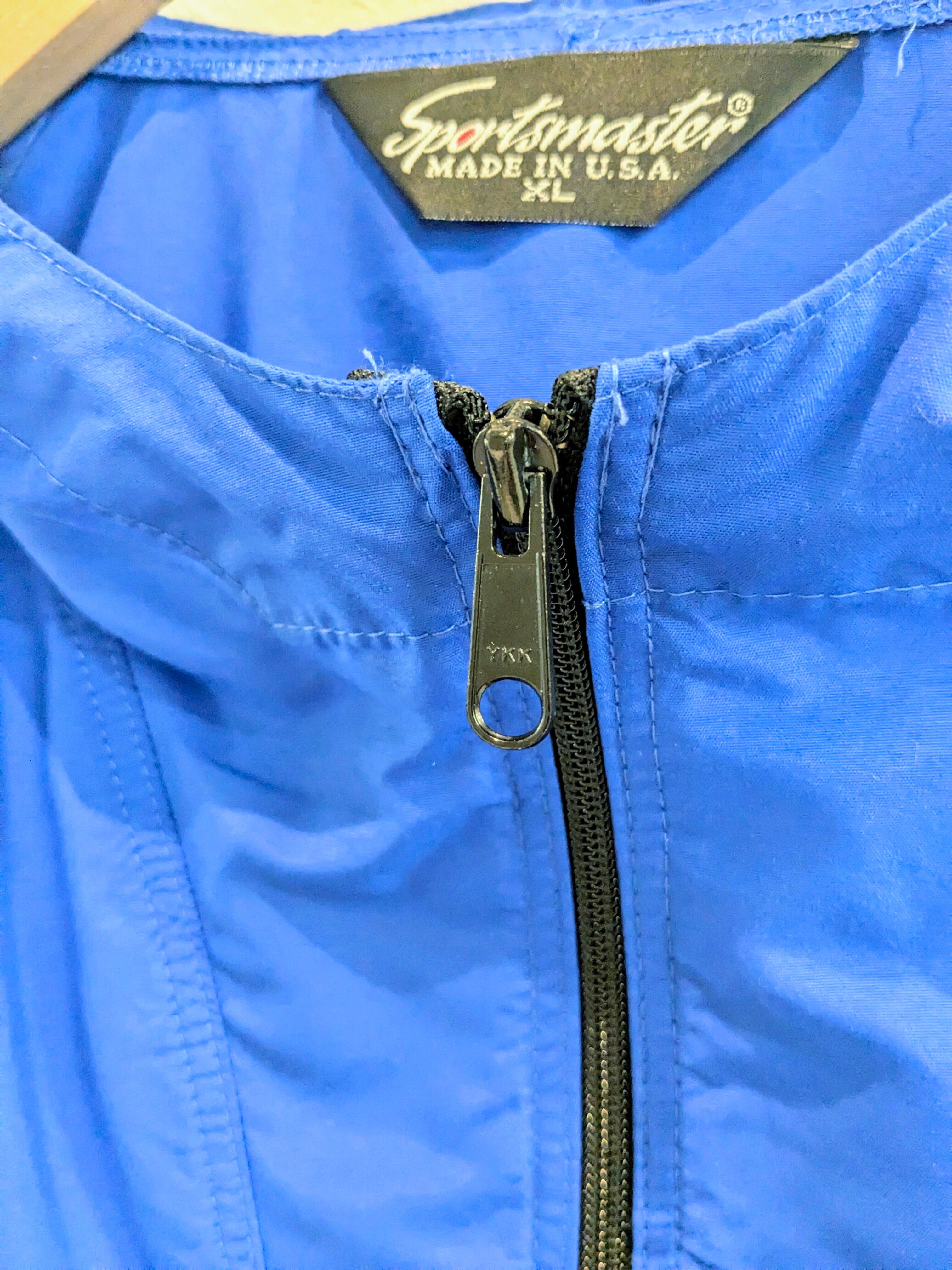 ワンポイントでの刺繍が特徴的。ナイロン100%なのに、コットンのような肌触りでマットな質感なのが珍しい。とても柔らかく、着心地は抜群です。裾にドローコードが付いていたと思うのですが、こちらは欠損しています。