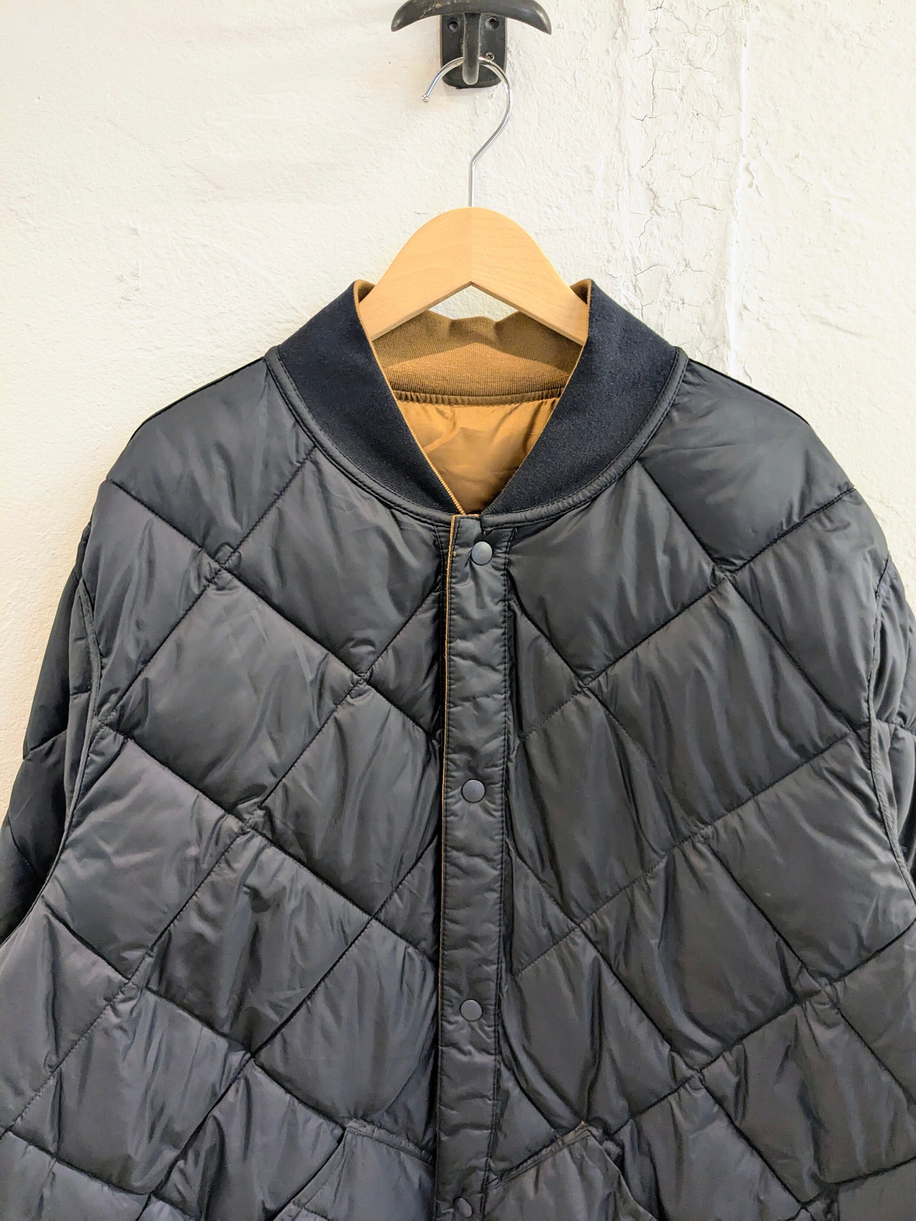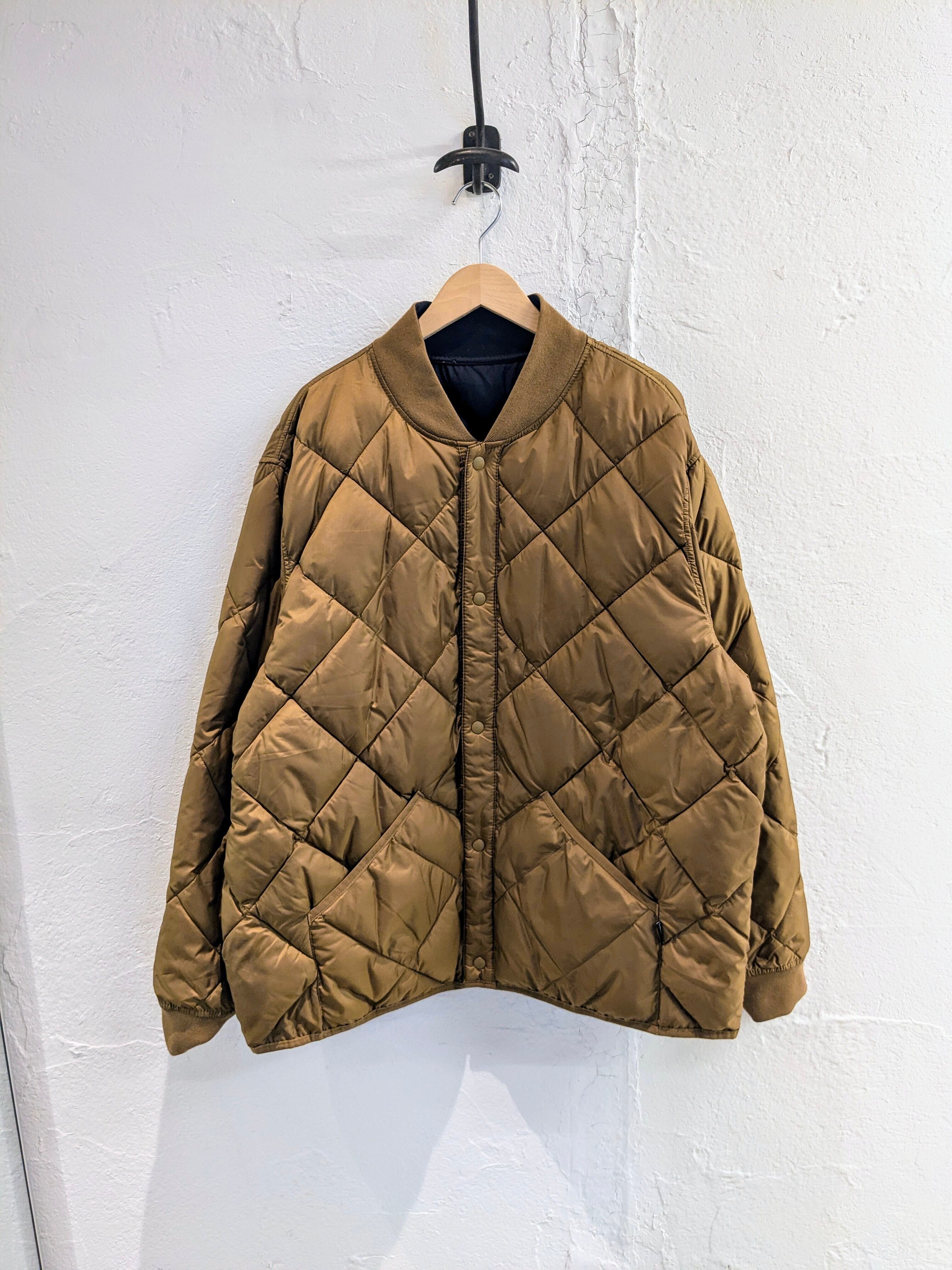 リバーシブル仕様の中綿キルティングブルゾンになります。ネイビー、ゴールドの2面でお使いいただけます。ボリュームもありとても軽く、使いやすいデザイン。