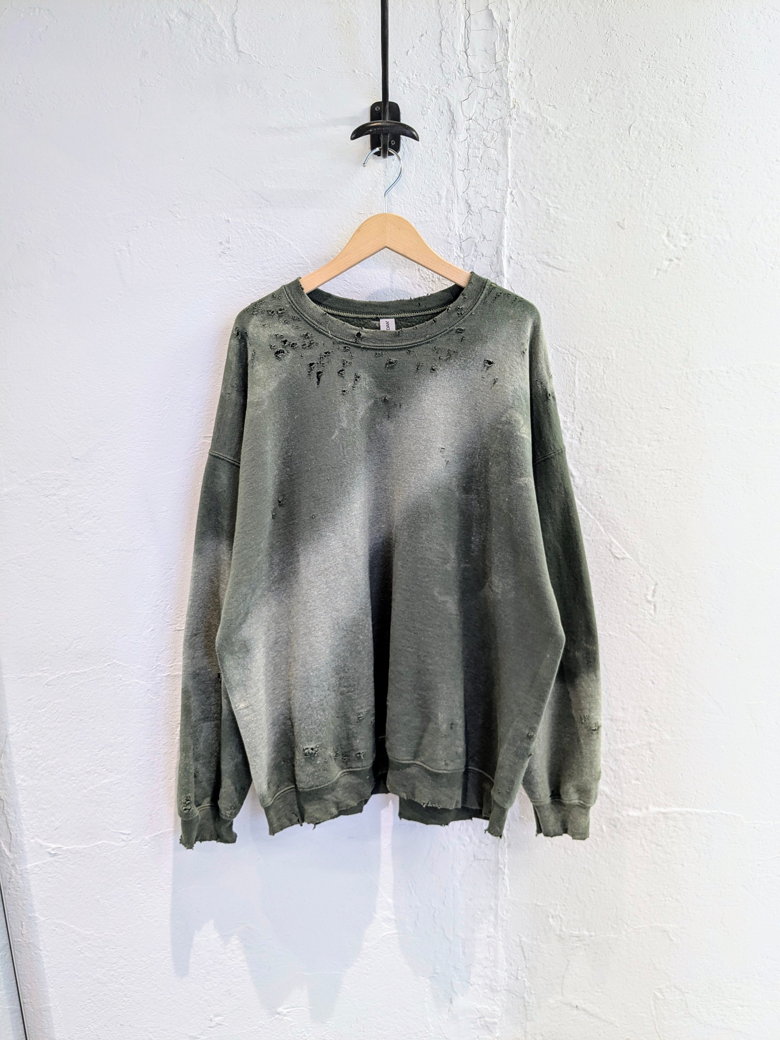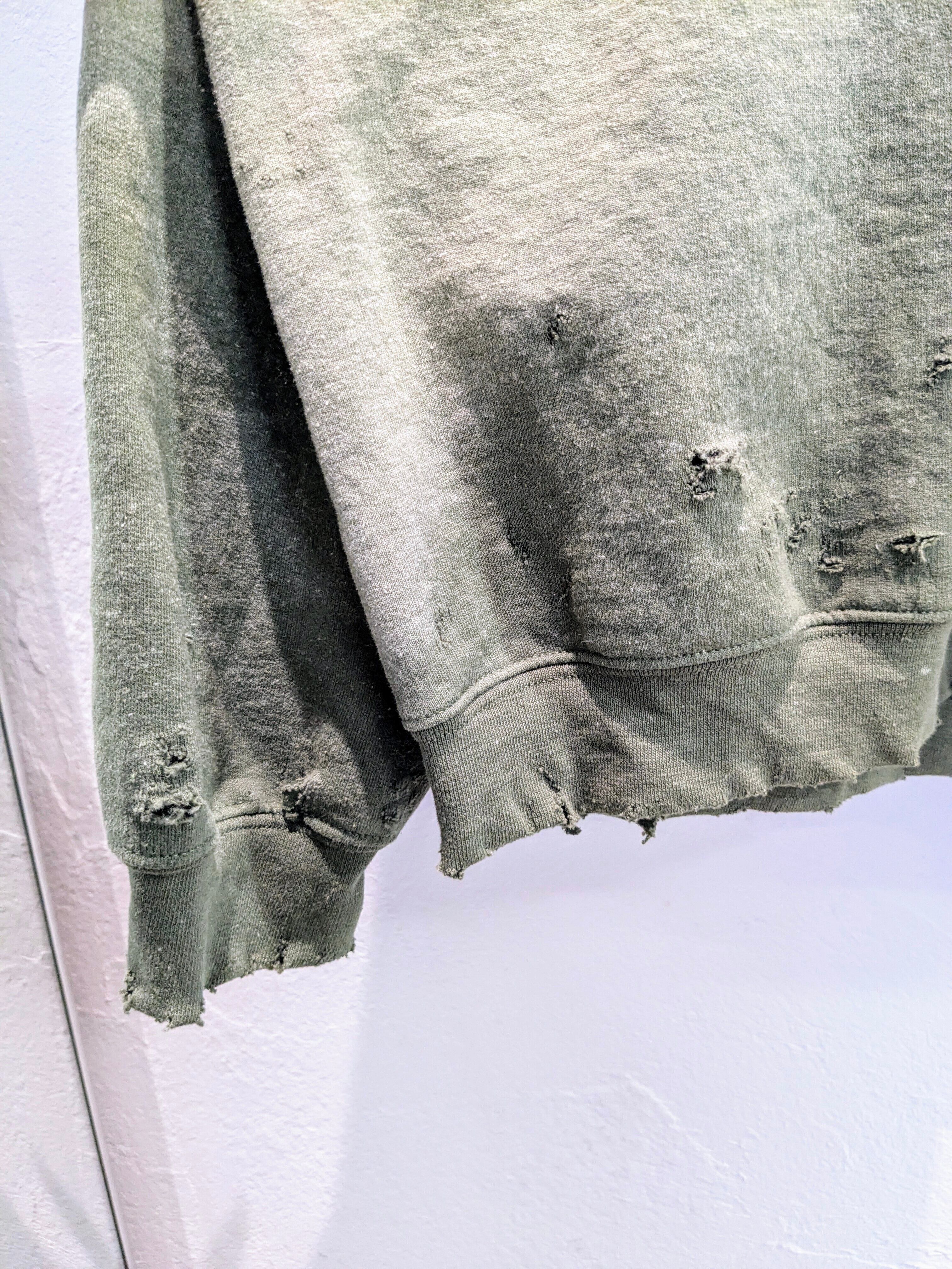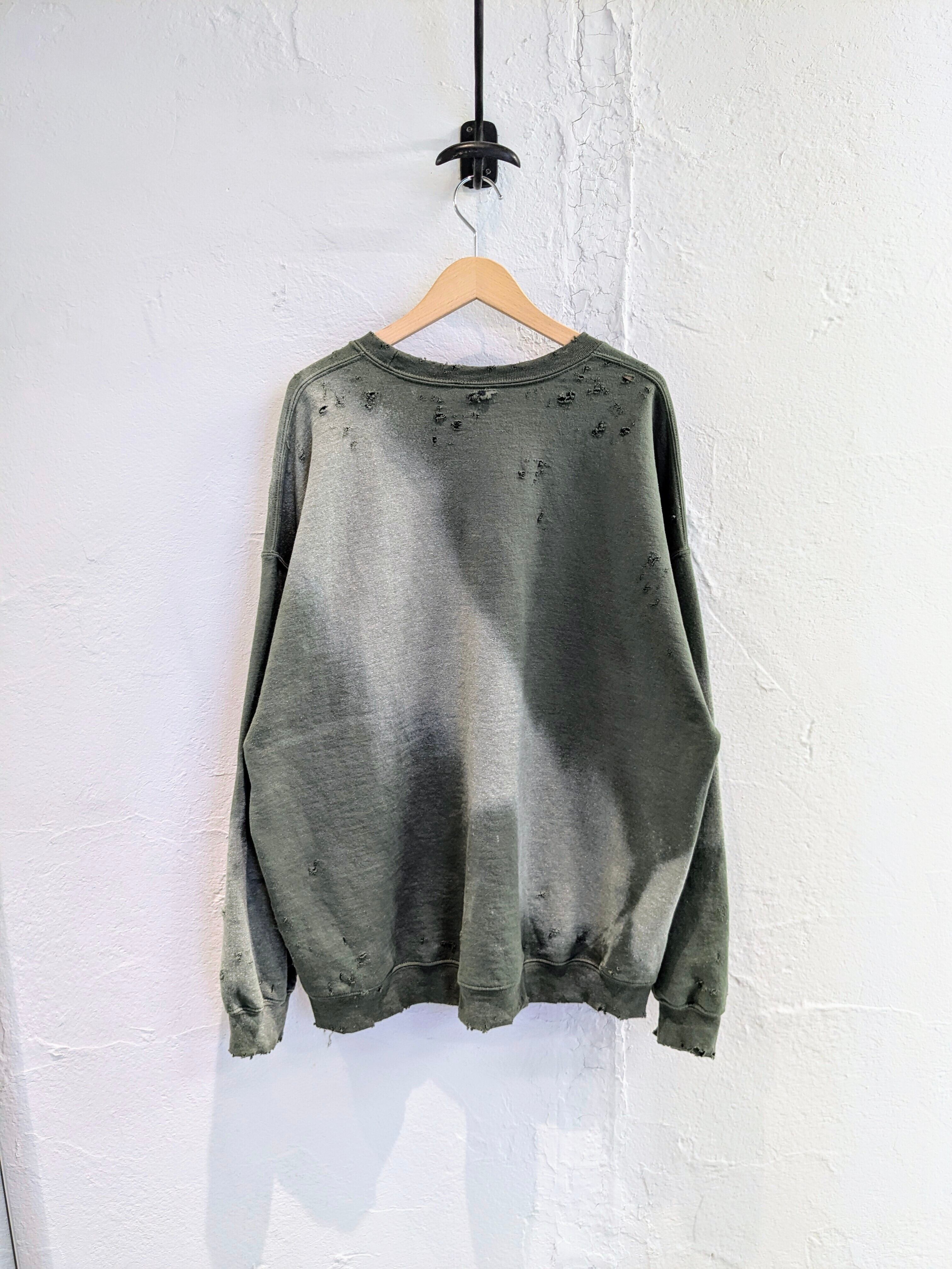 Fade and Damage Design Sweat Shirt "Green"