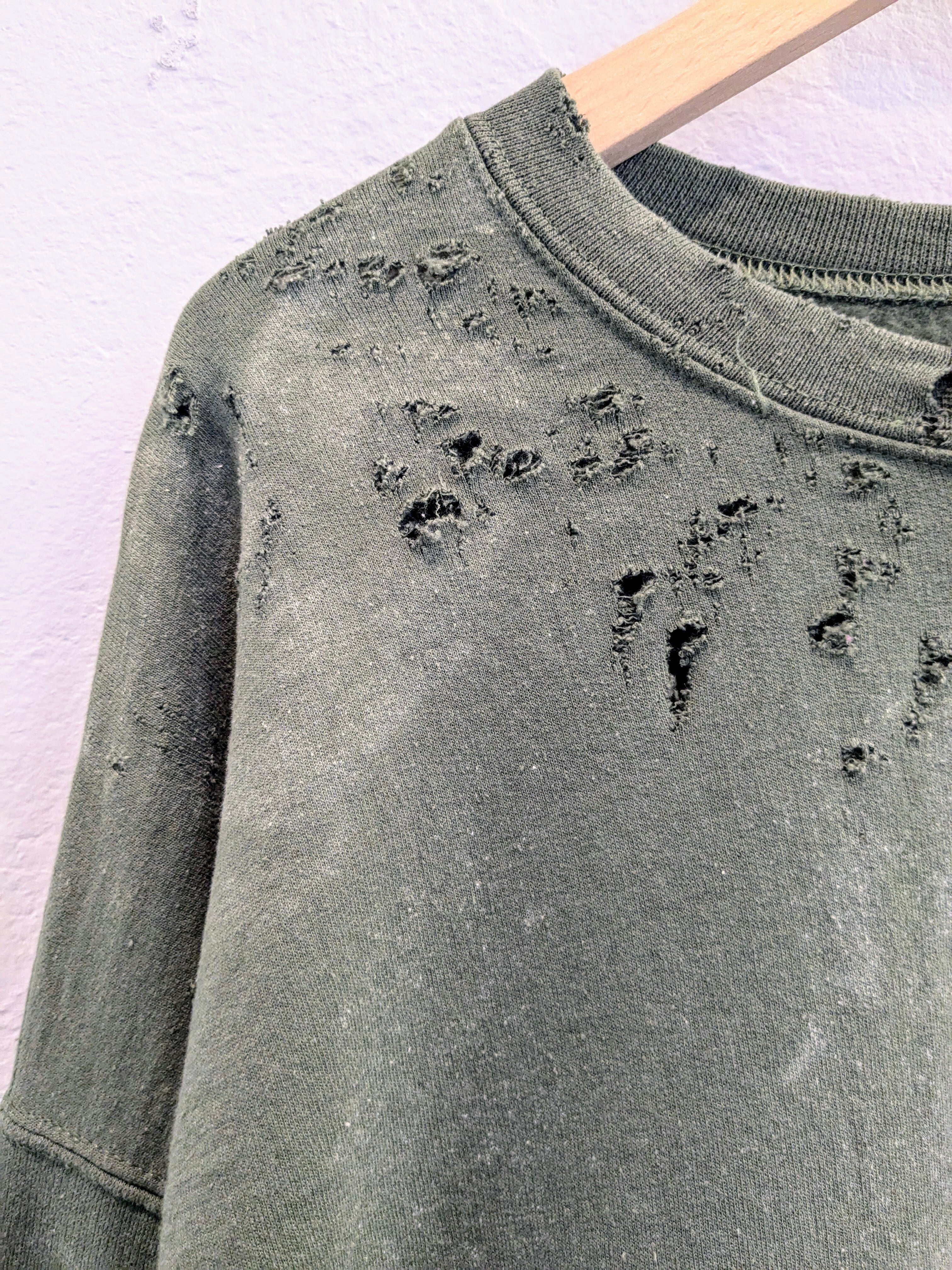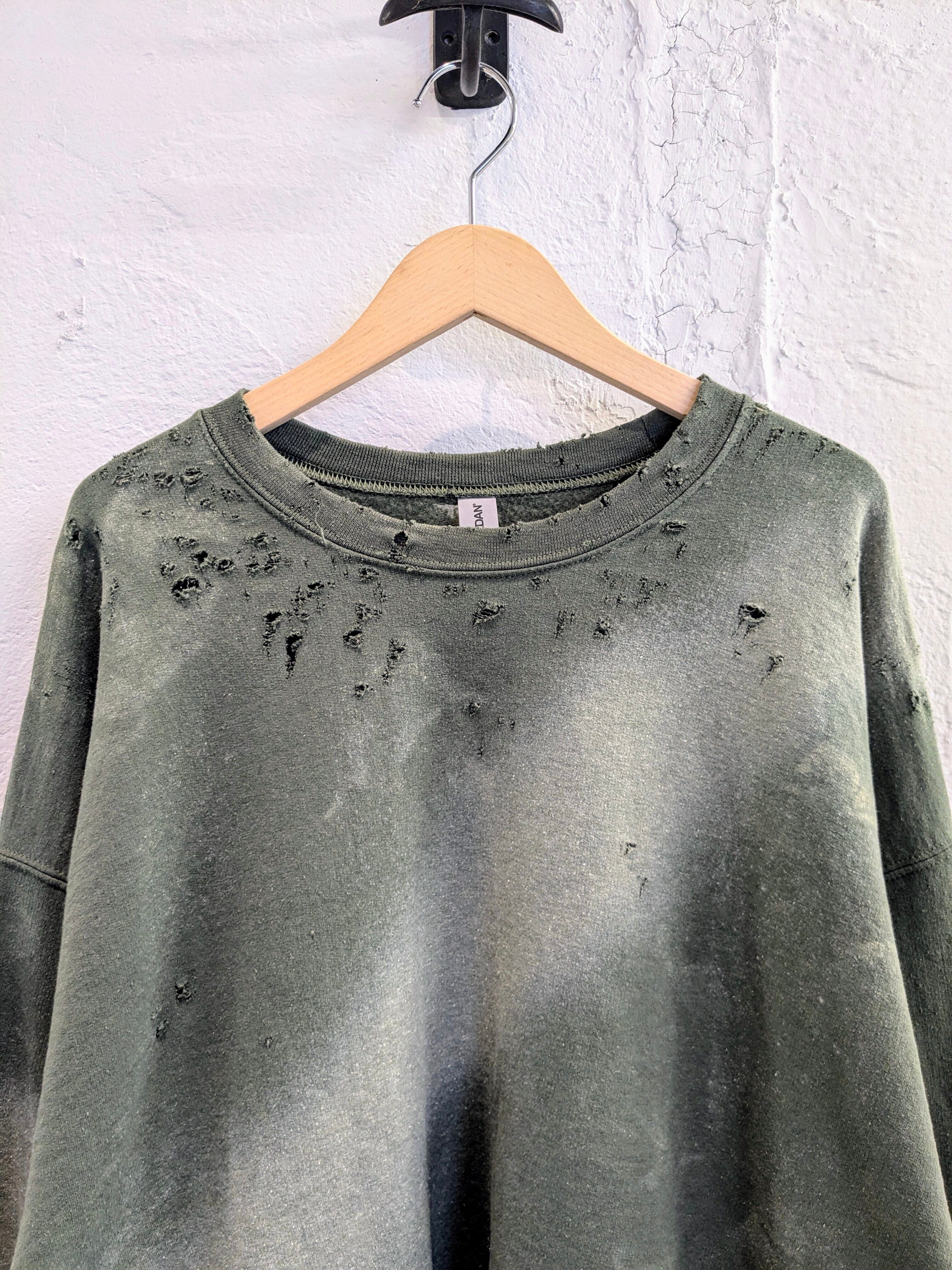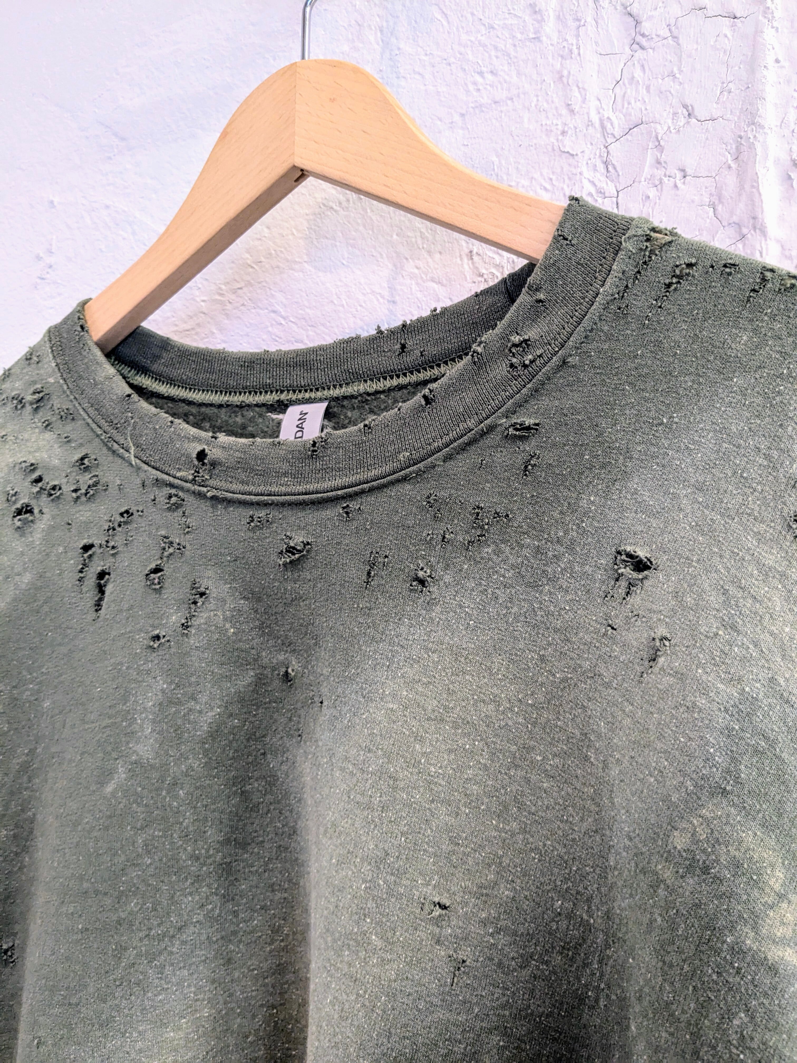 Fade and Damage Design Sweat Shirt "Green"