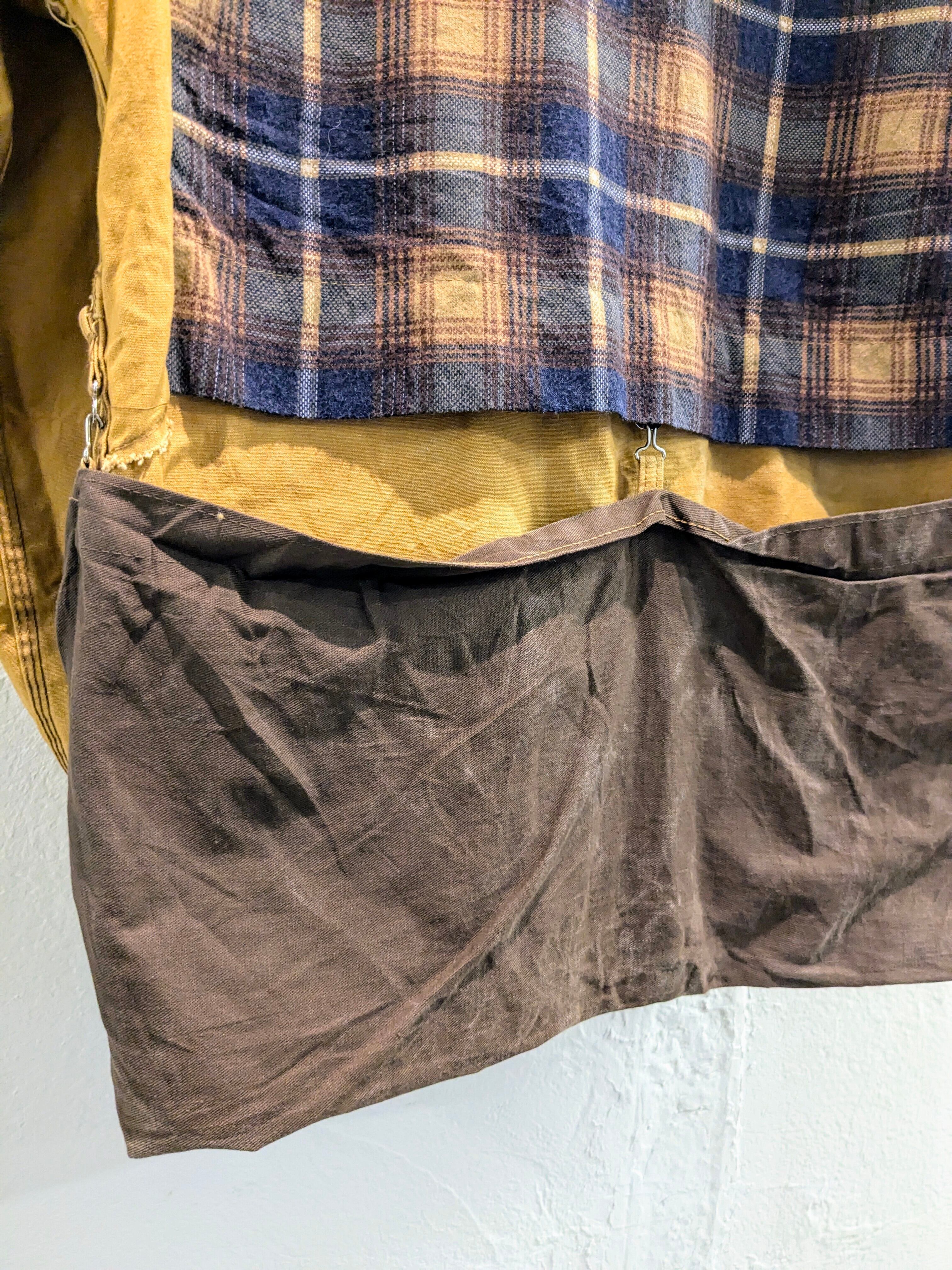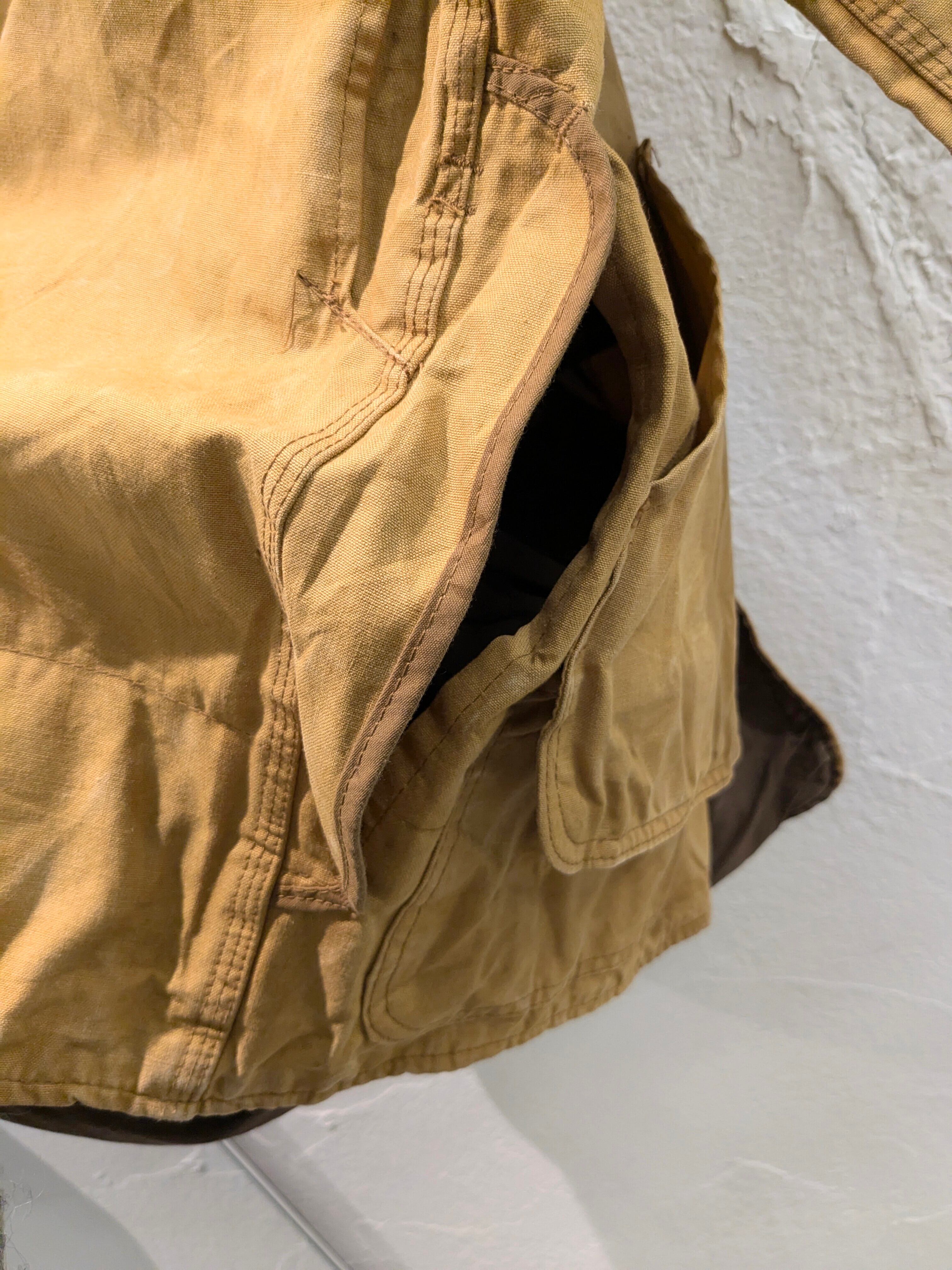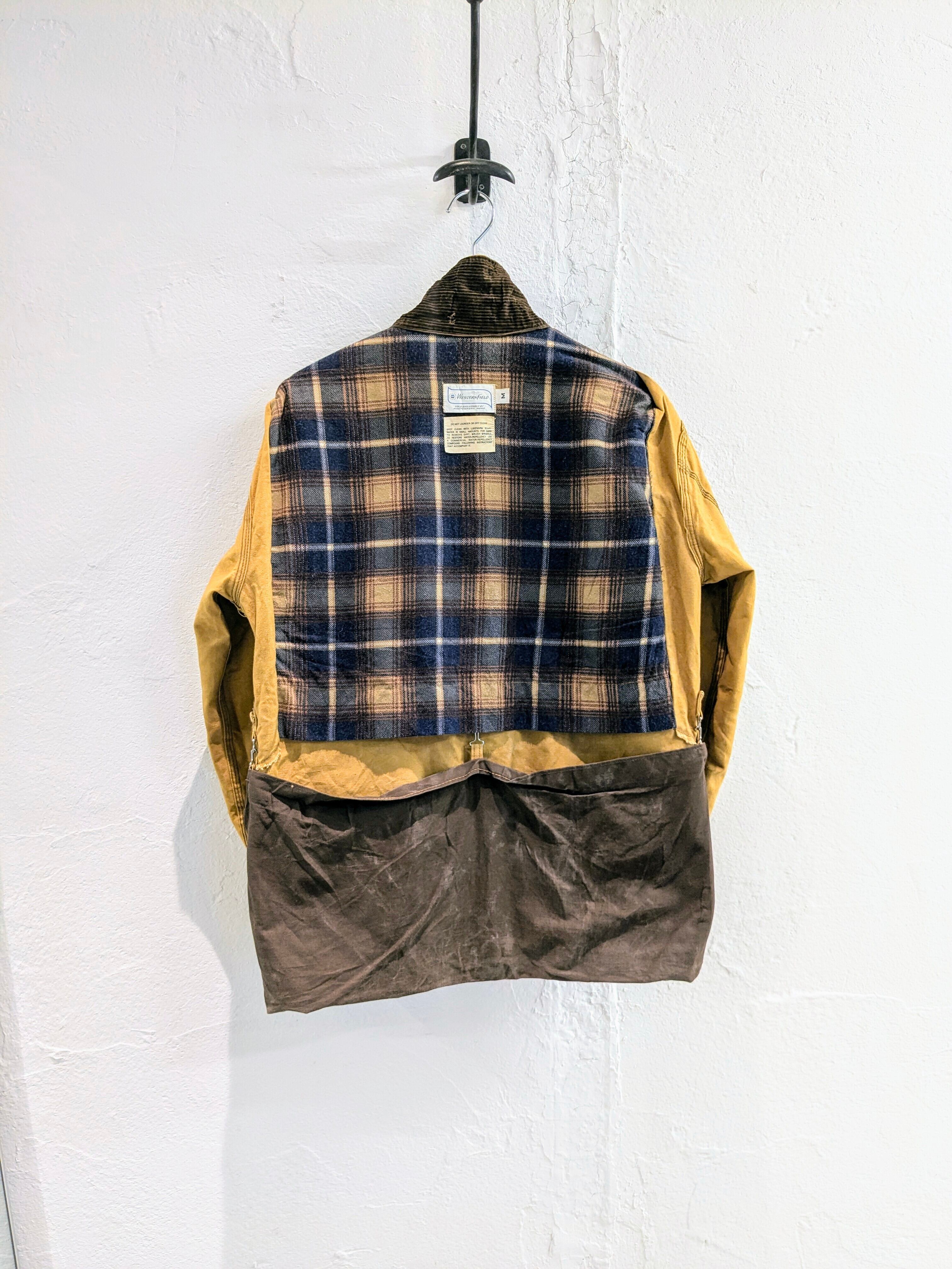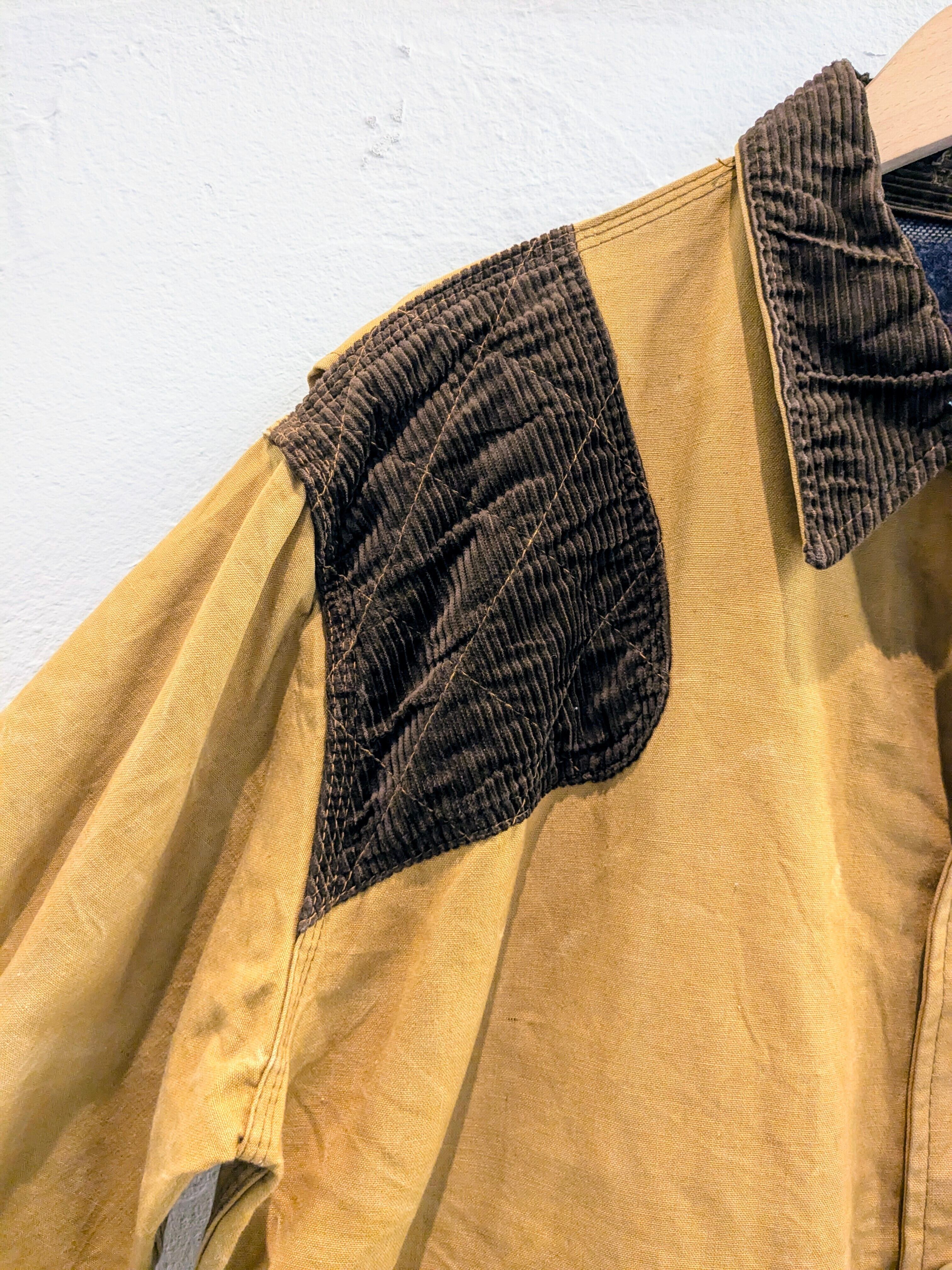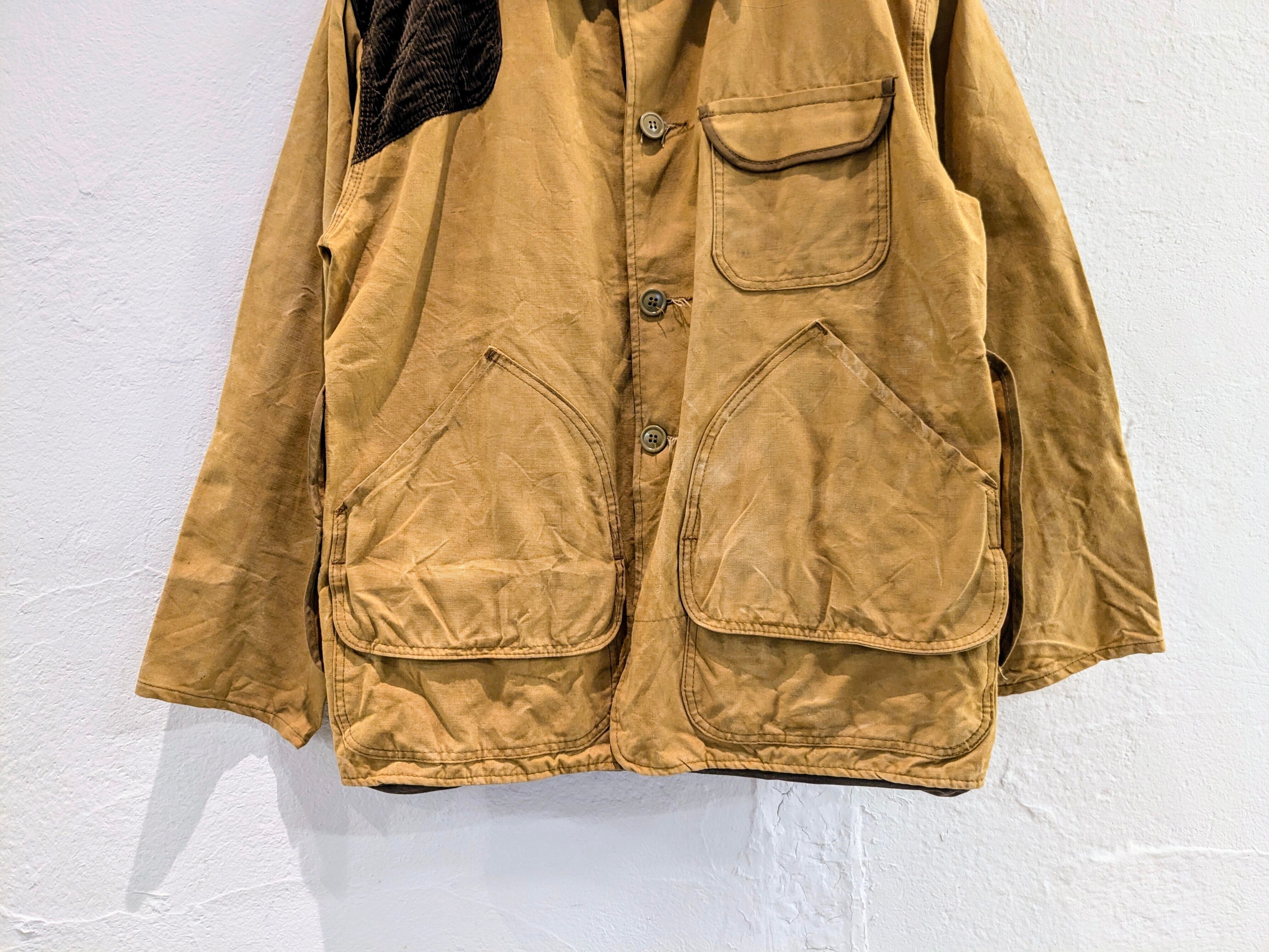 肩のガンパッチ、襟のコーデュロイ切替が無骨さを演出しており、めちゃくちゃ雰囲気のいい一着。全体的にはダックに近い生地感で、ハリ感があり、アタリなども出ておりかなり味のある一枚。ゲームポケットももちろん付いています。