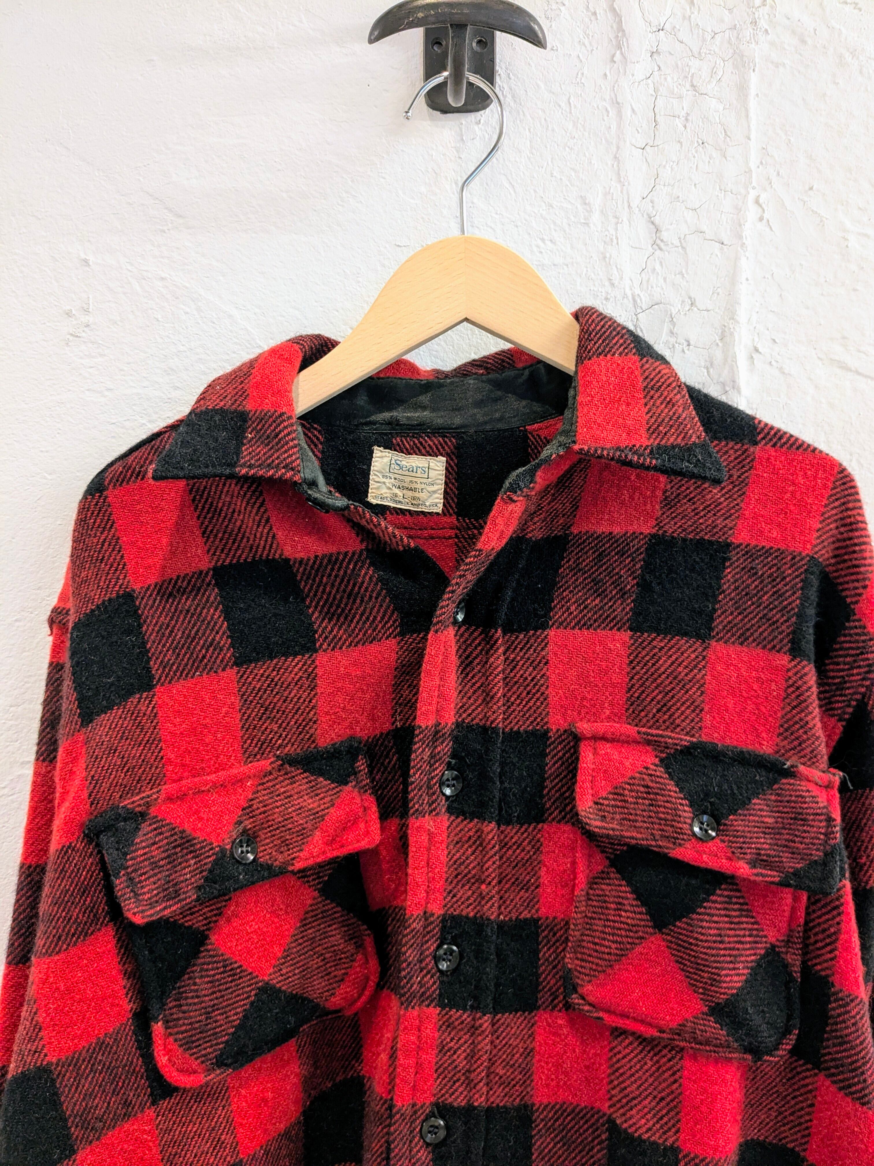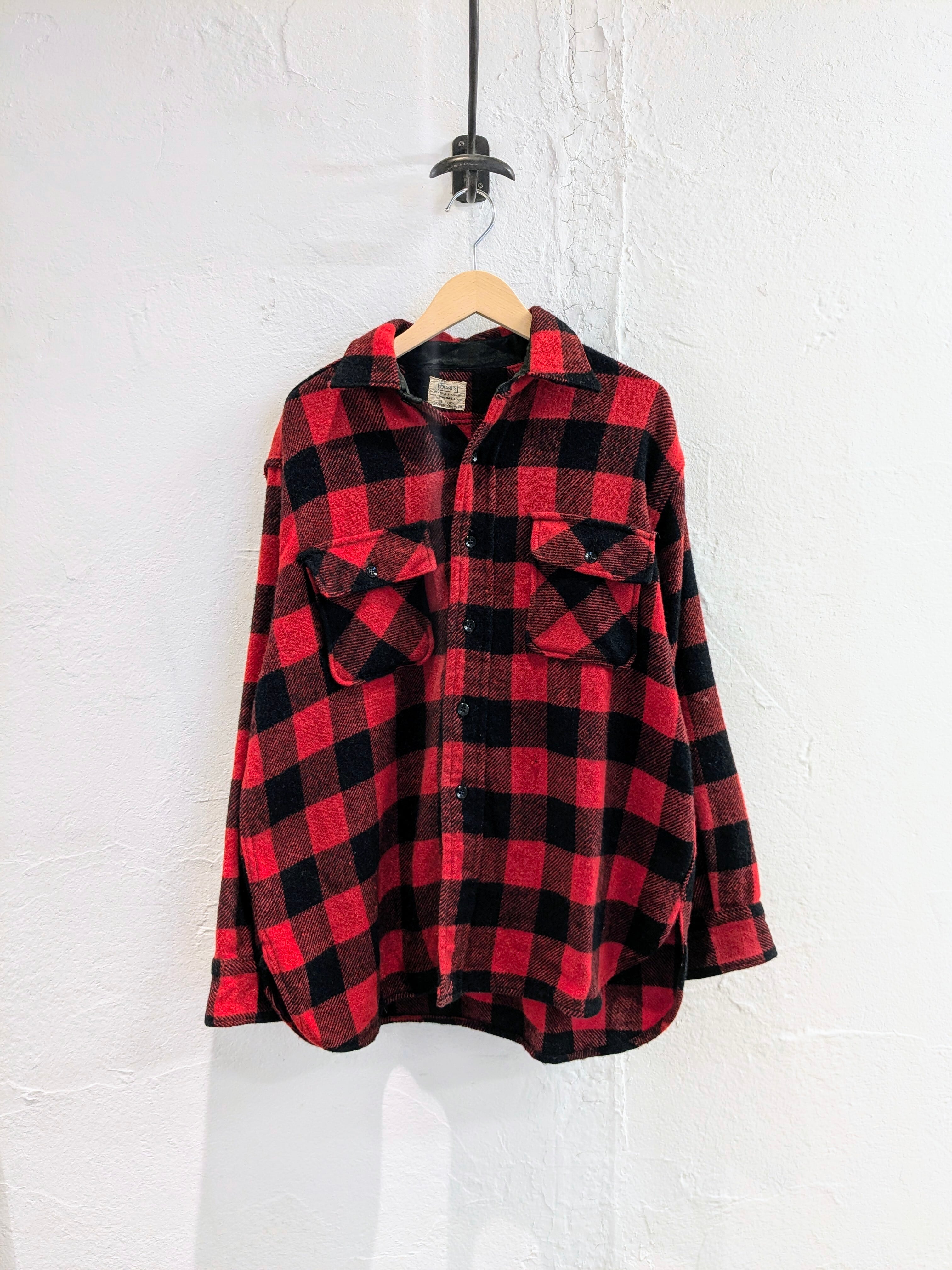 60's Heavy Wool Buffalo Check Shirt "sears"