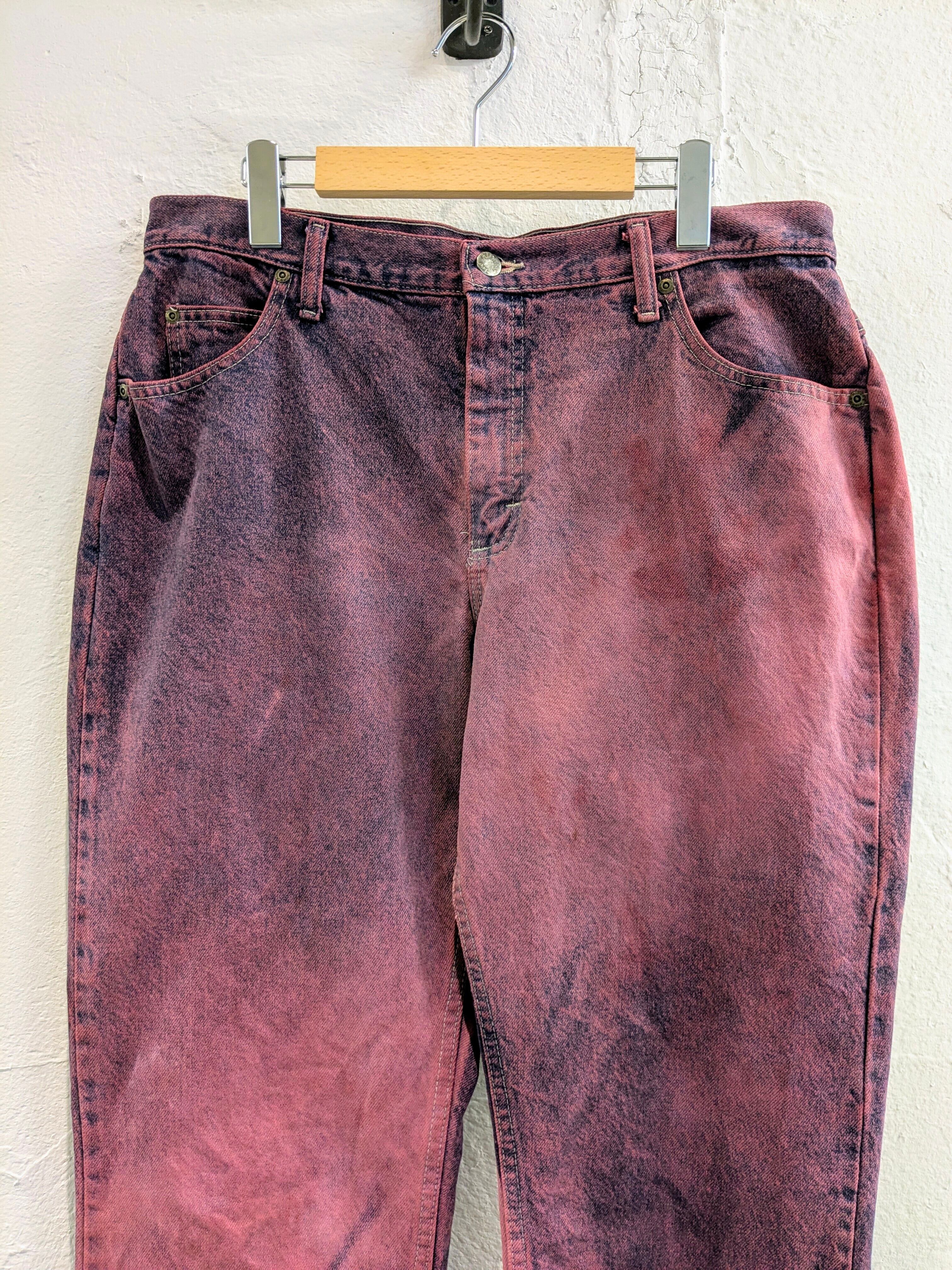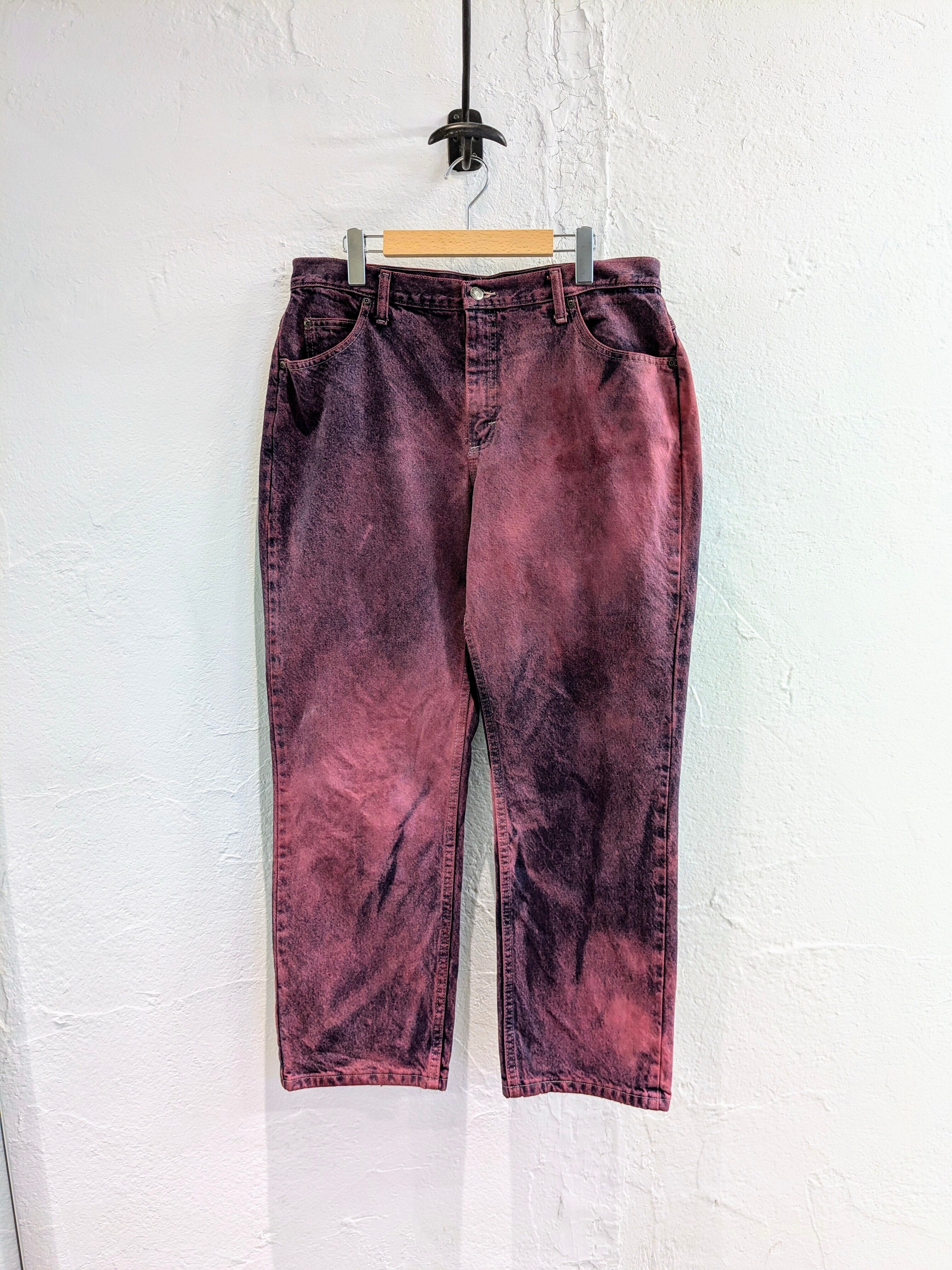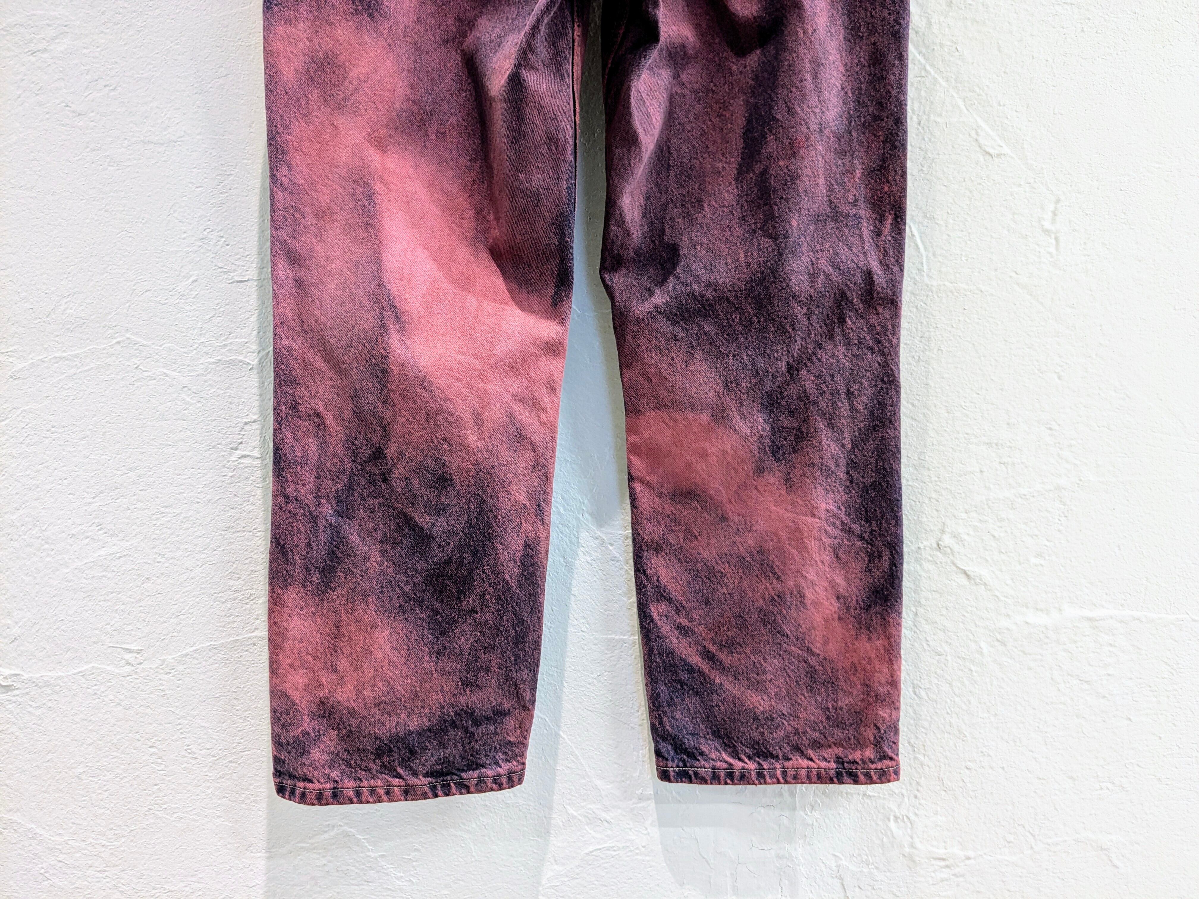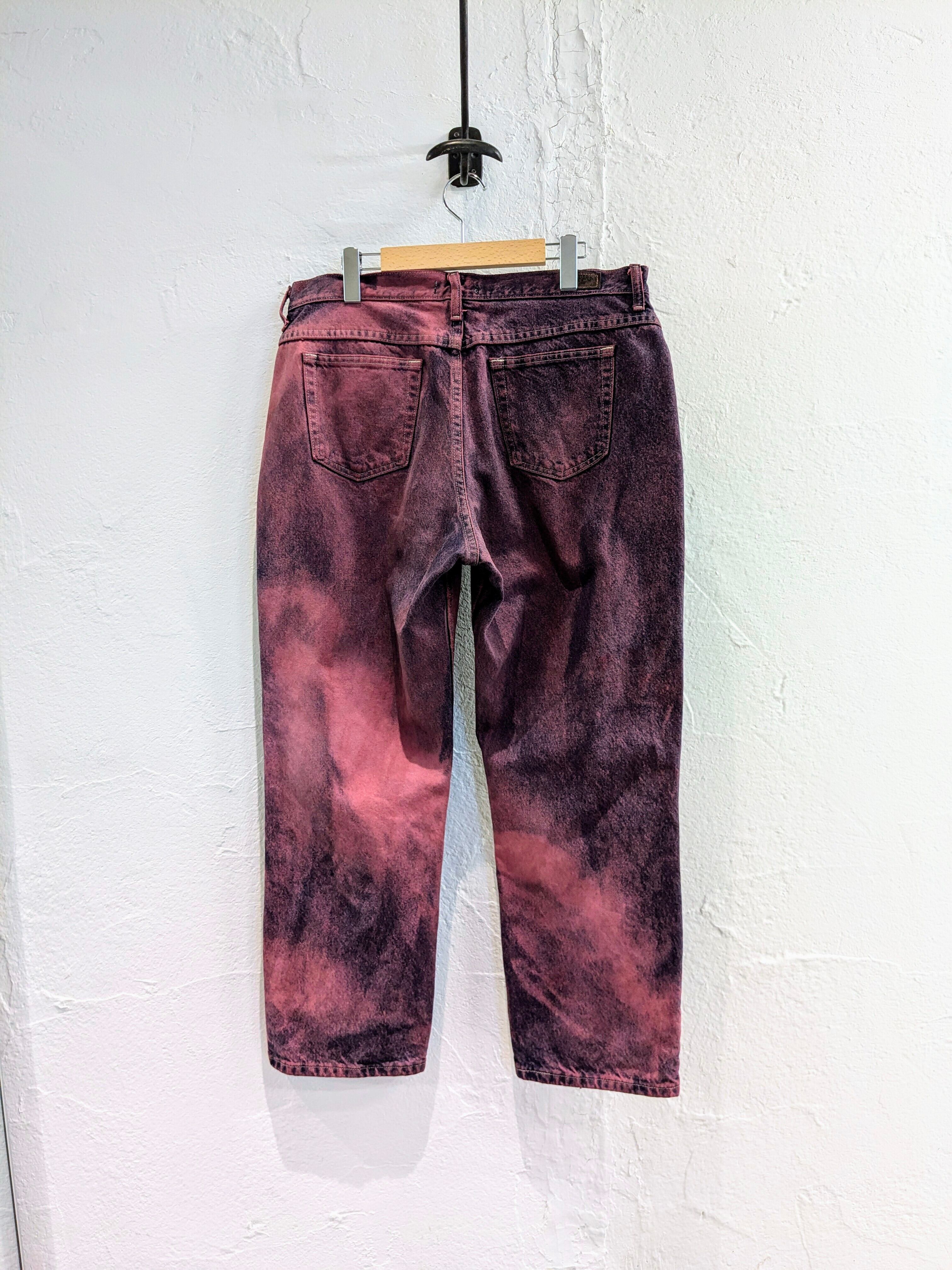 シルエットはゆったりとしており、ワイドめをお探しの方へはオススメ。古着で探すとなかなか出てこない、色、シルエットとなっています。若干色ムラなどはございます。