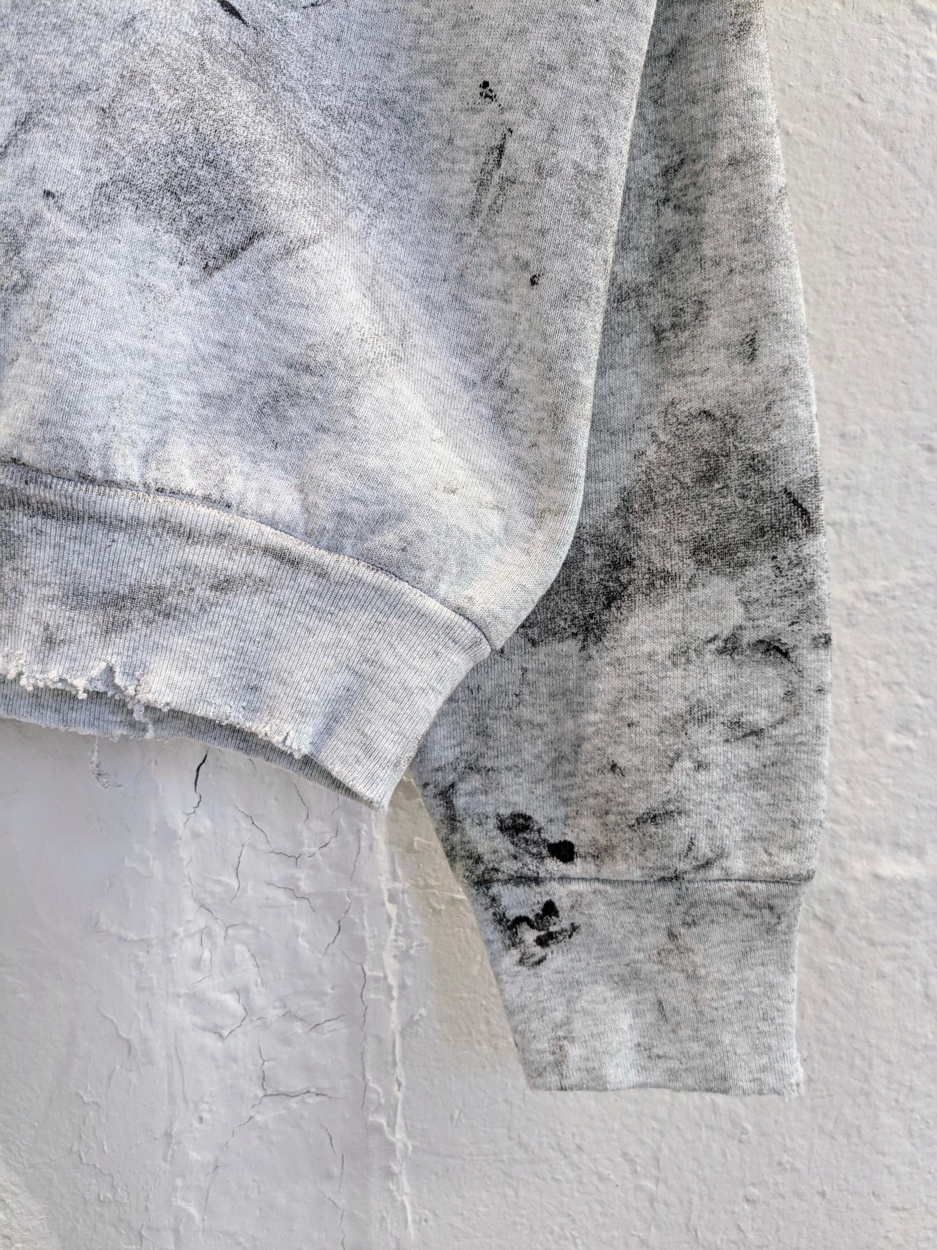 また首周り、袖、裾にダメージ、全体的に汚れ加工が入り雰囲気ある一着となっています。