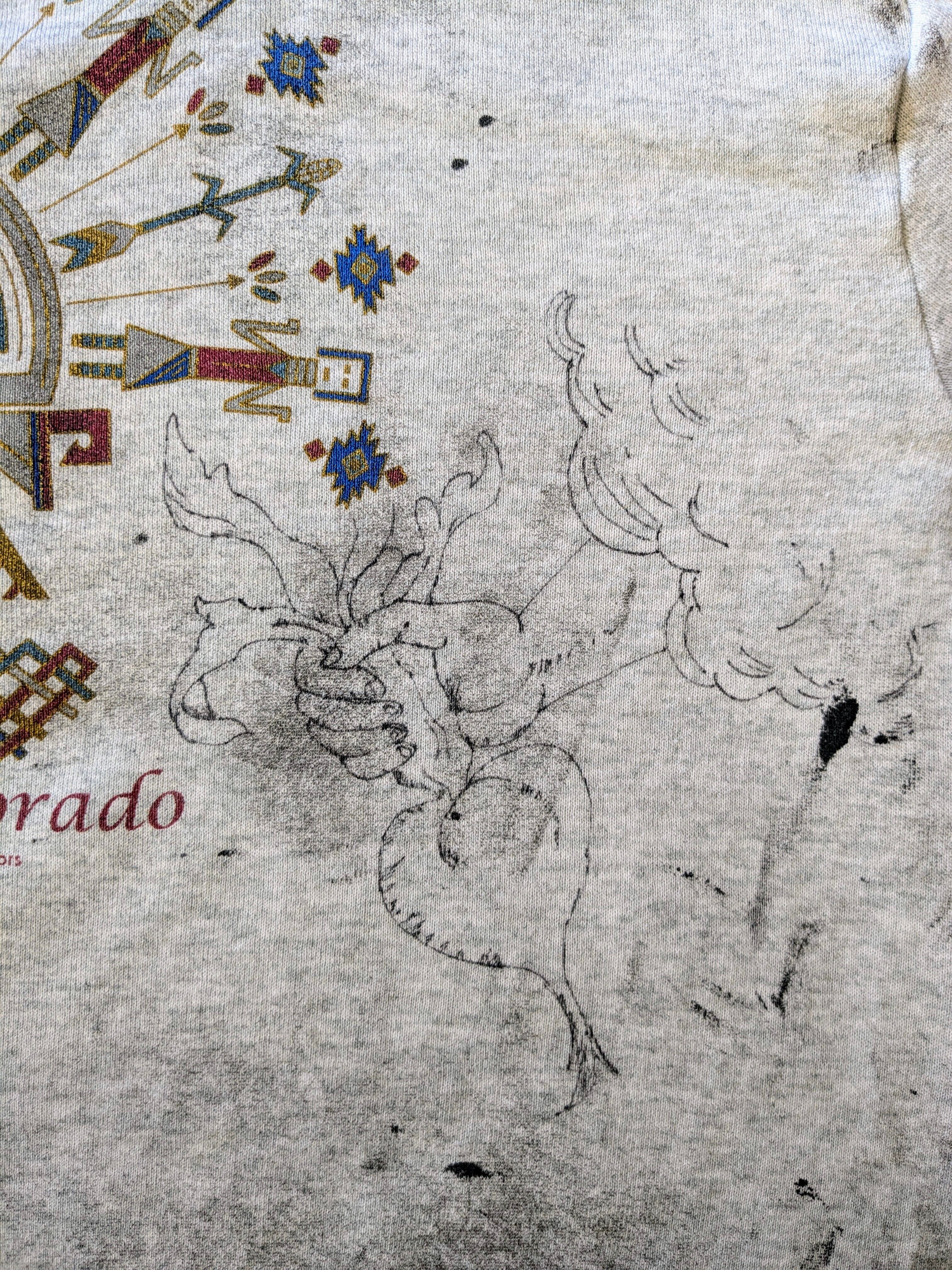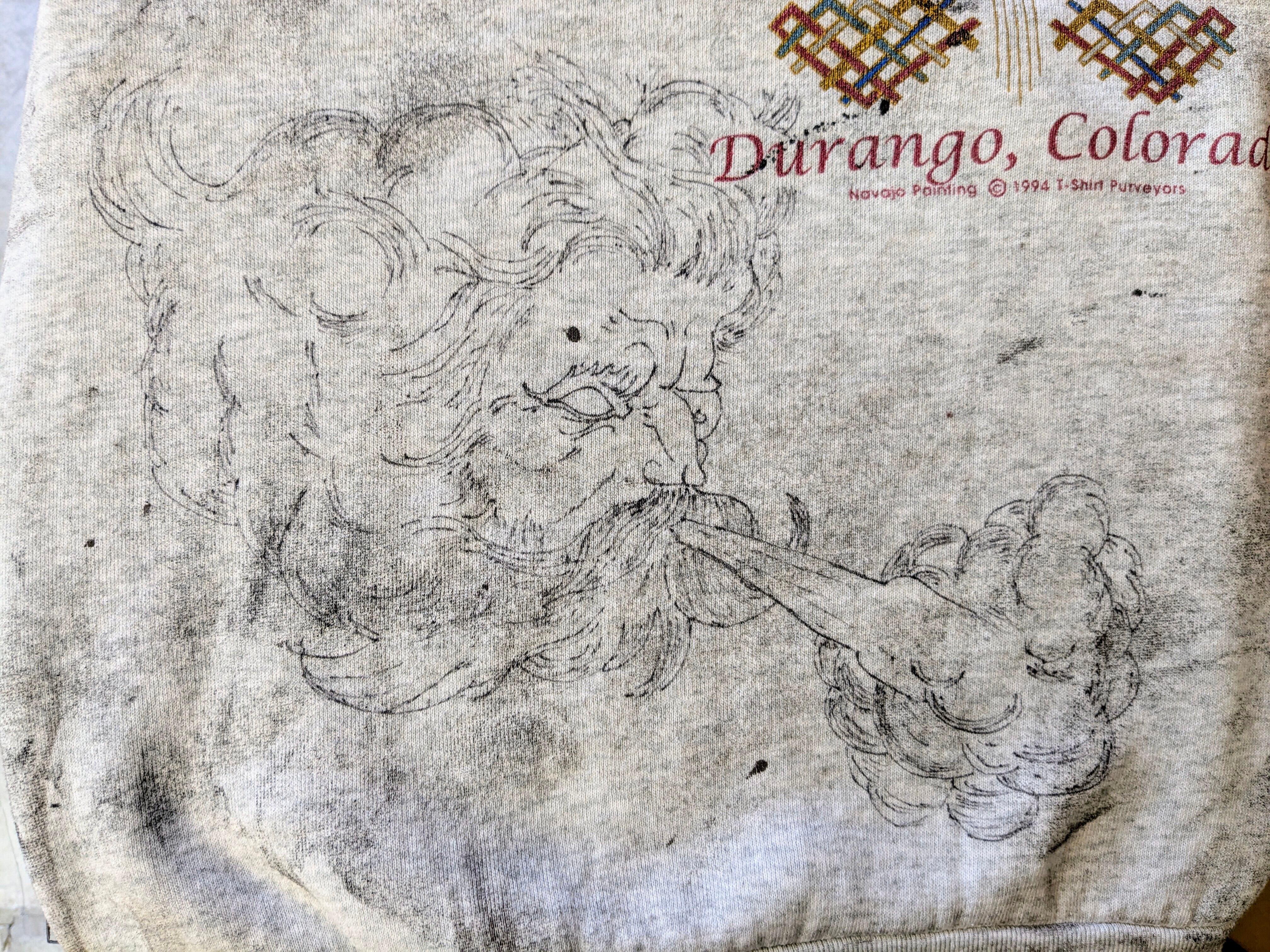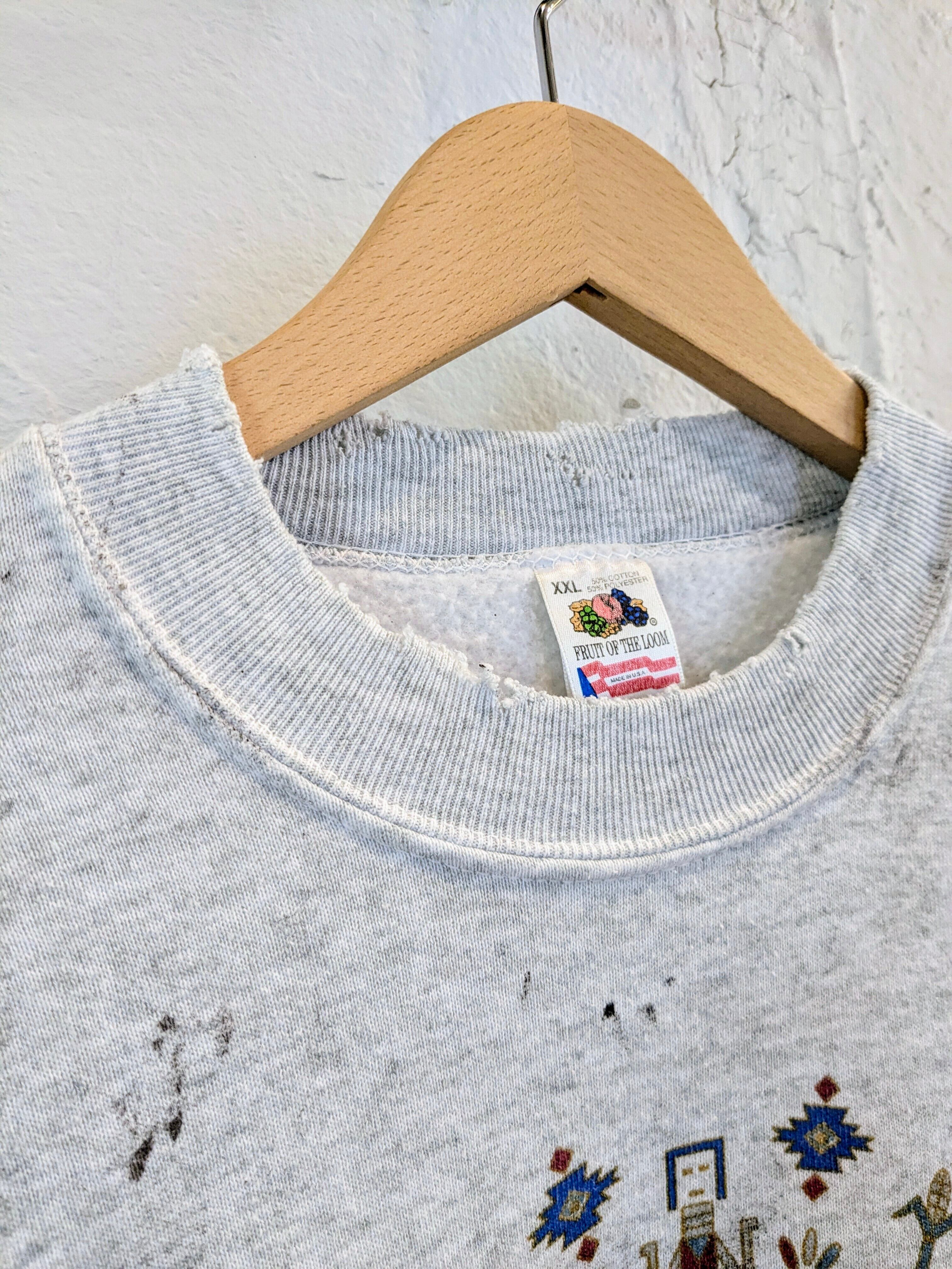 90年代のフルーツオブザルームのボディを使用。ナバホのネイティブなプリントと美術性のあるペイントが特徴的な一着。