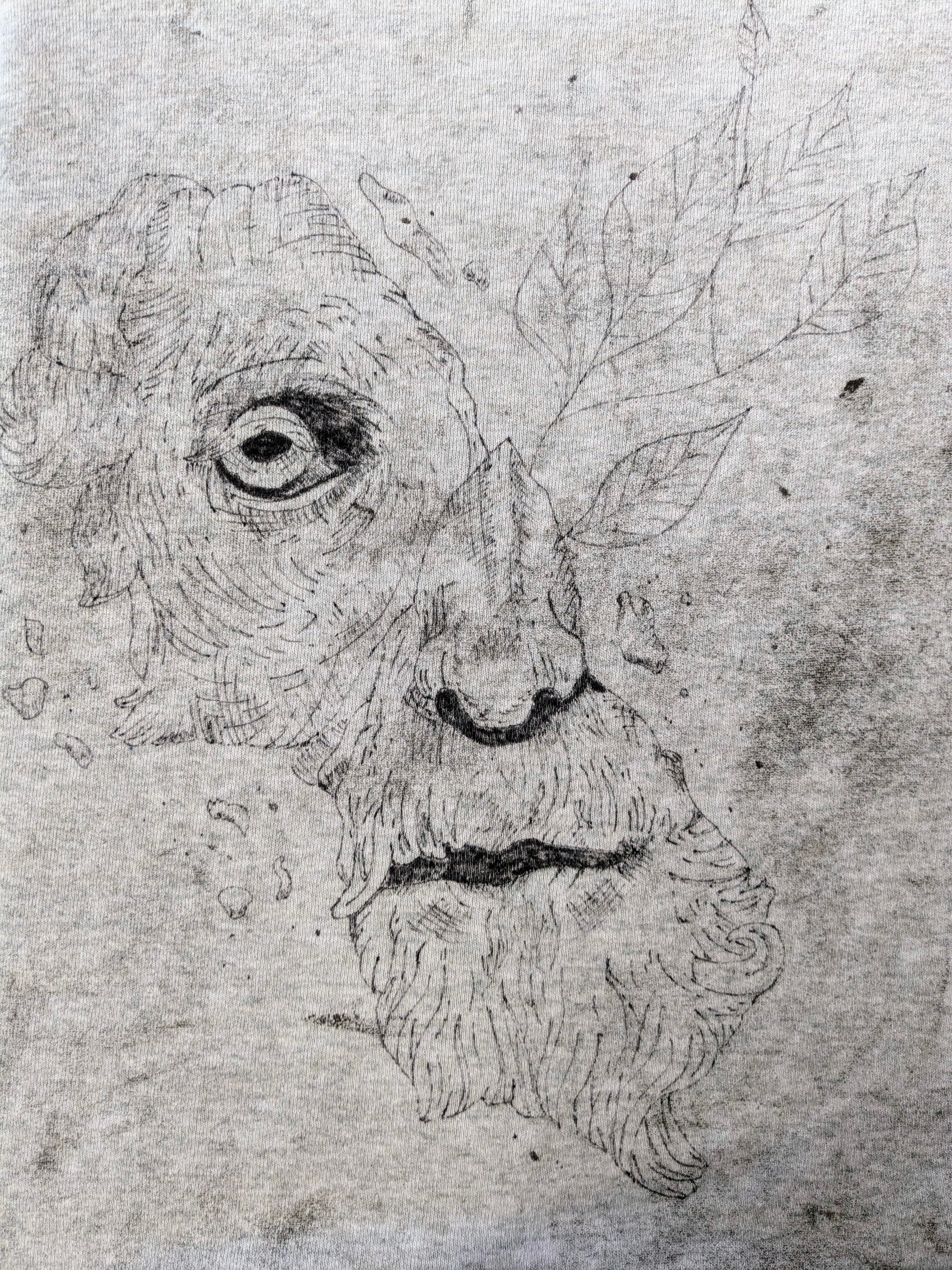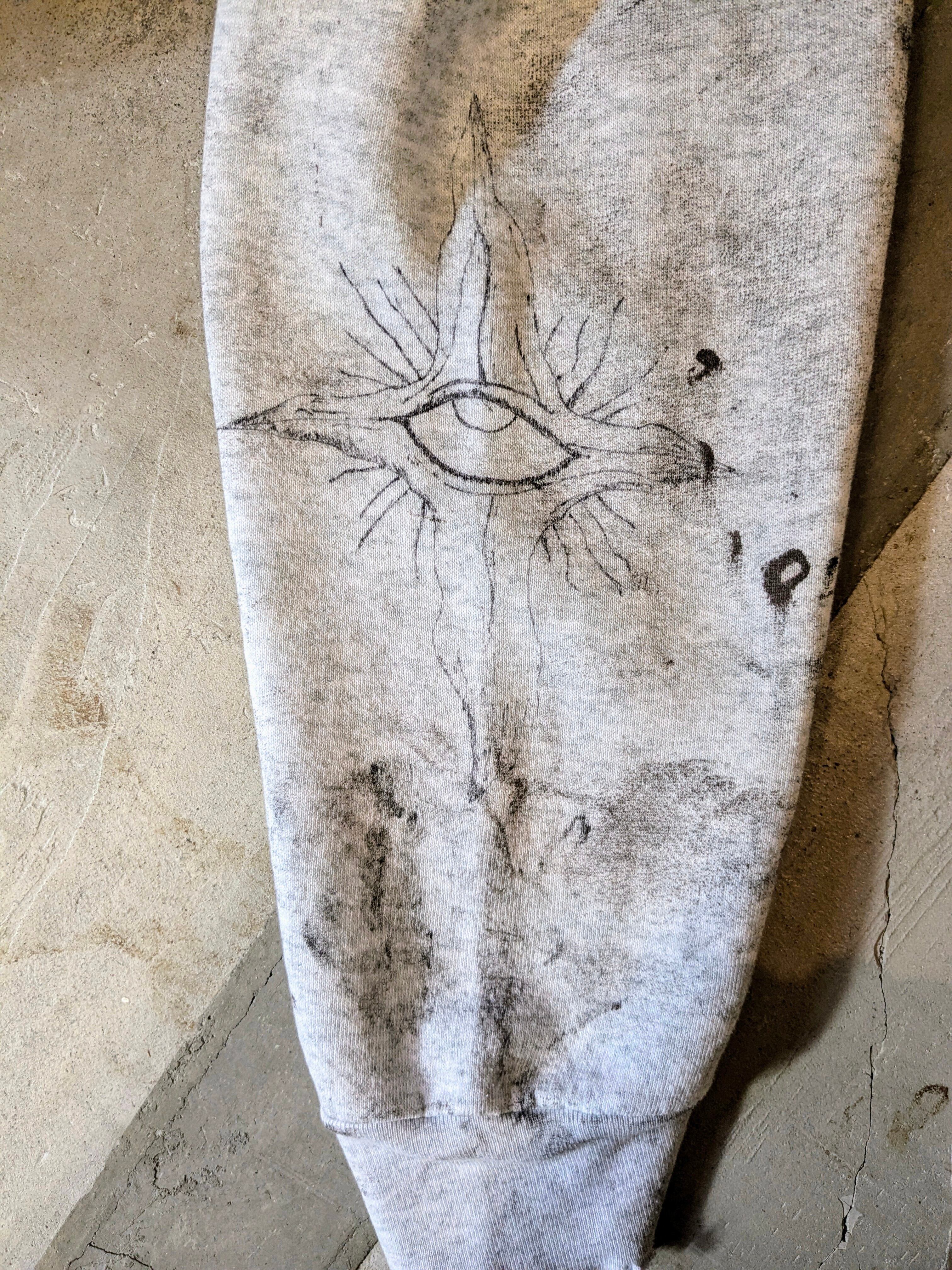 元々プリントの入っているスウェットに対して、手描きでアート調の絵を入れてもらっています。