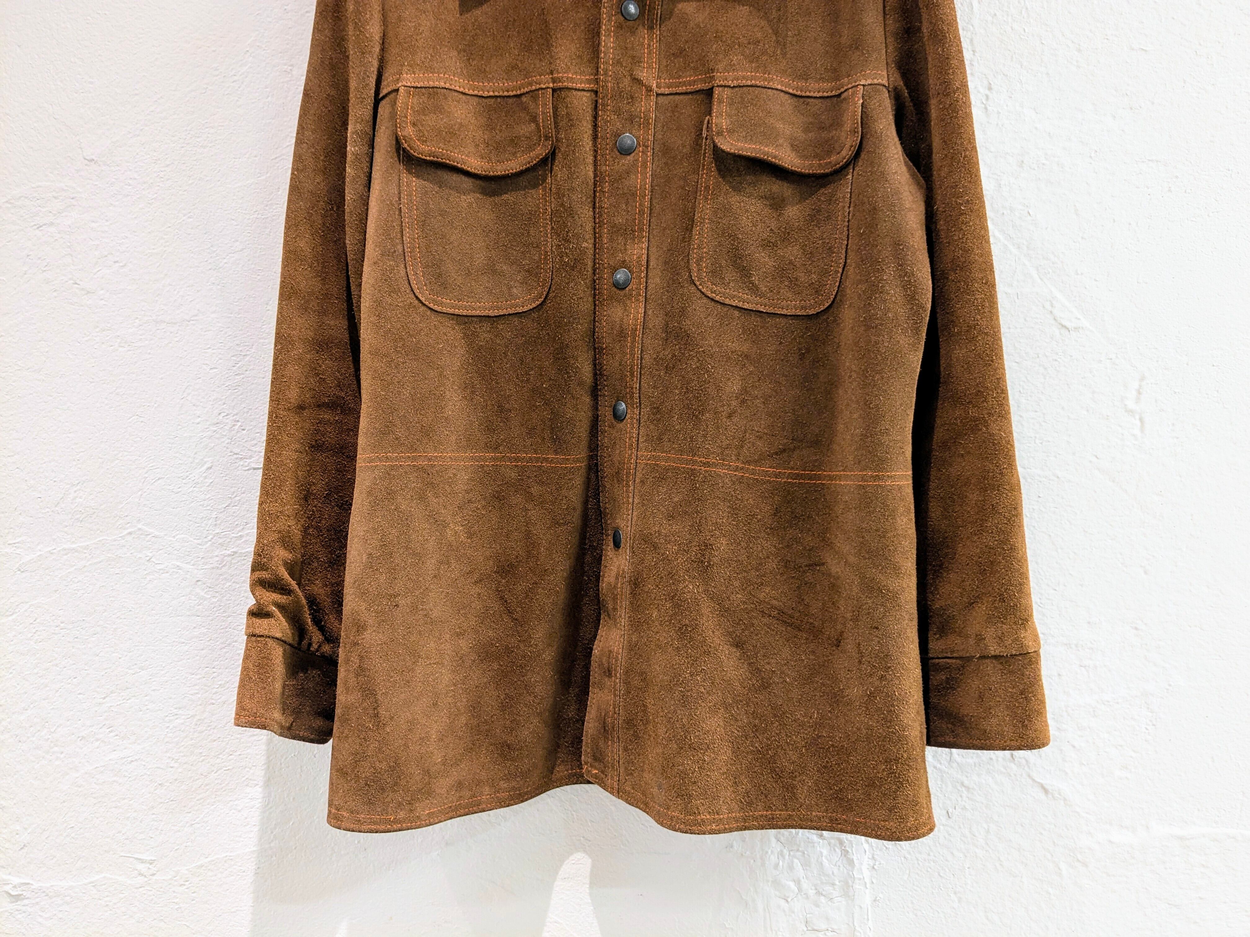 重厚感のあるレザーシャツジャケット。襟が大きめなので、70'sに近い年代かなと思います。