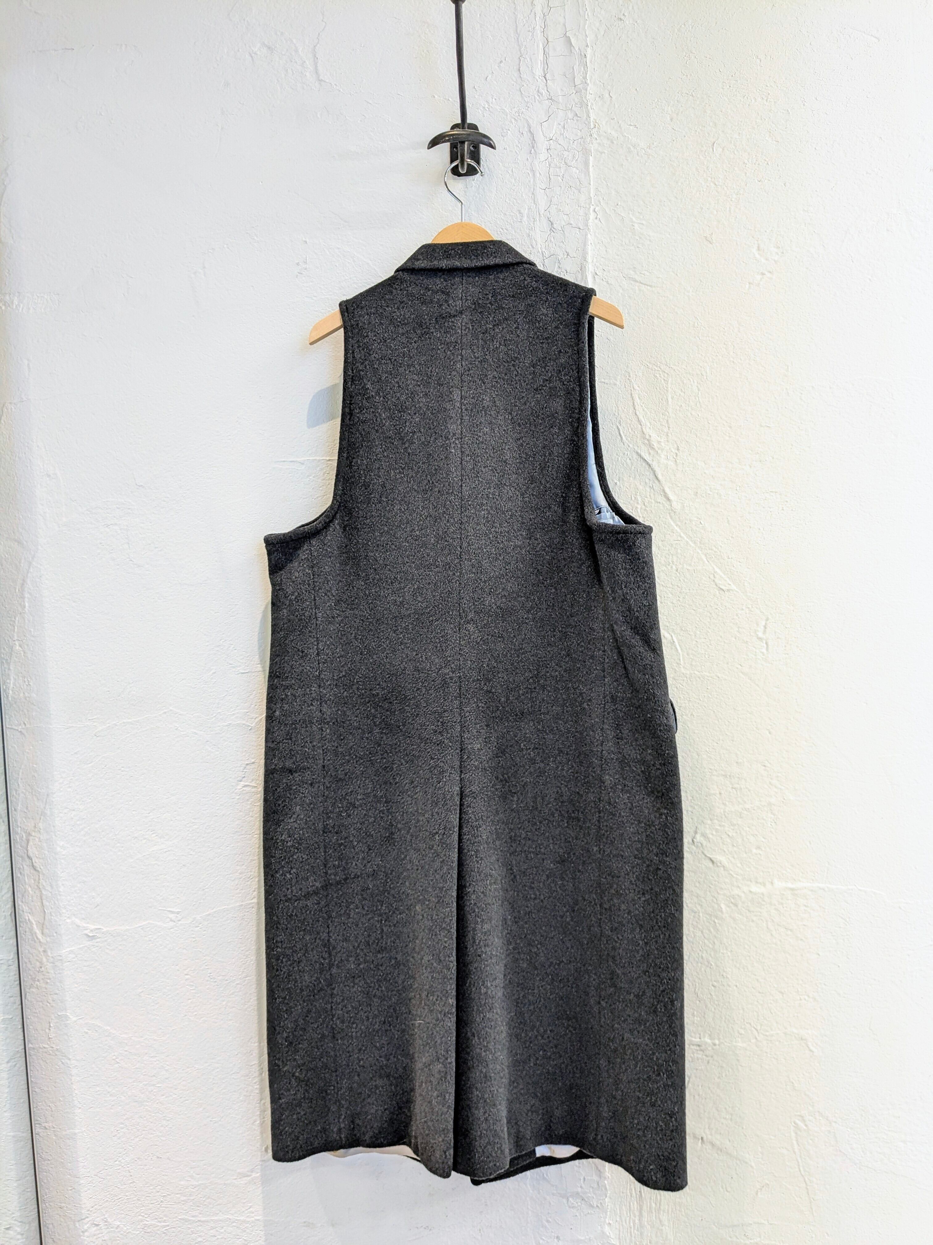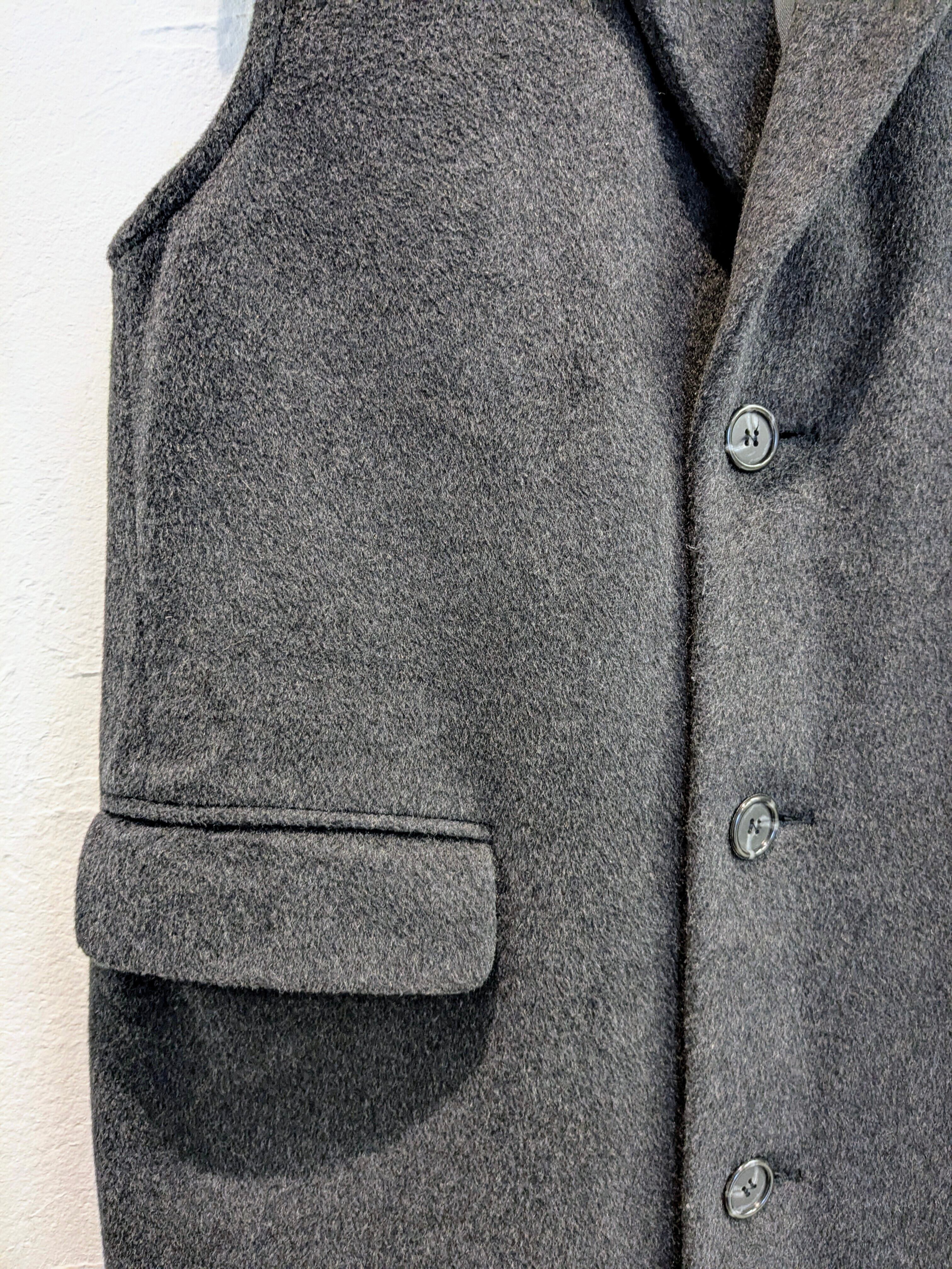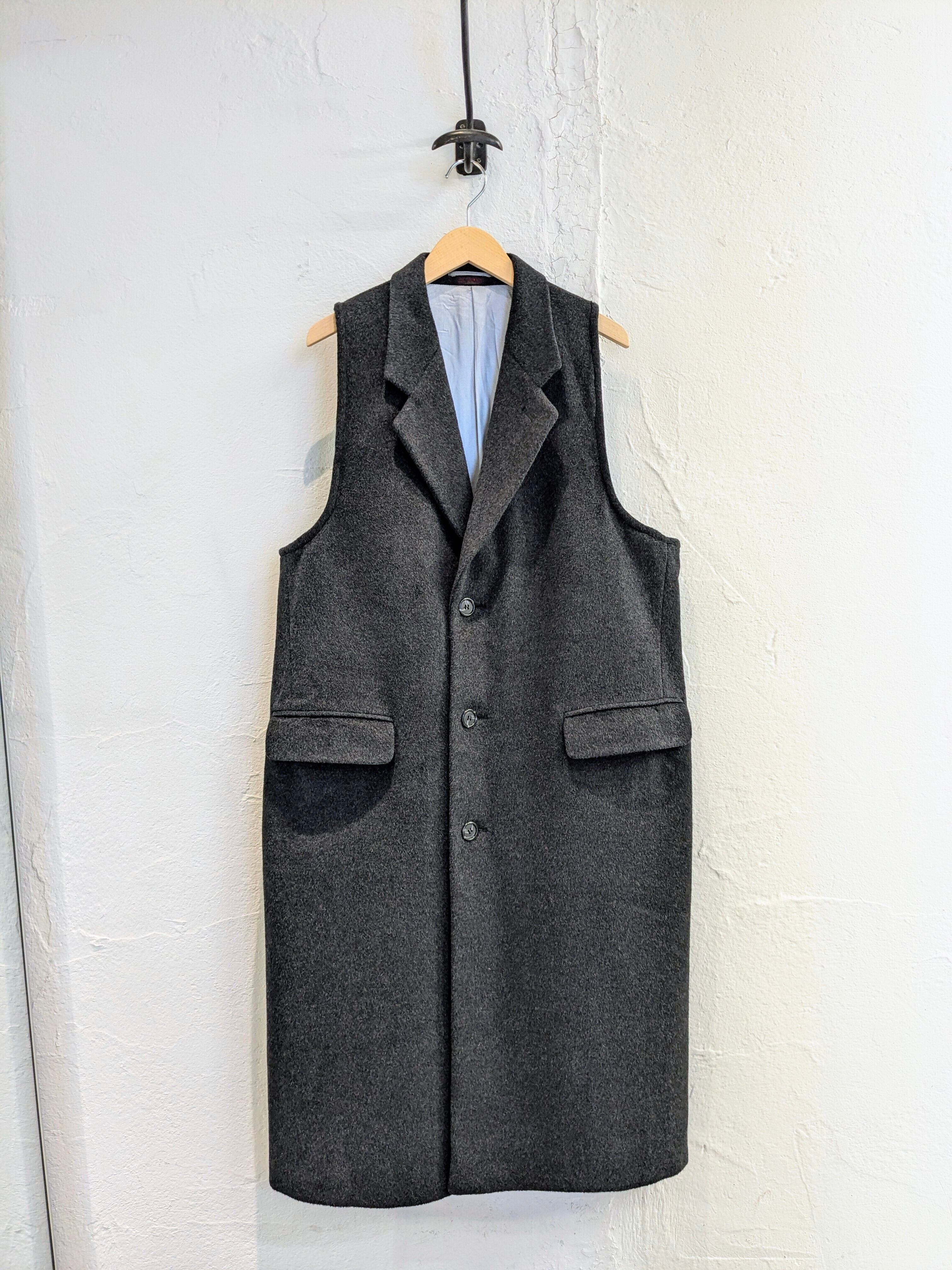 ブルゾン、ニットなどの上はもちろん、ベストならではですが、このコートの上に短丈のブルゾンなどをレイヤードして着てもお洒落です。