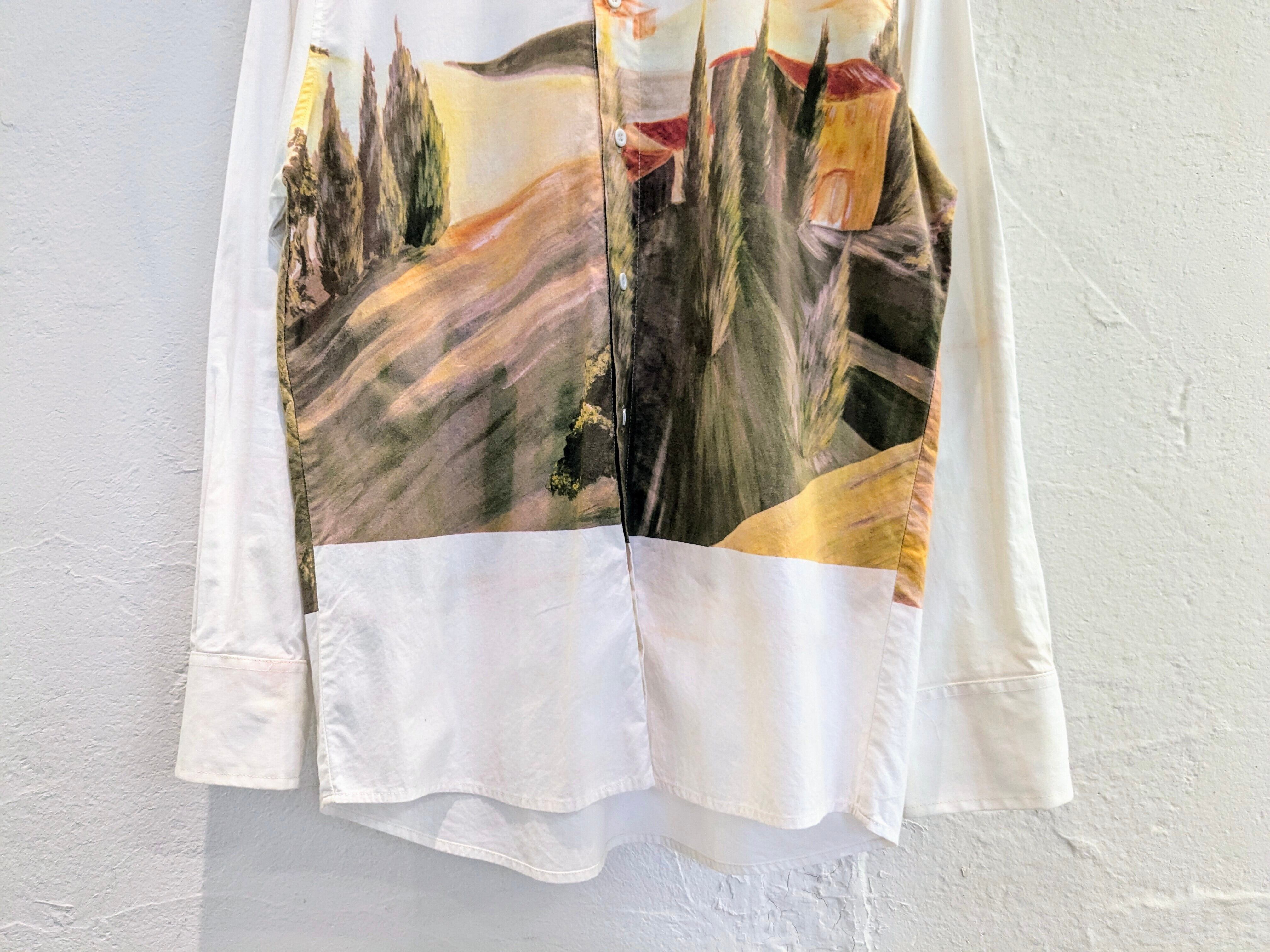 デザインもアーティスティックで、今の時期はインナーに入れても目を引くこと間違いなし。シンプルになりすぎないスタイリングにもってこいのシャツとなっています。