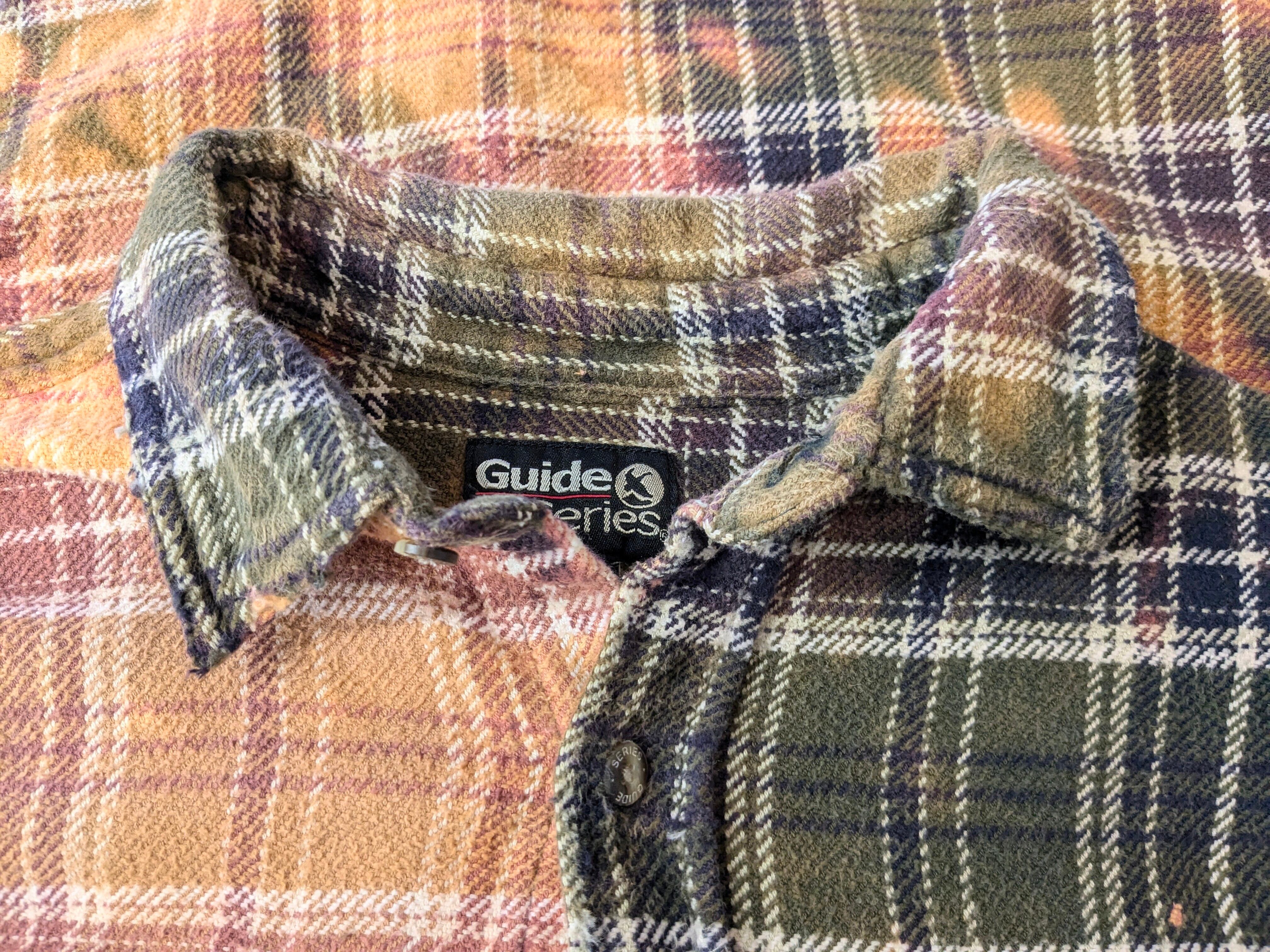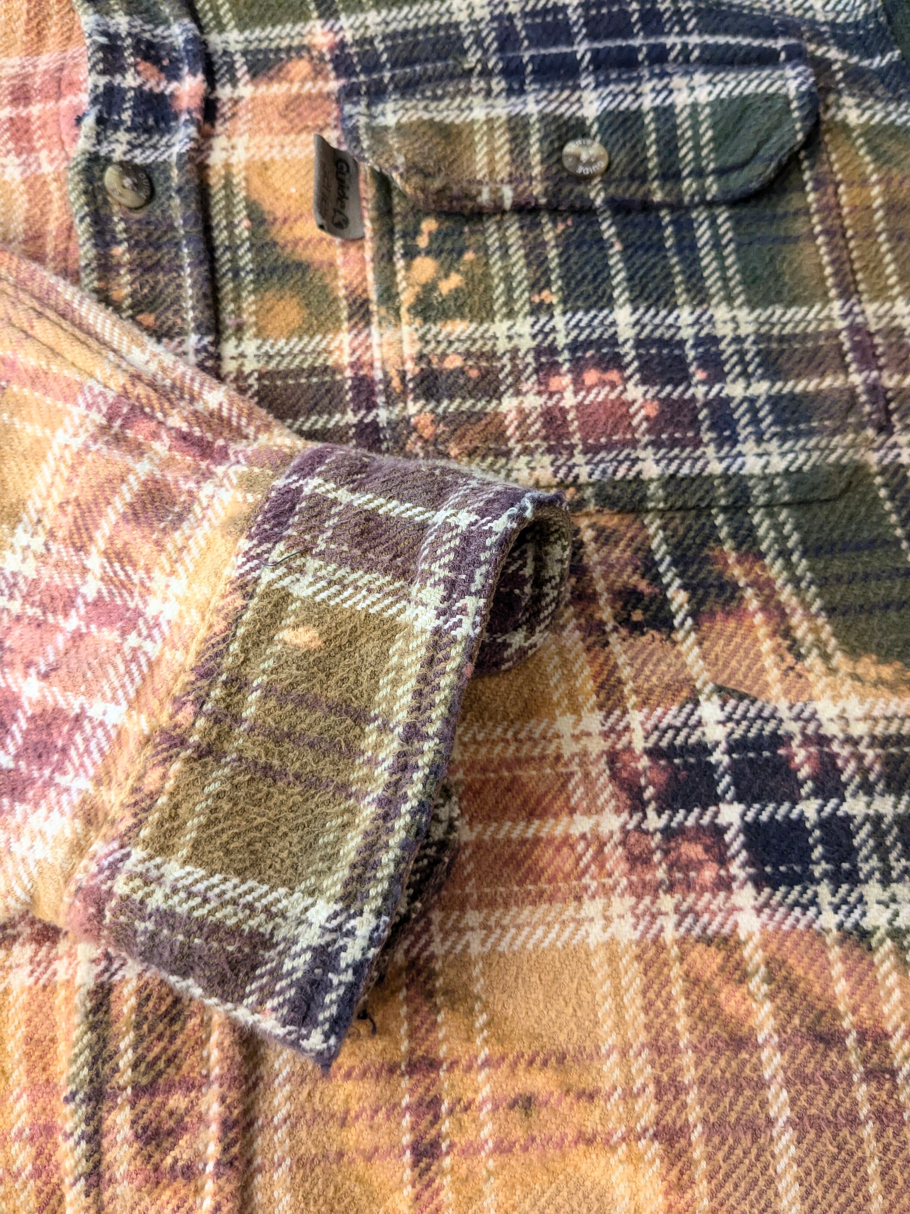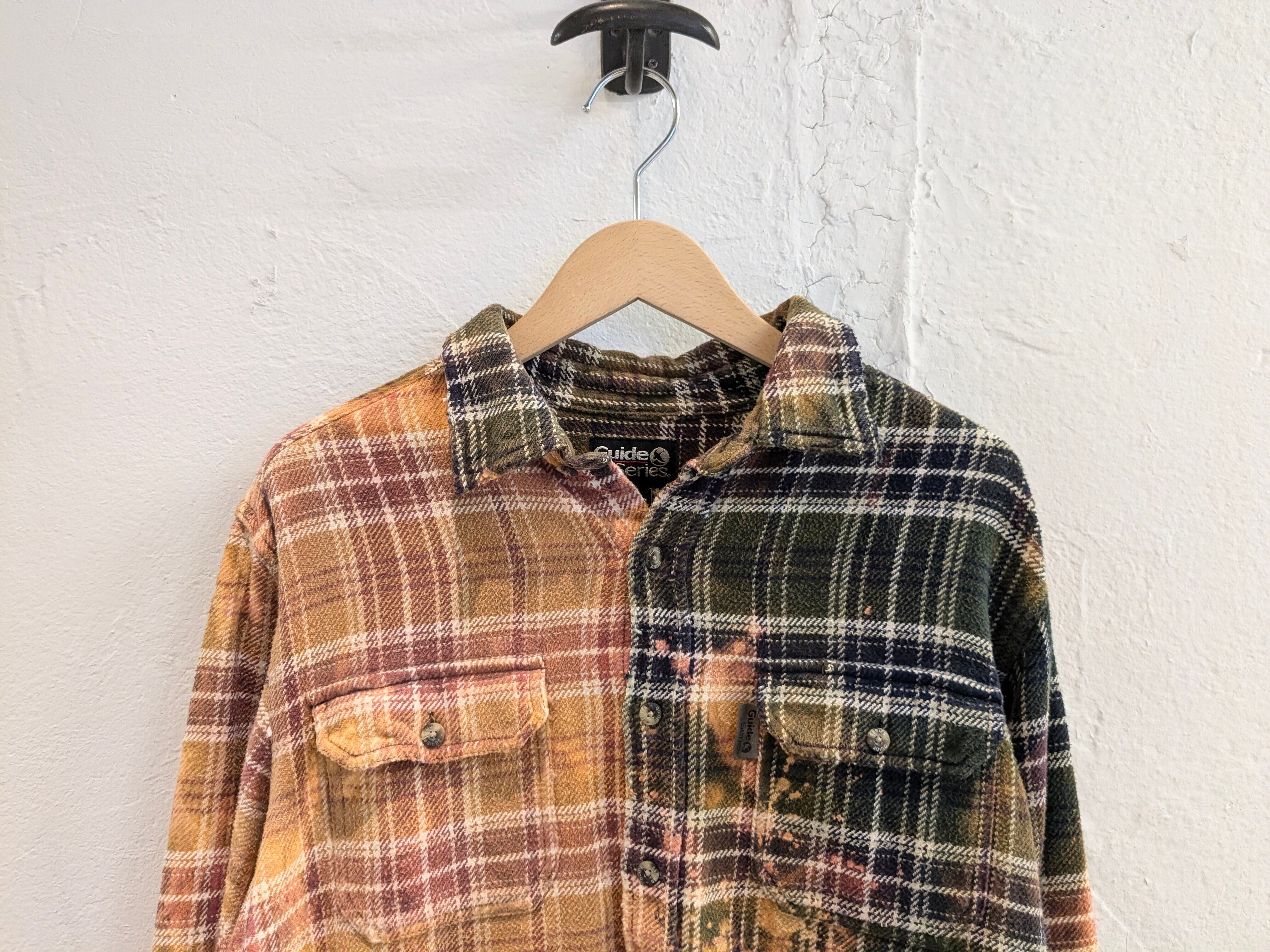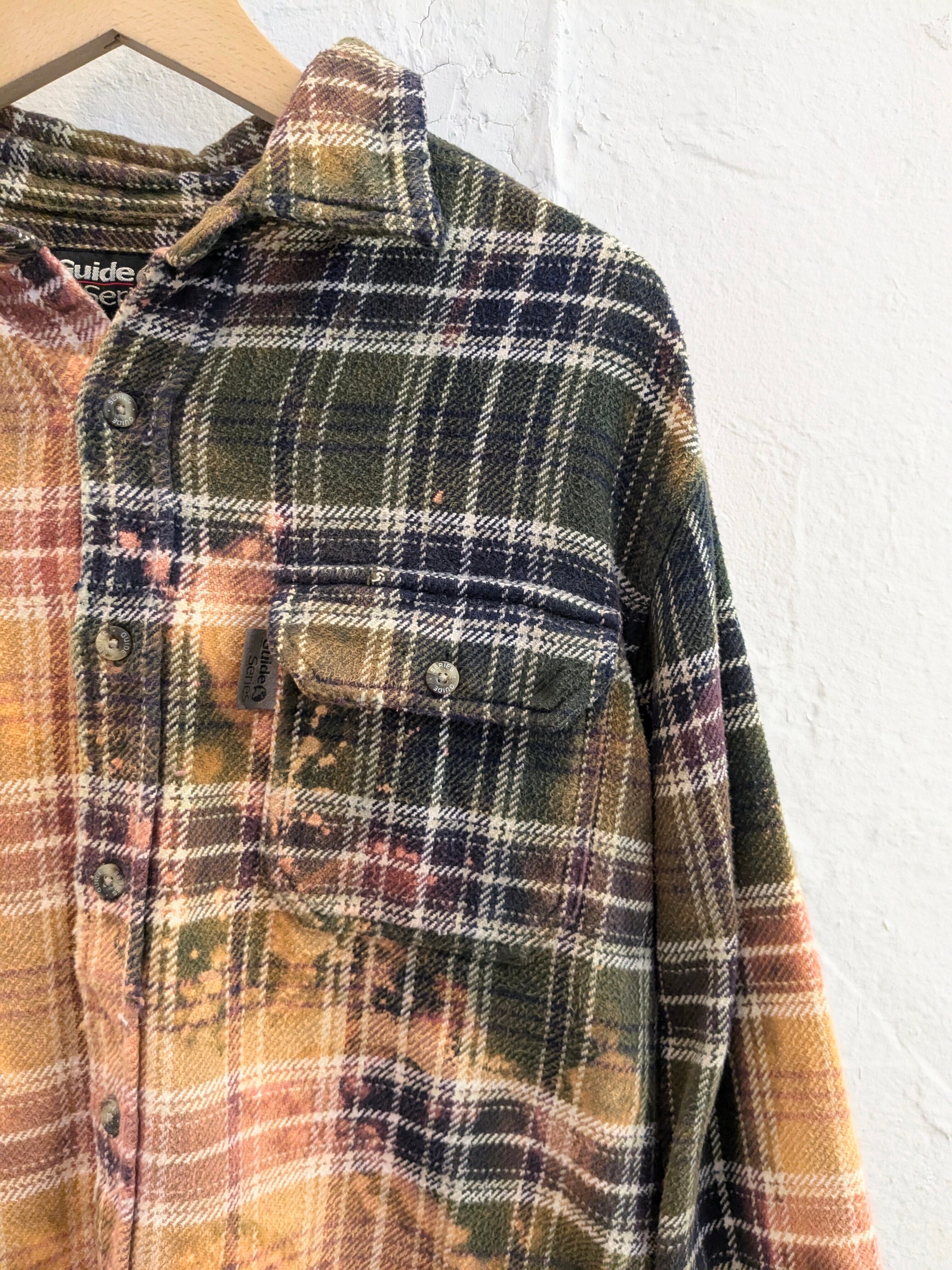 ブリーチによるフェード加工、襟、袖、裾などにダメージの加工が施されたボロネルシャツ。裾に関しましては、直線ではなくあえてランダムに切断してあります。