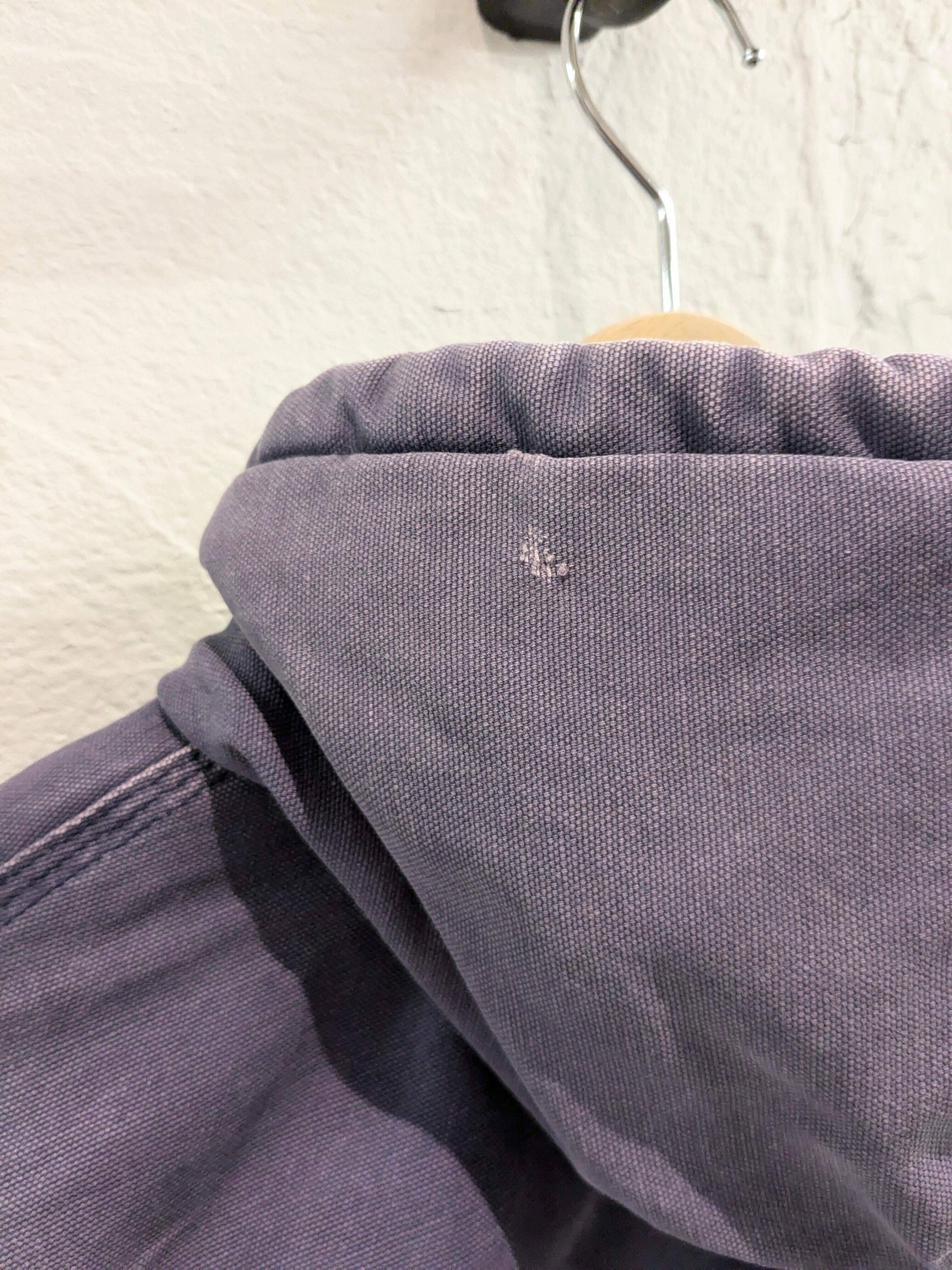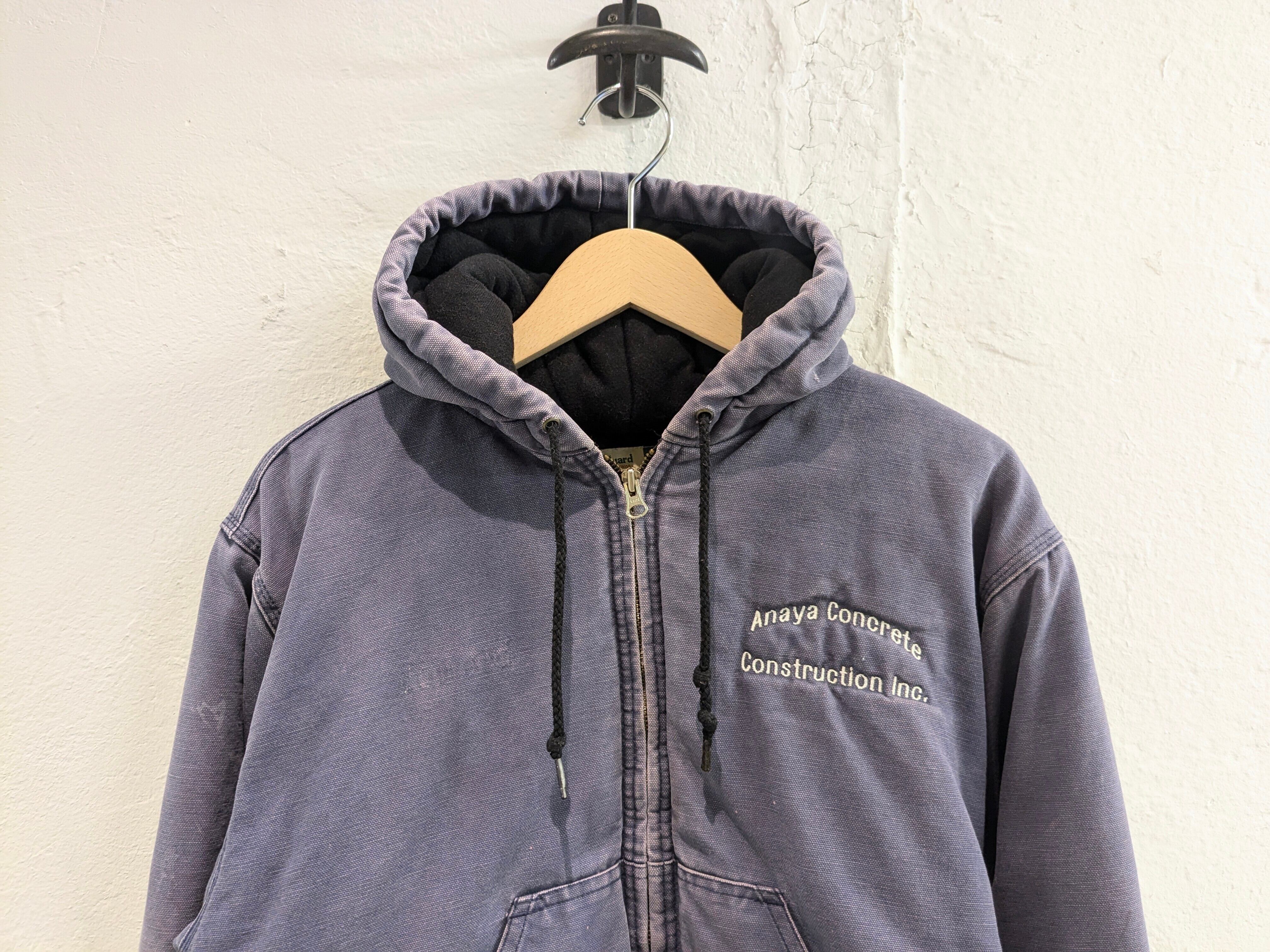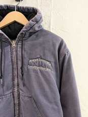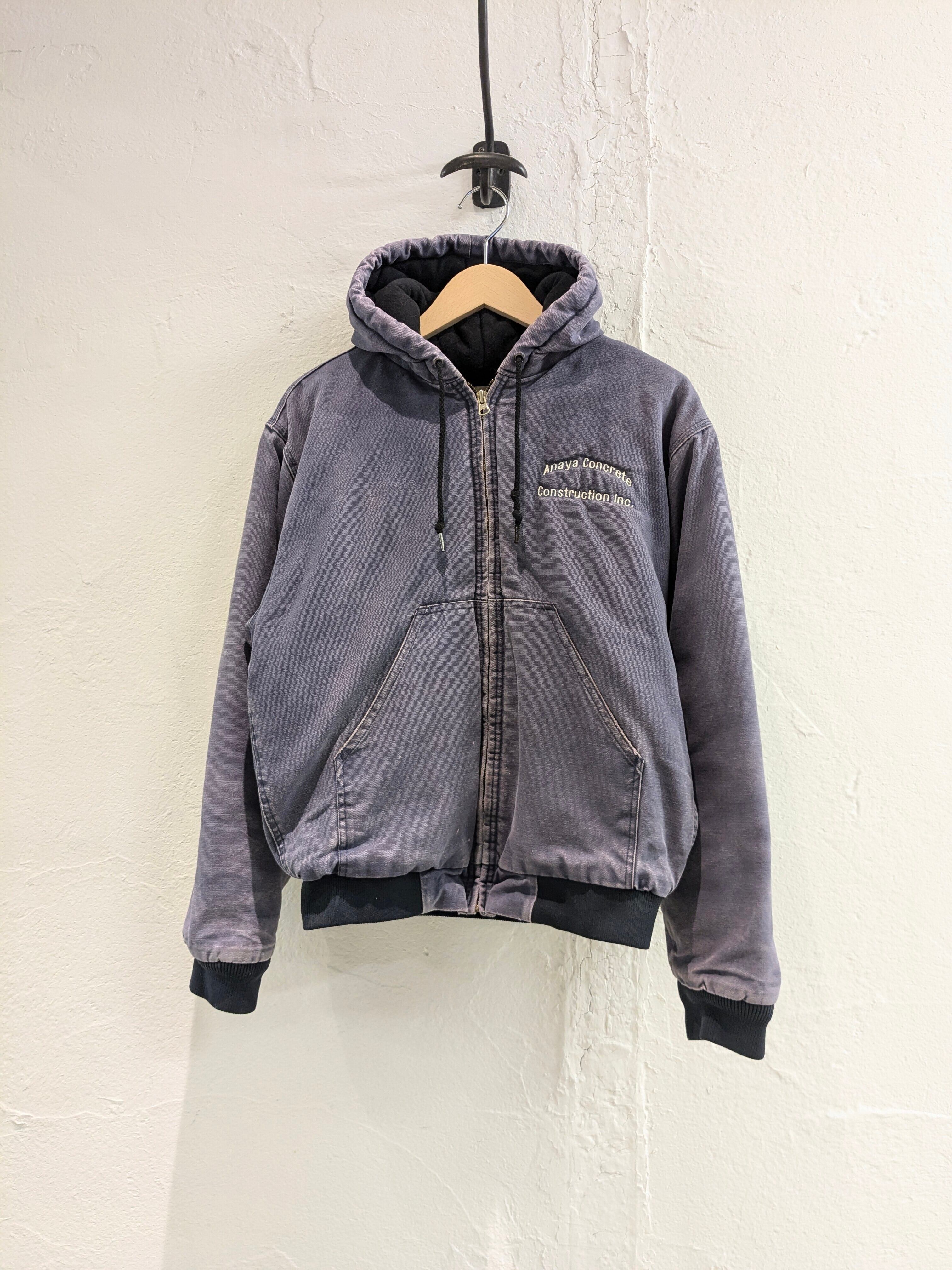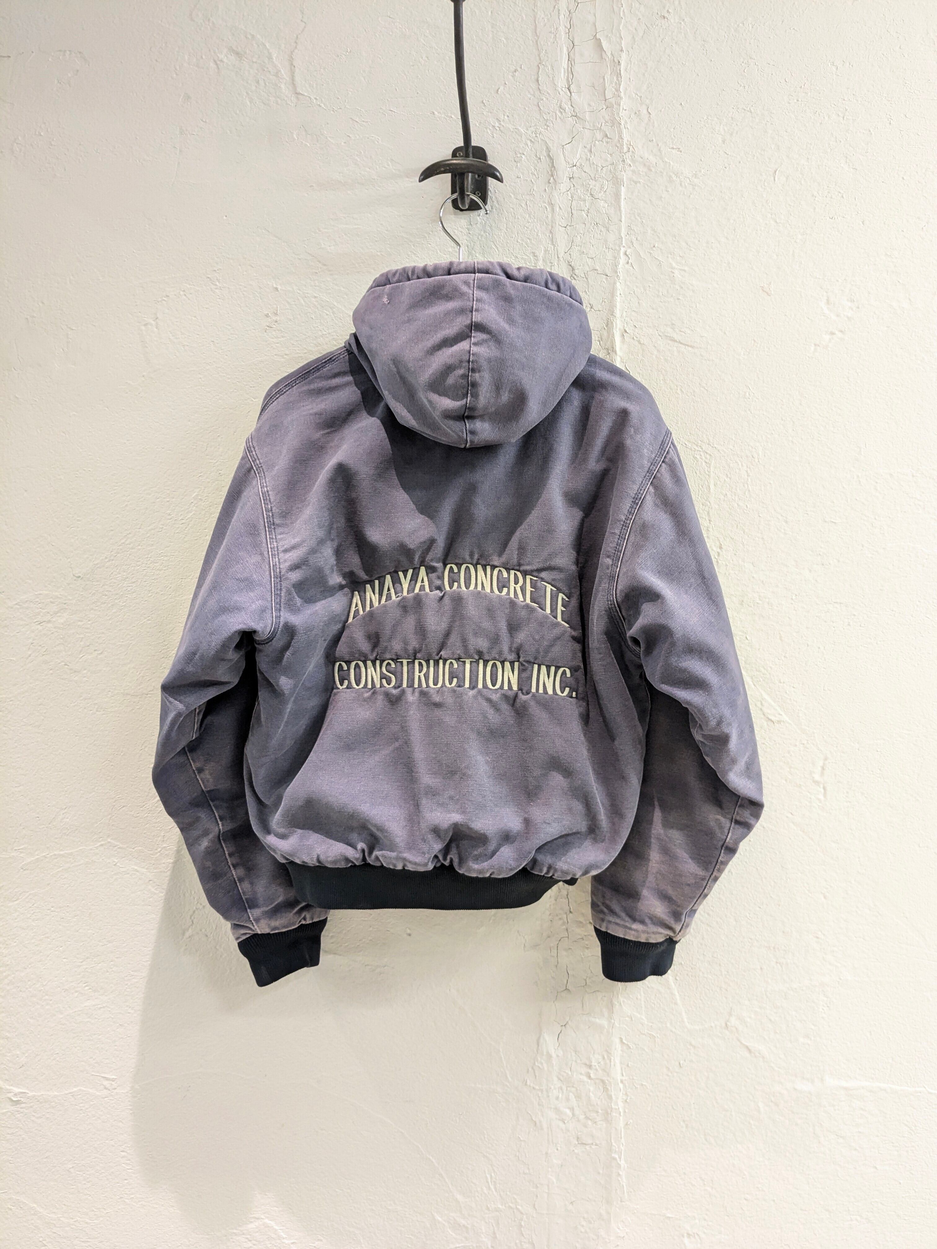 企業系の刺繍が入っている、ダック生地のブルゾンになります。コンクリート業者の刺繍がされており、作業着、ユニフォーム的なところで使われていたかと思います。全体的にフェードと、部分的に汚れなどがありますが、そこも味がありとても雰囲気がいいです。