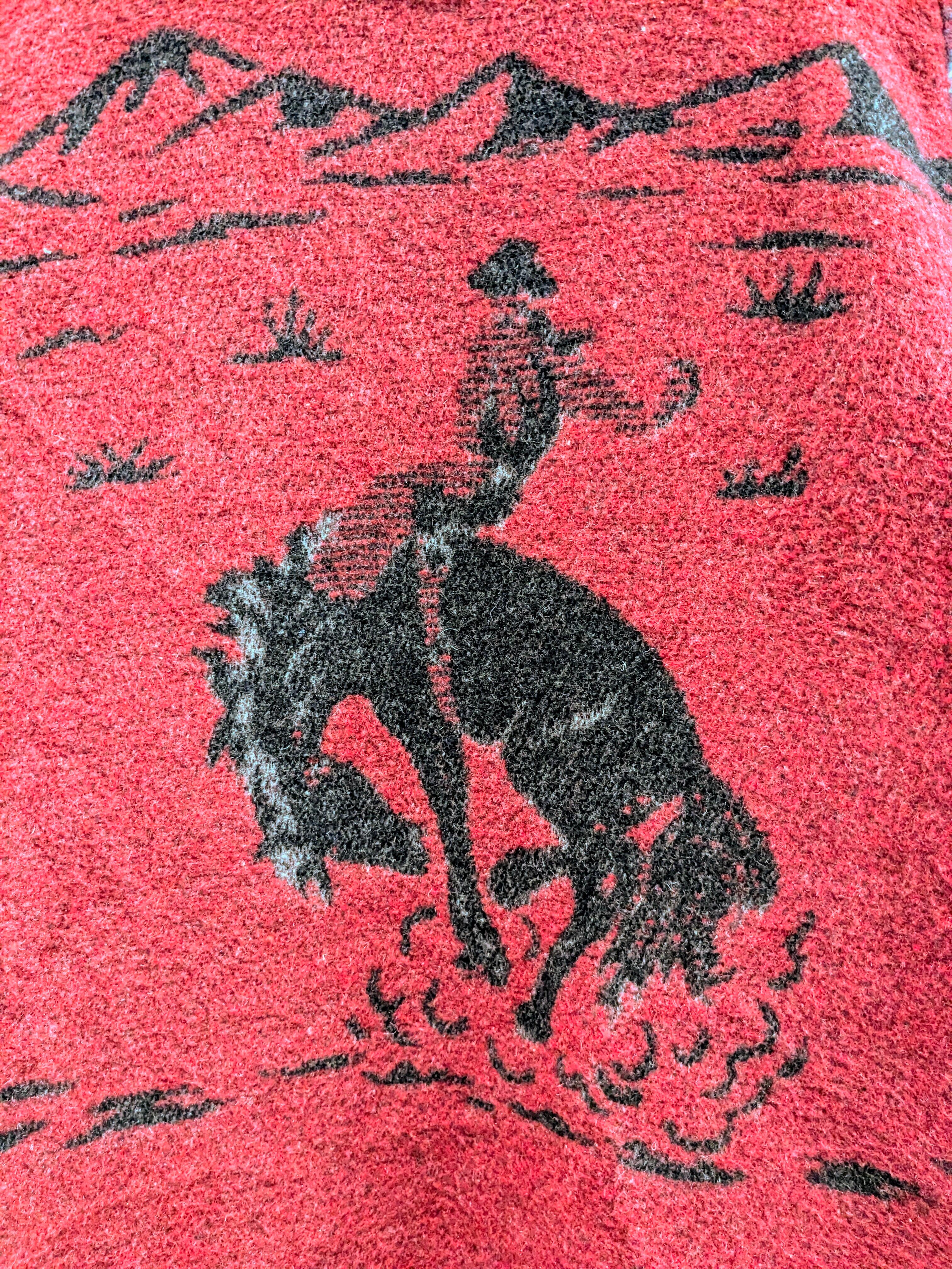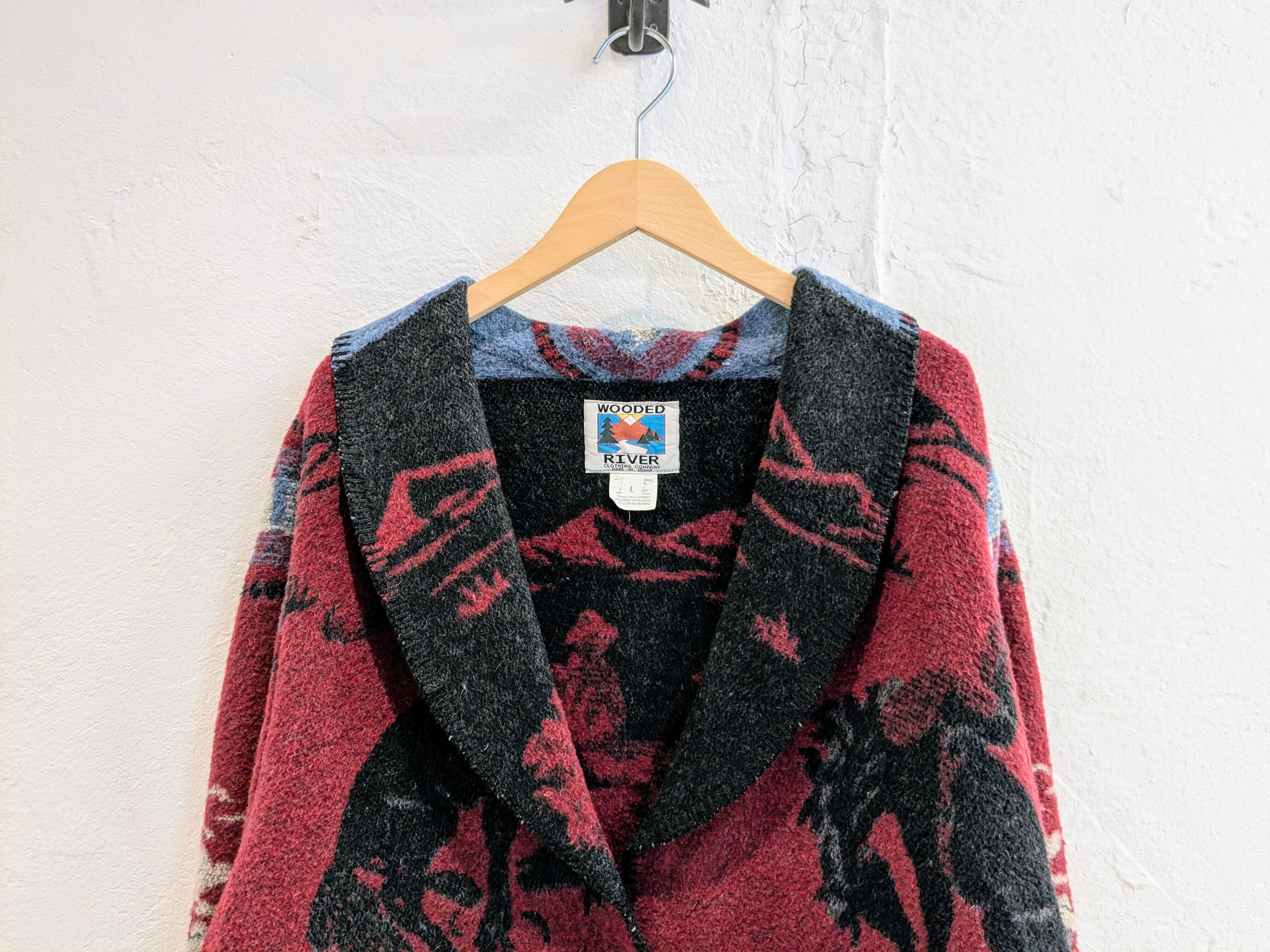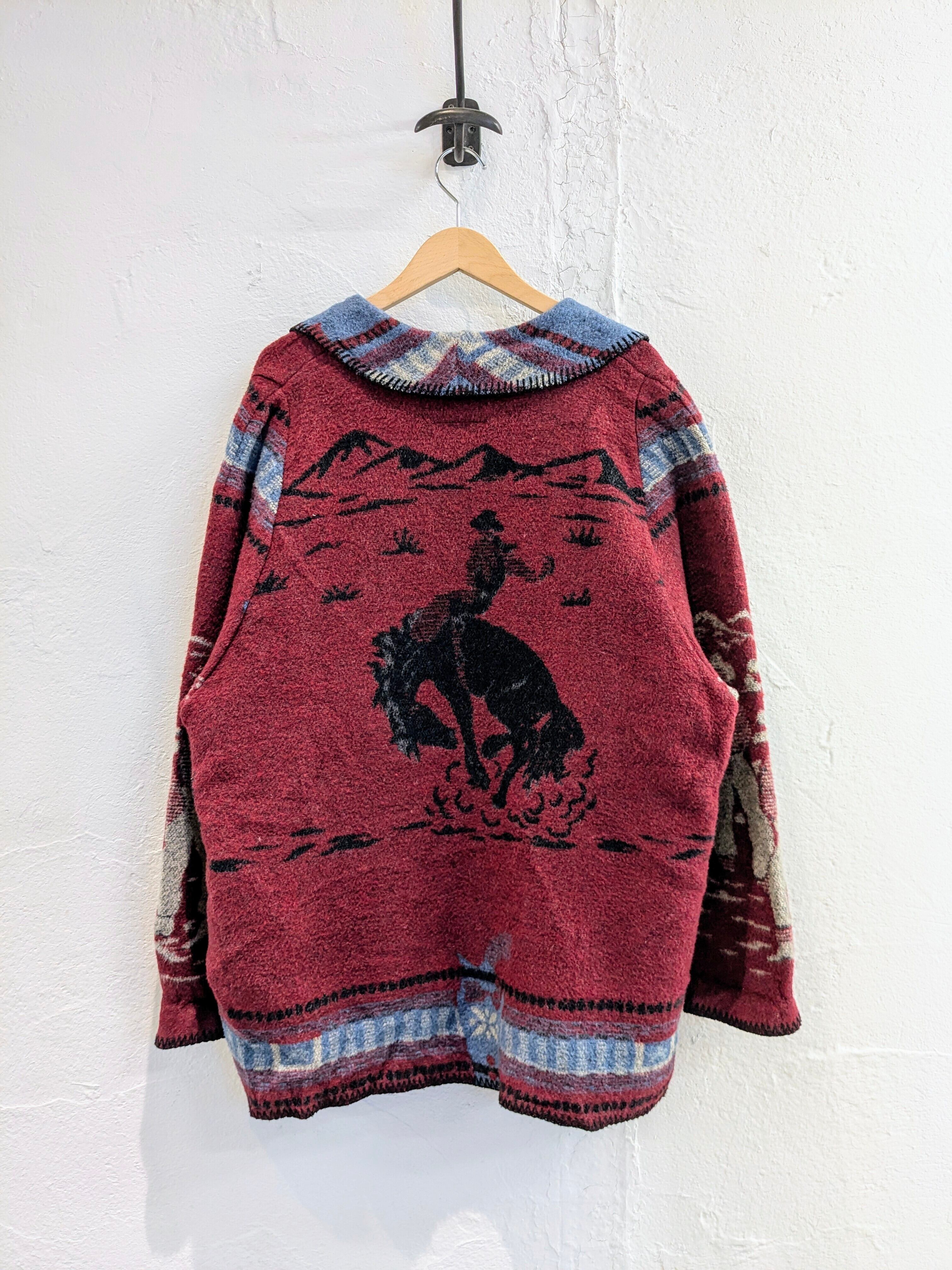 カウボーイ、ロデオのデザインがとてもかっこよく編み柄、織柄で作られているので浮き出るようなデザインです。カーディガン感覚でリラックスして羽織れます。