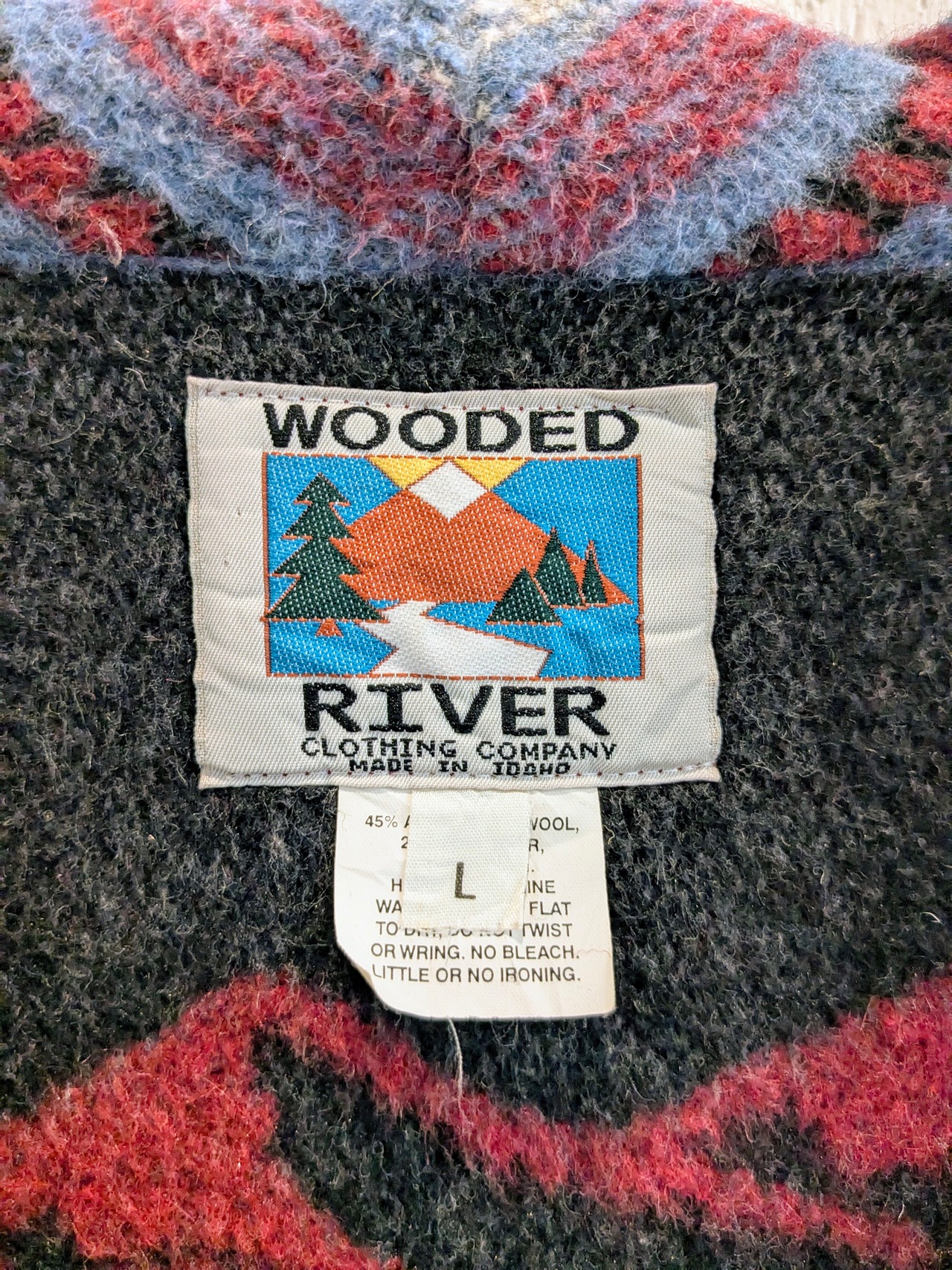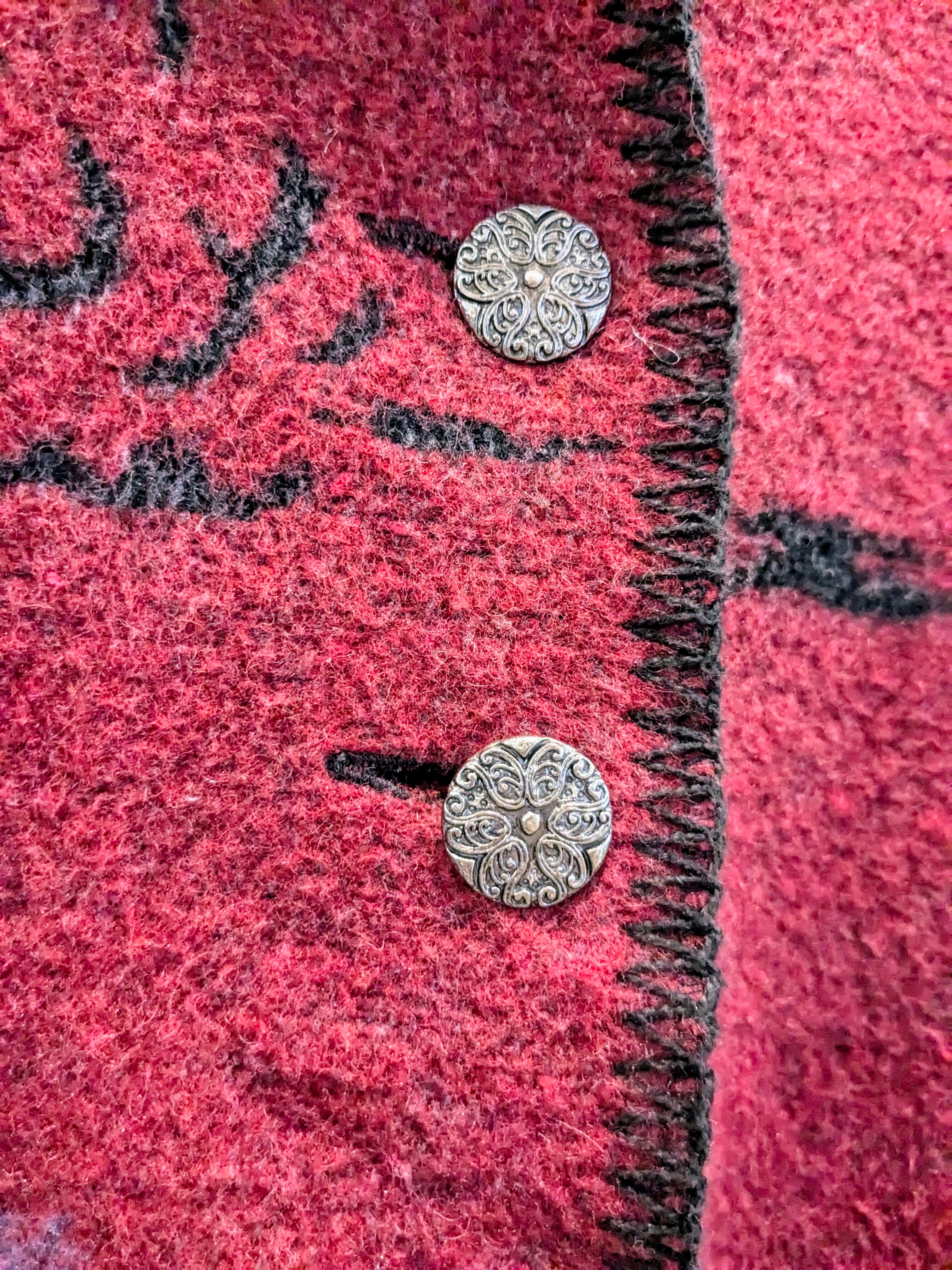 アメリカのアイダホ州製のニットジャケット。裏地がついていないのですが、その分軽量で羽織りやすいデザインとなっています。コンチョボタンも目を引くポイント。