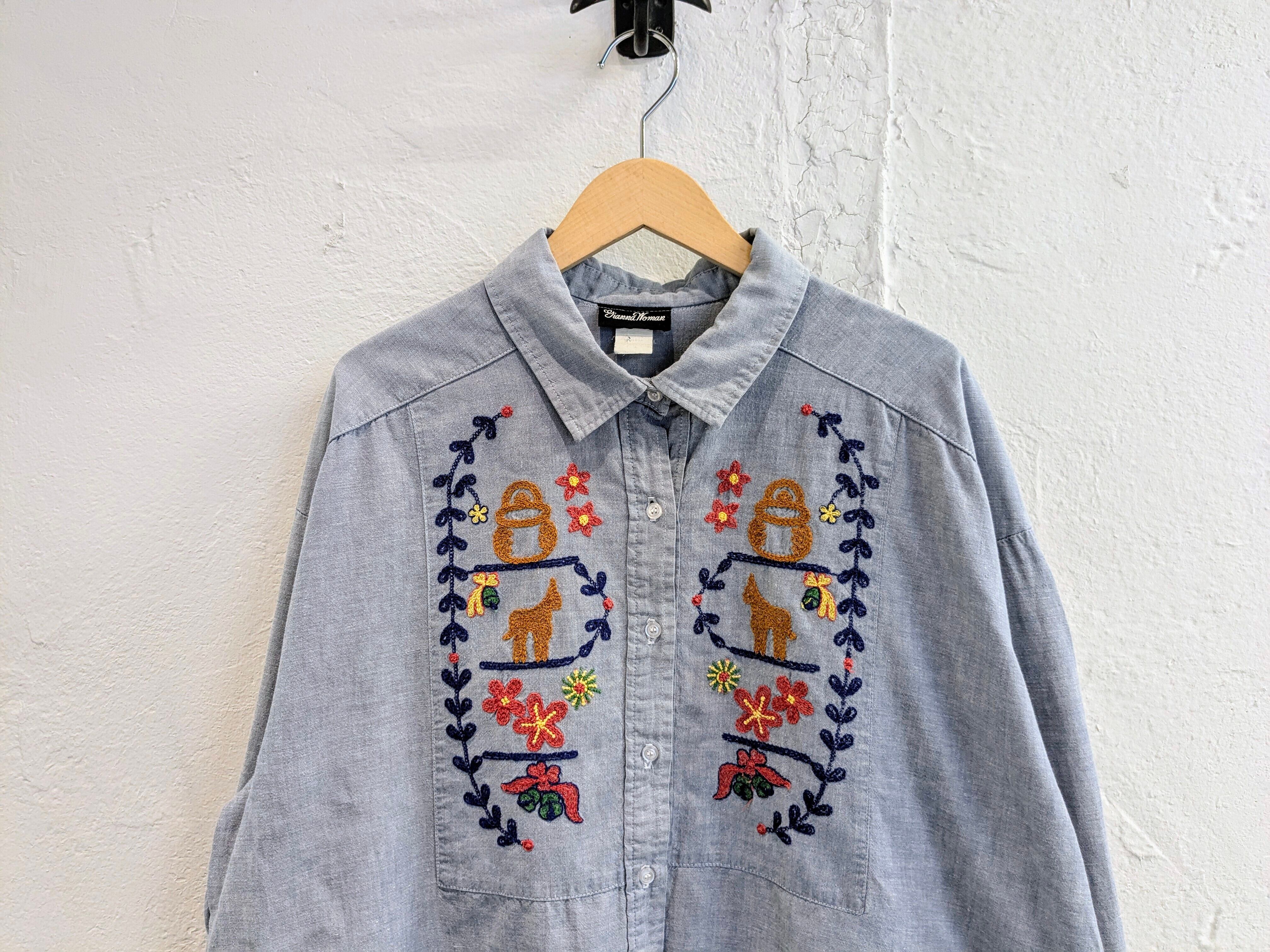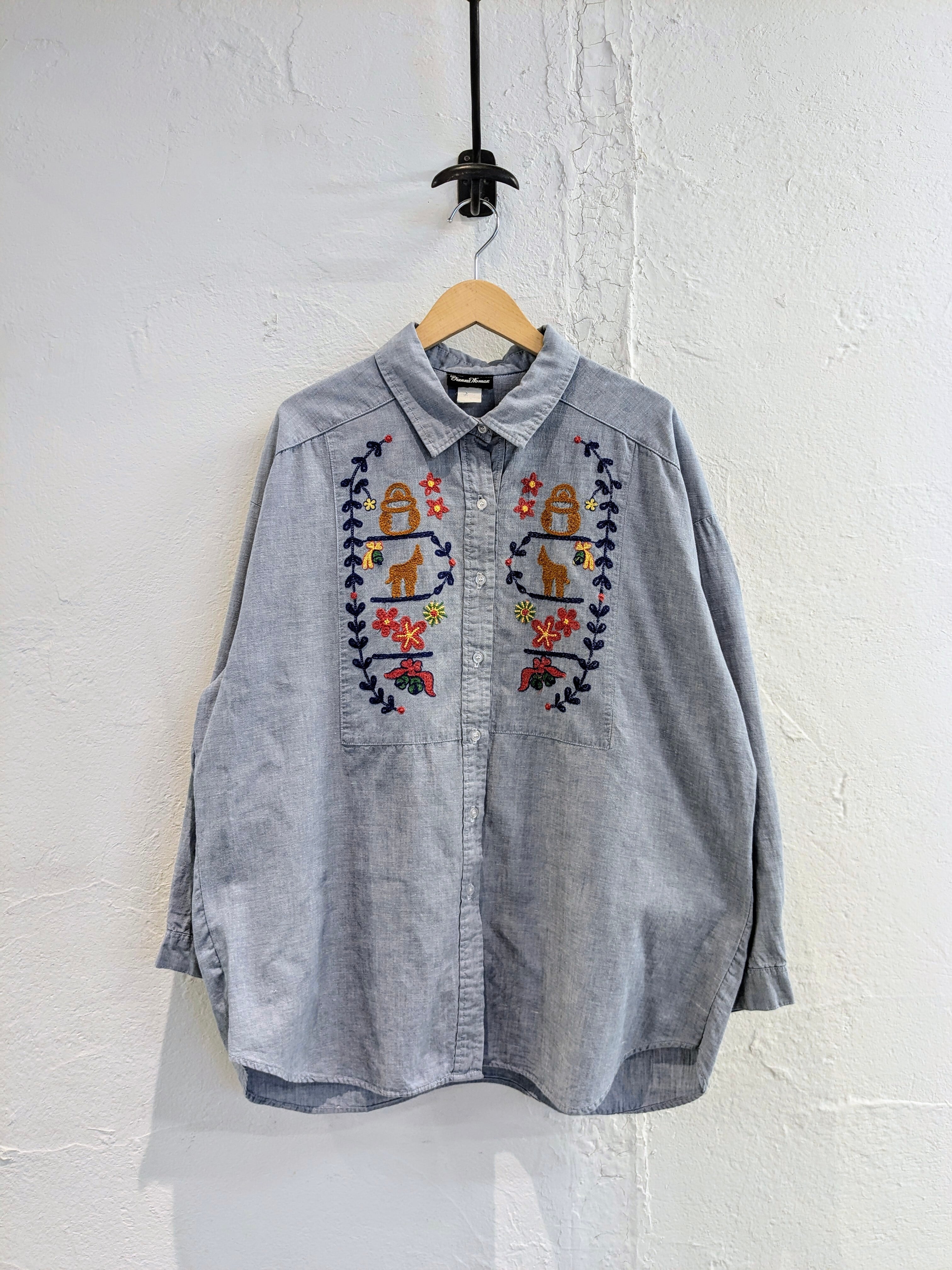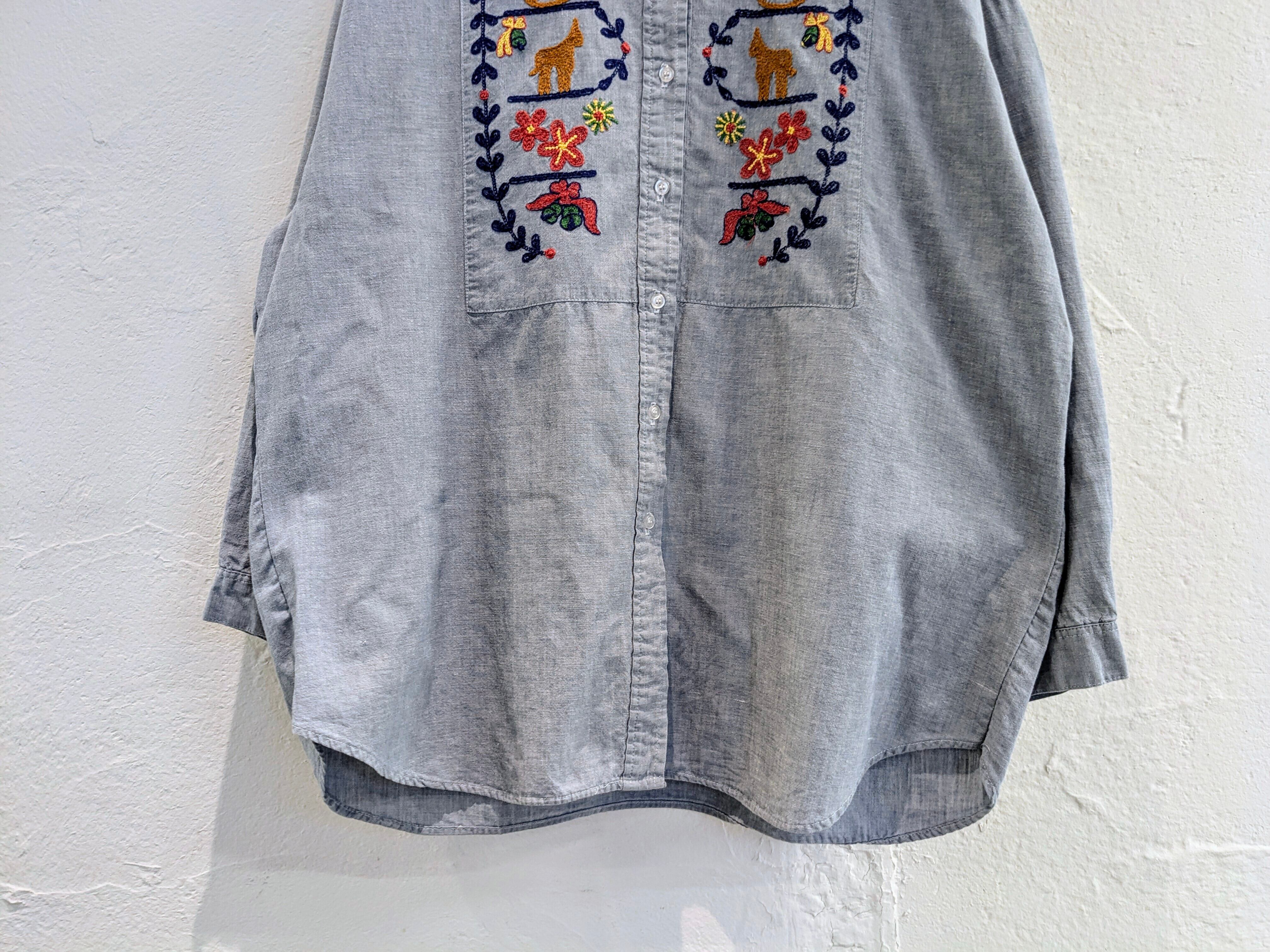 Made In Usa Ethnic Embroidery Design Chambray Shirt