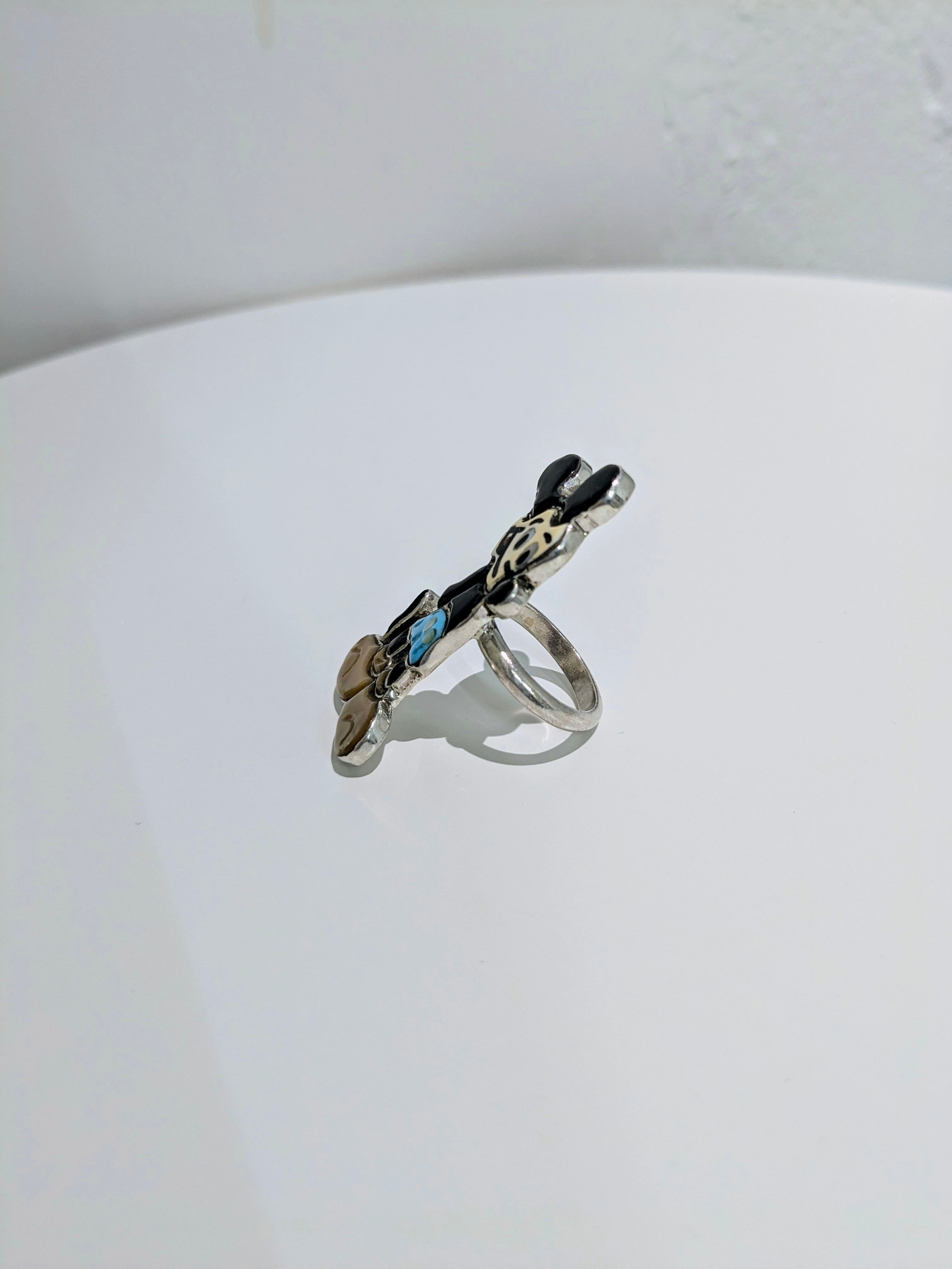 可愛らしいキャラクターがインレイワークされた、ズニ族のリングになります。