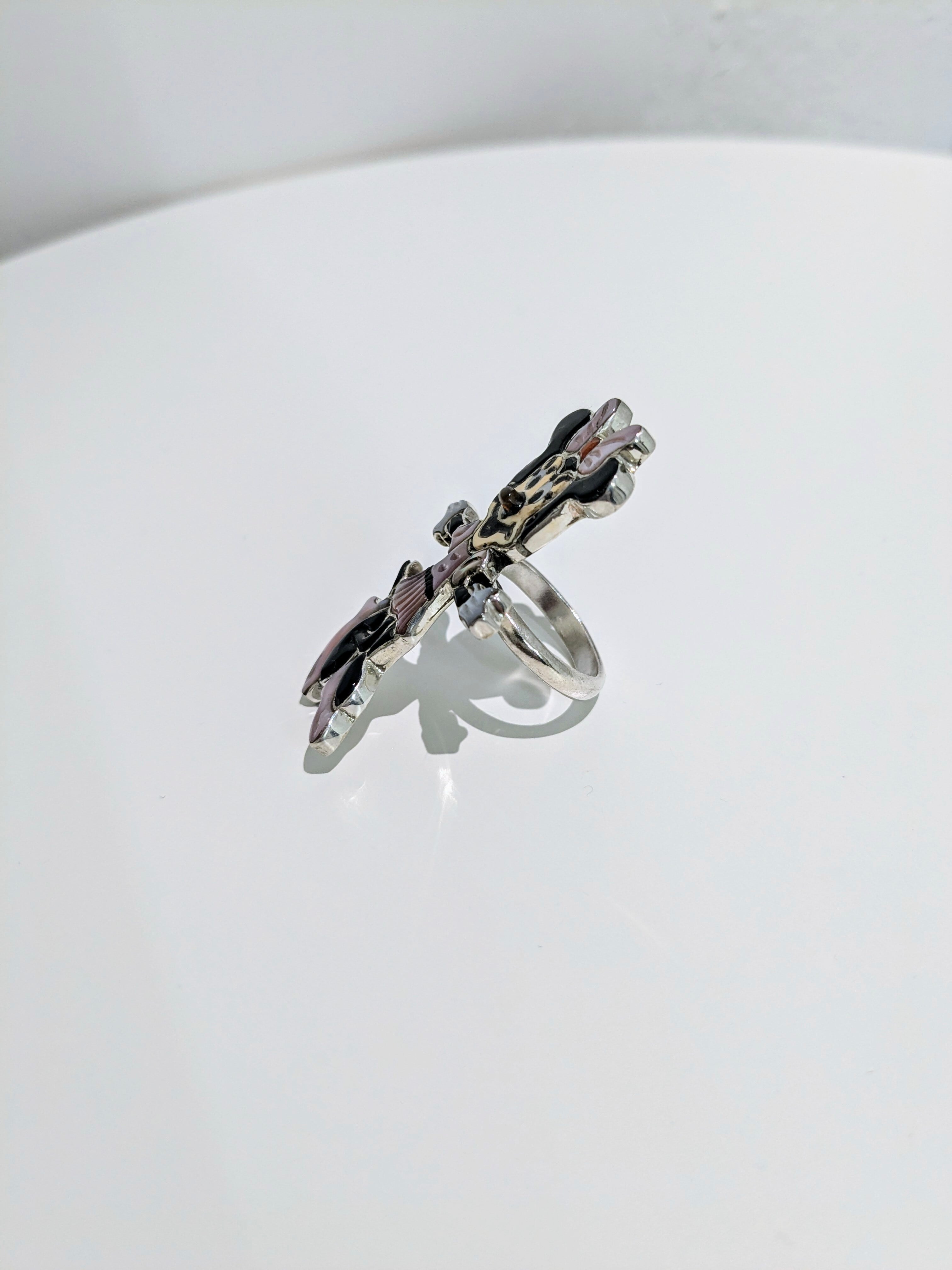 可愛らしいキャラクターがインレイワークされた、ズニ族のリングになります。