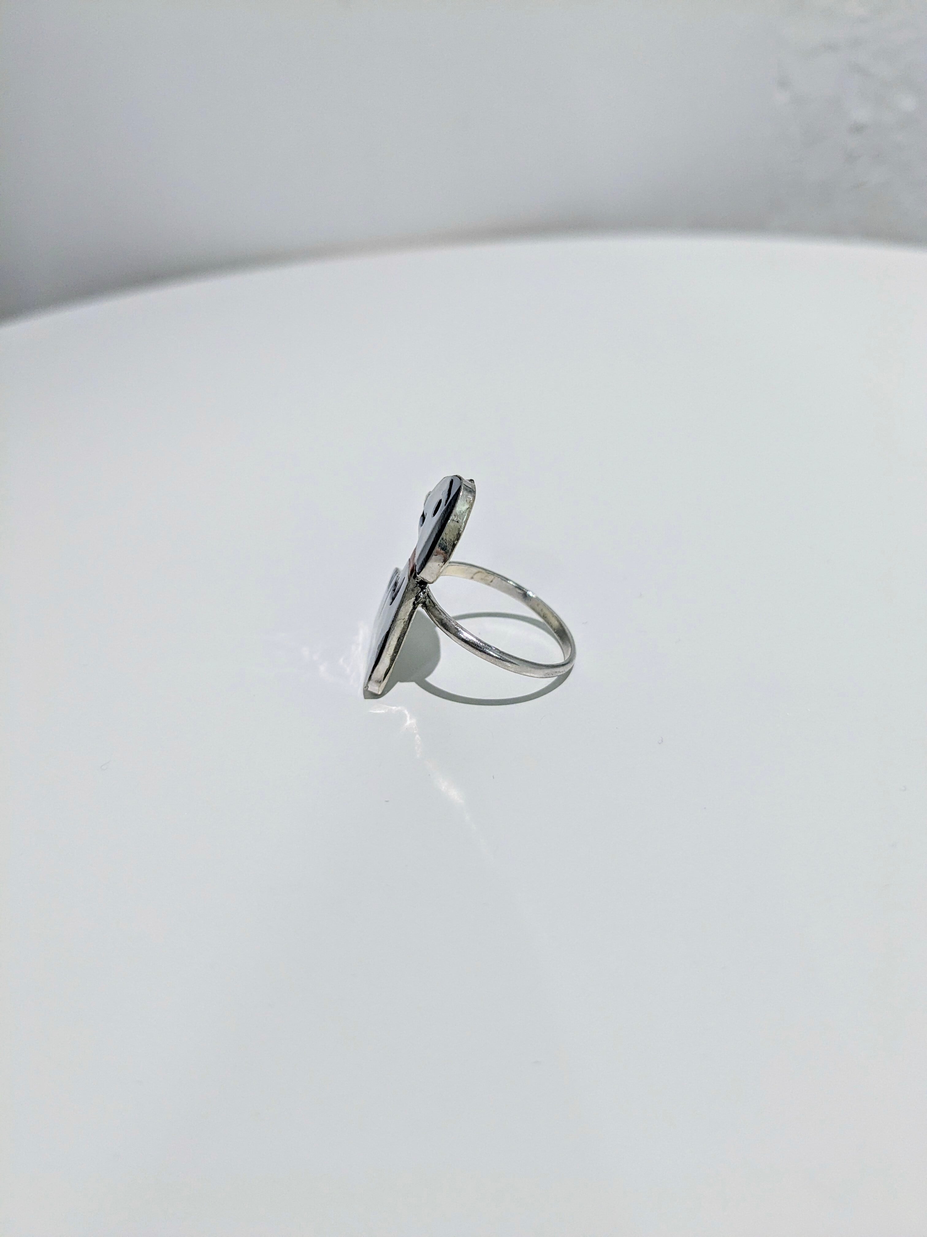 可愛らしいキャラクターがインレイワークされた、ズニ族のリングになります。