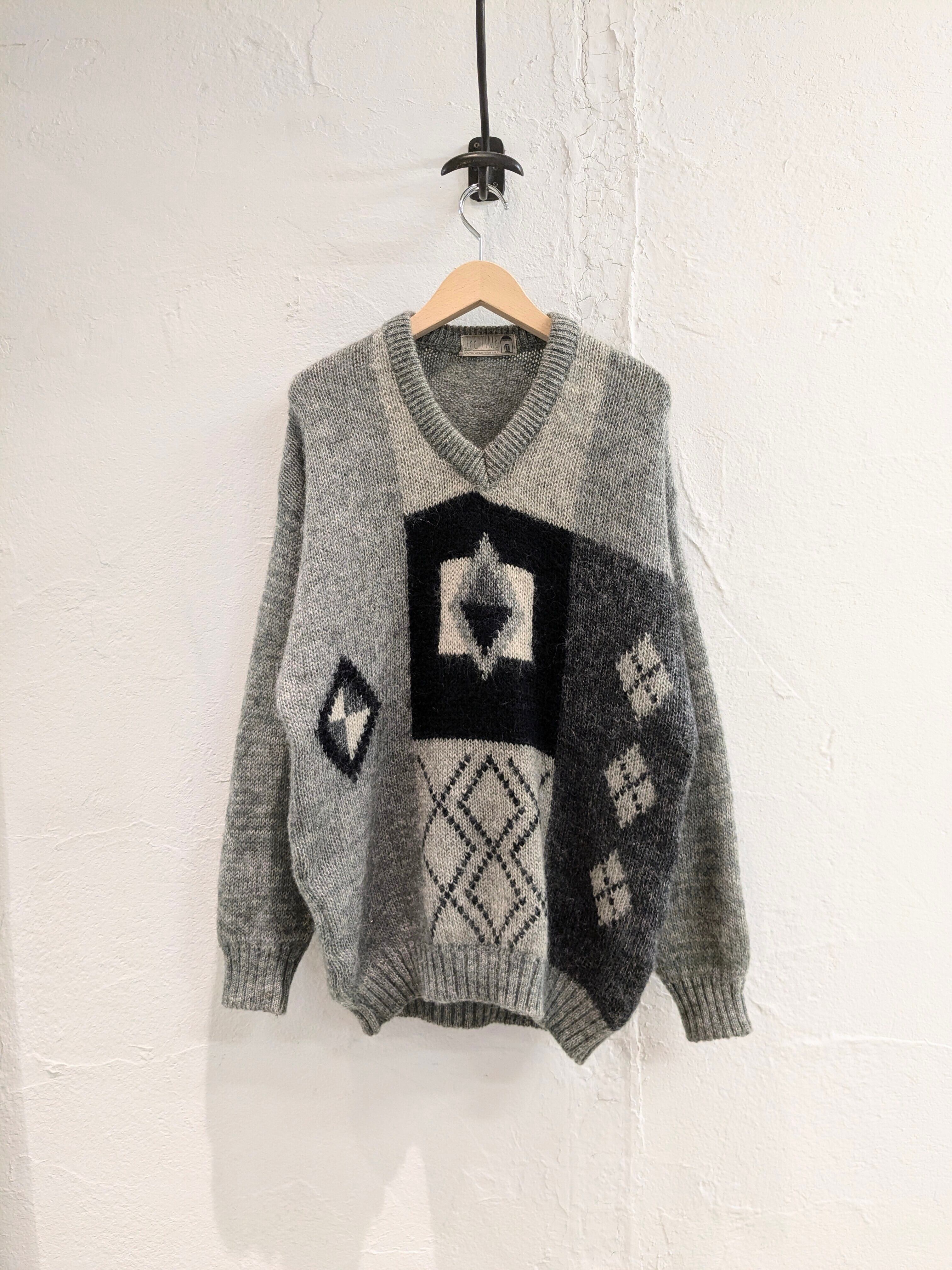 Geometric Pattern Mohair Vneck Knit