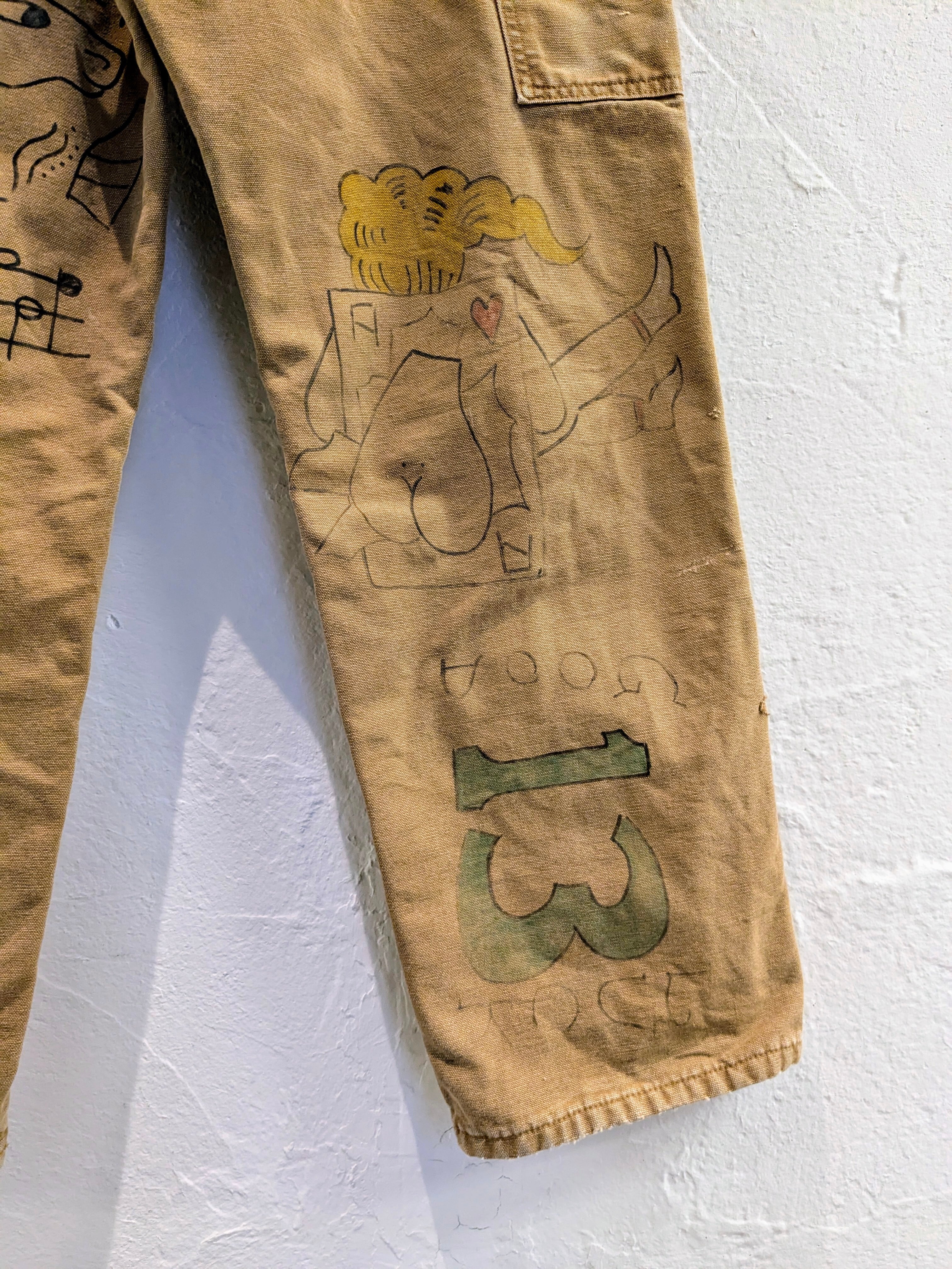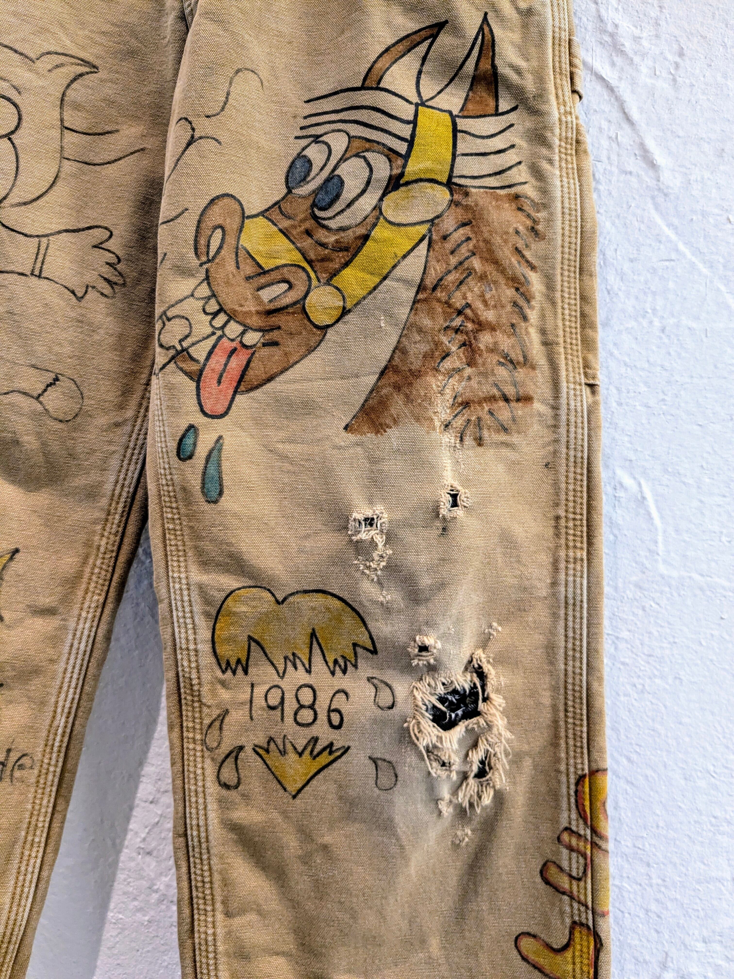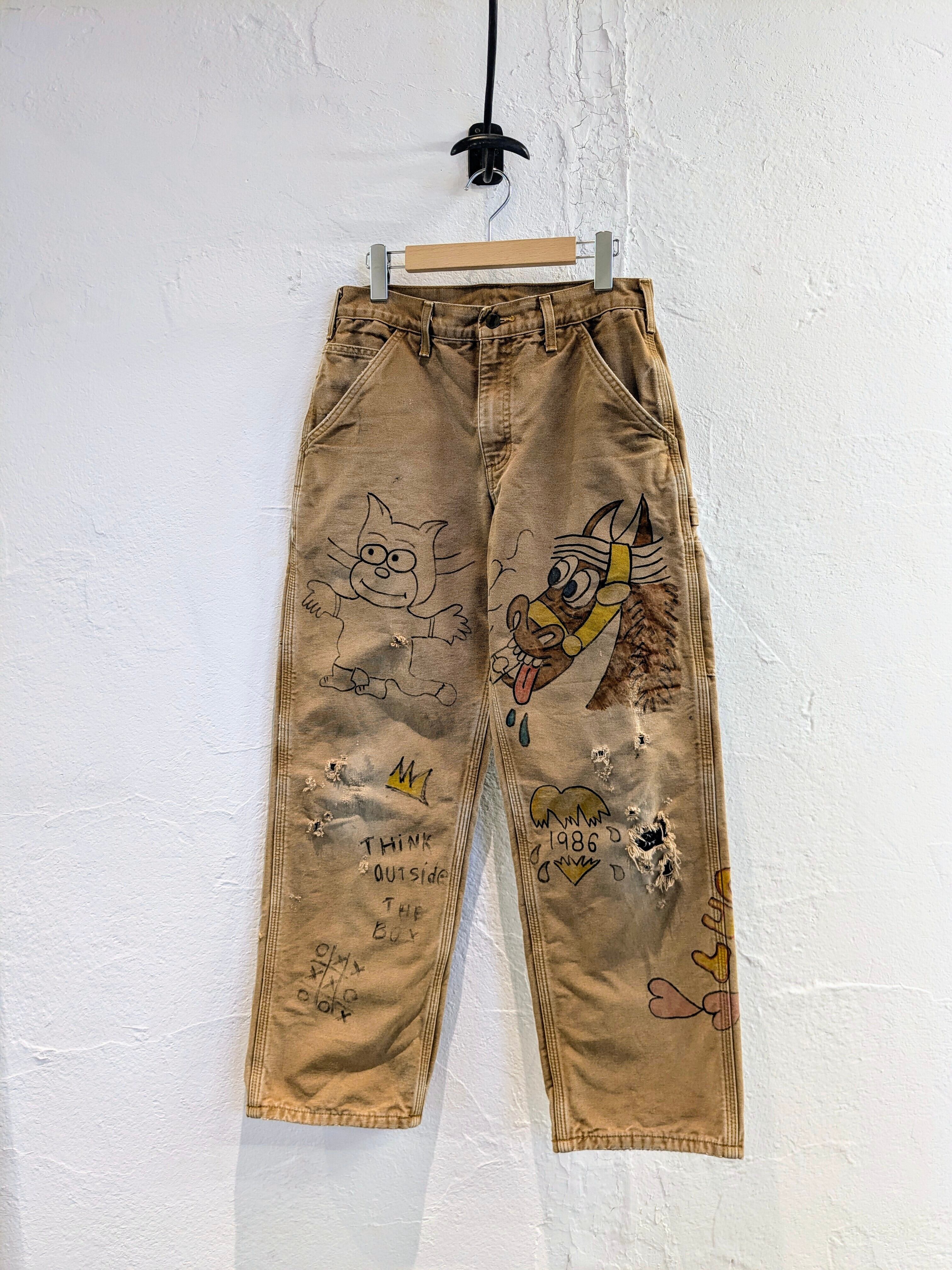 Duck Material Hand Drawing Memorial Style Pants "Carhartt"