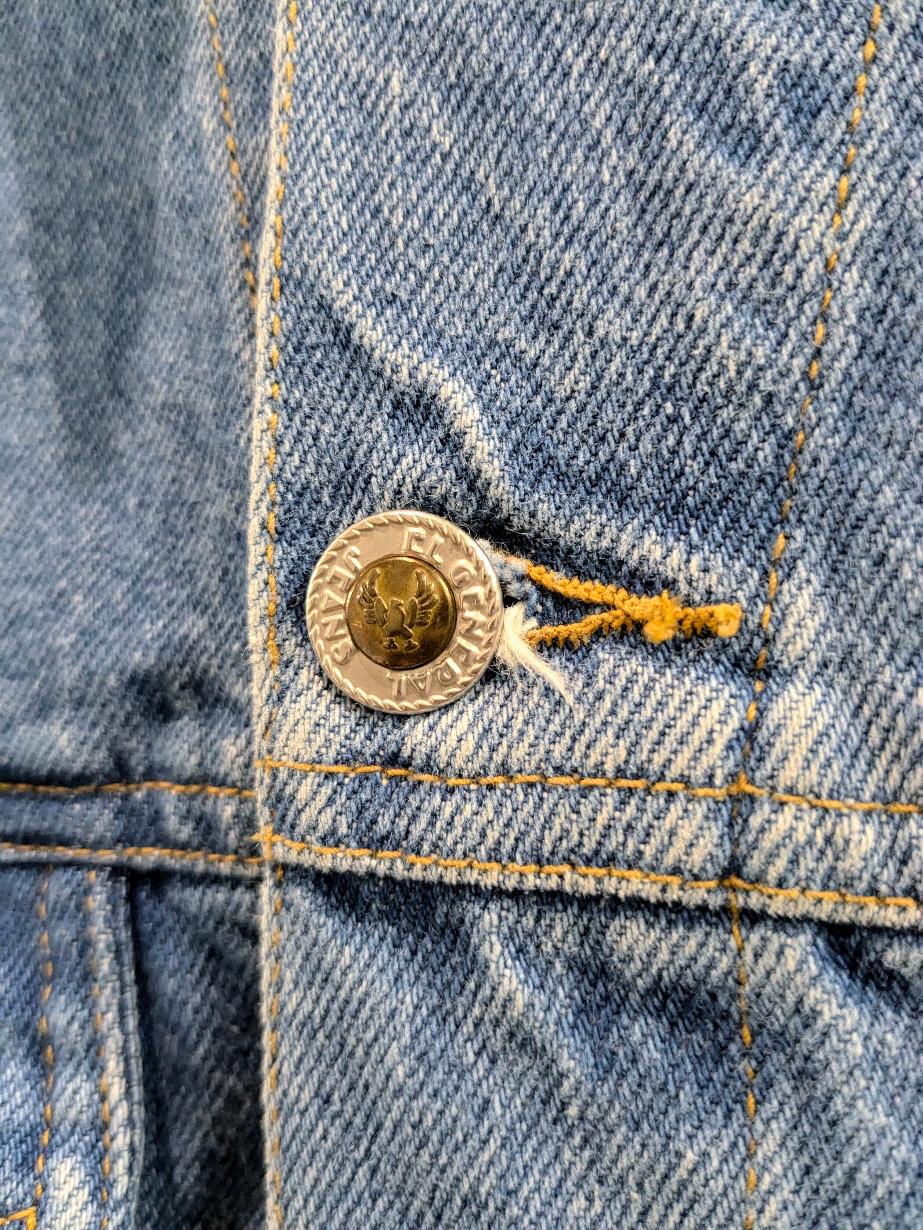 背中に始祖鳥?鳥が刺繍されたデザインのデニムジャケットです。