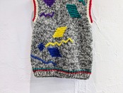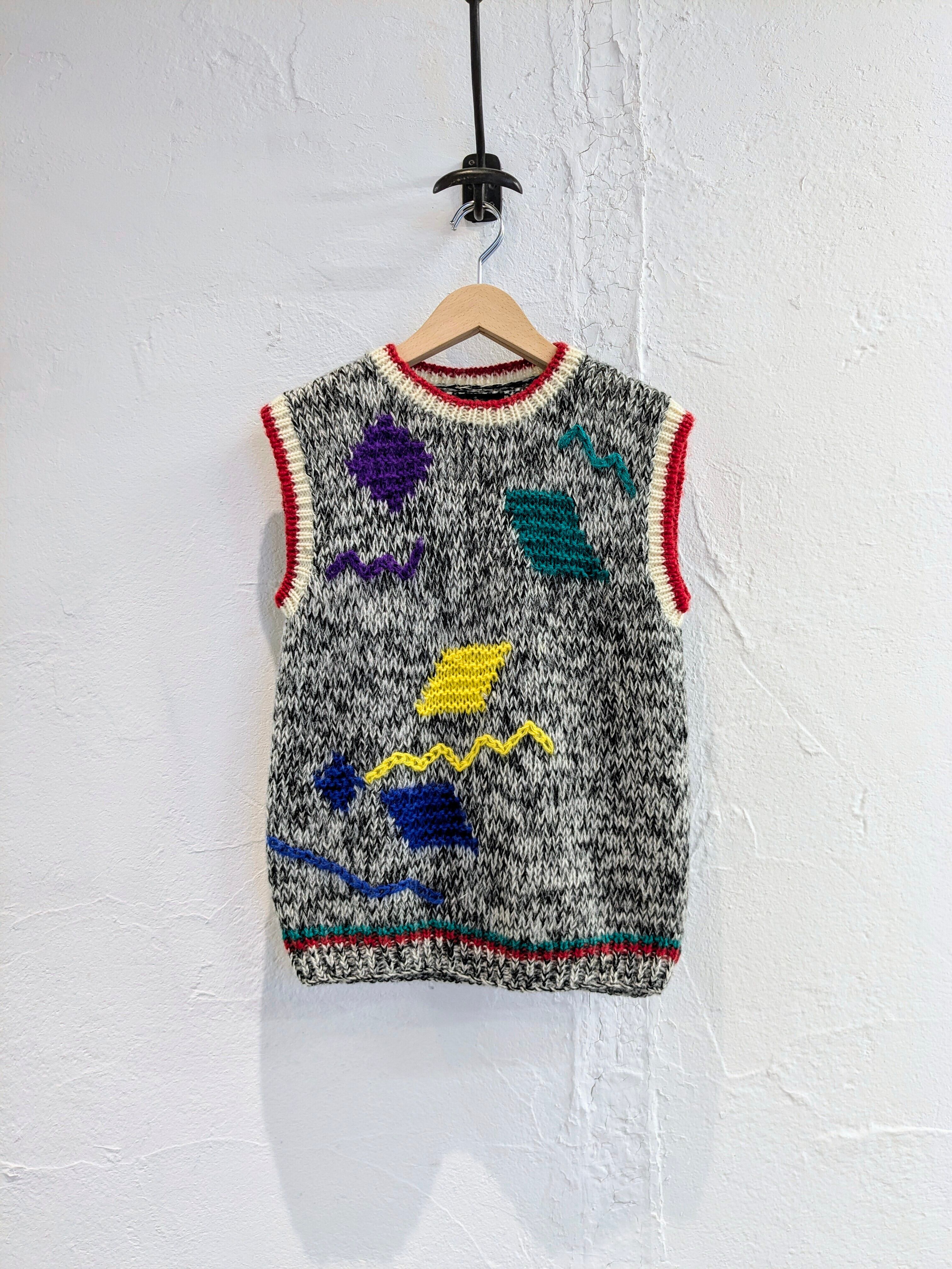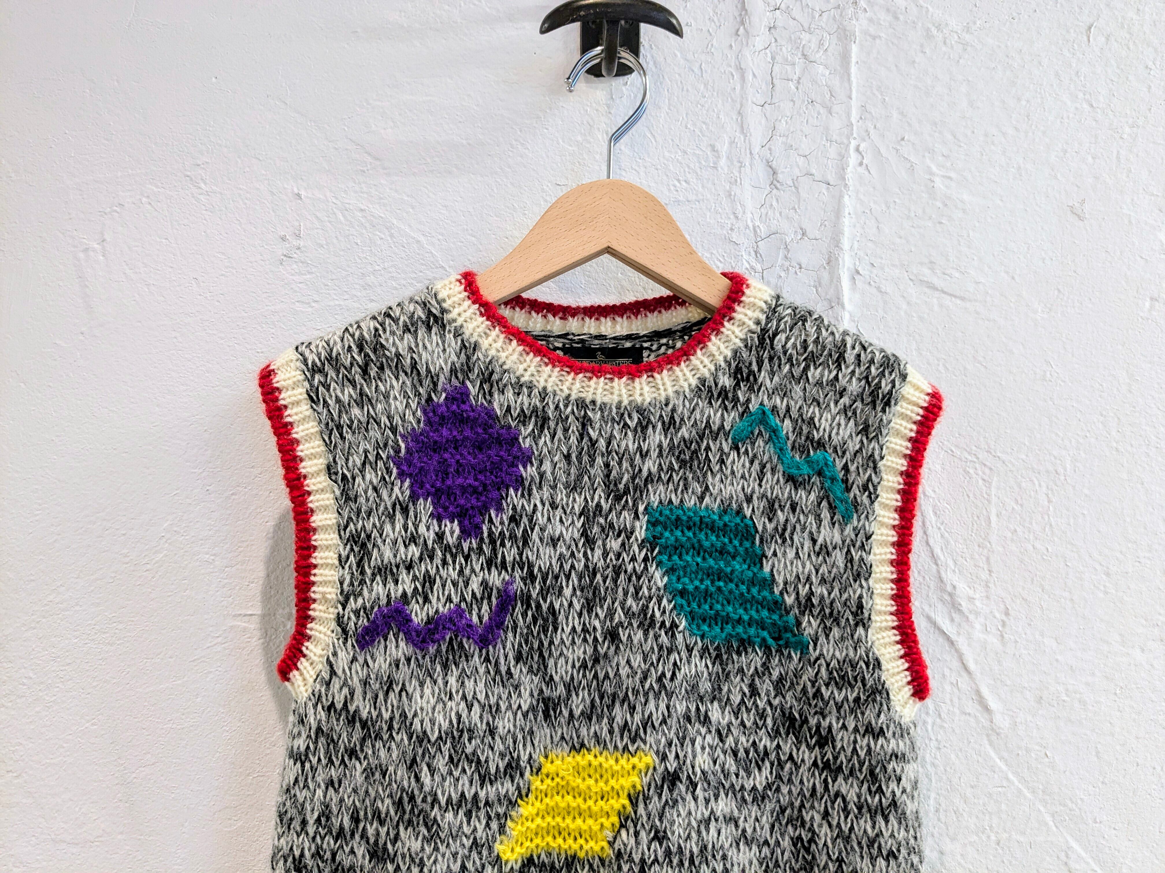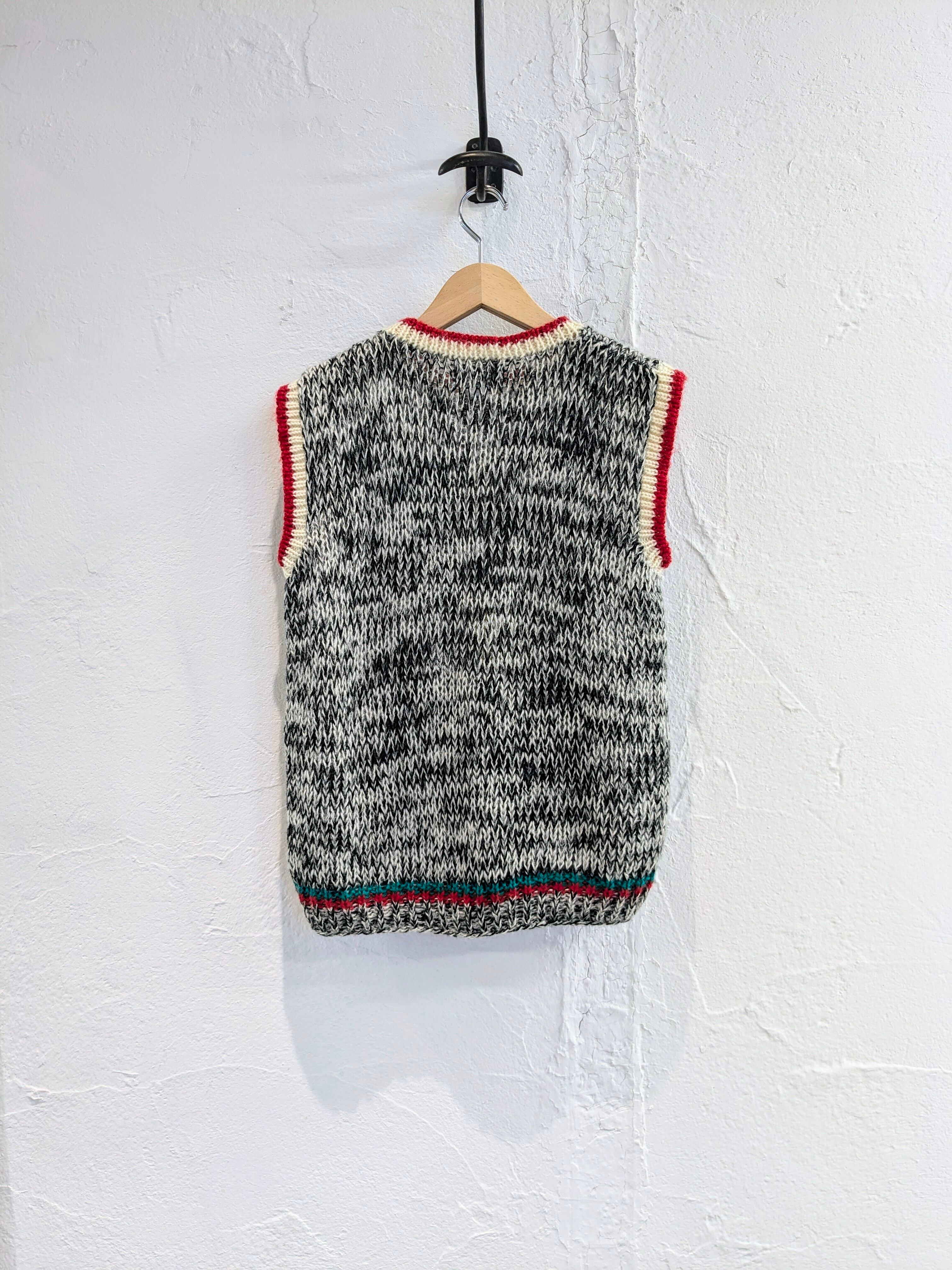 ハンドステッチでデザインされたかのようなニットベスト。襟、袖口の切替、無造作に入ったステッチデザインが特徴的な一着。インナーに着ても着映えすること間違いなしです。
