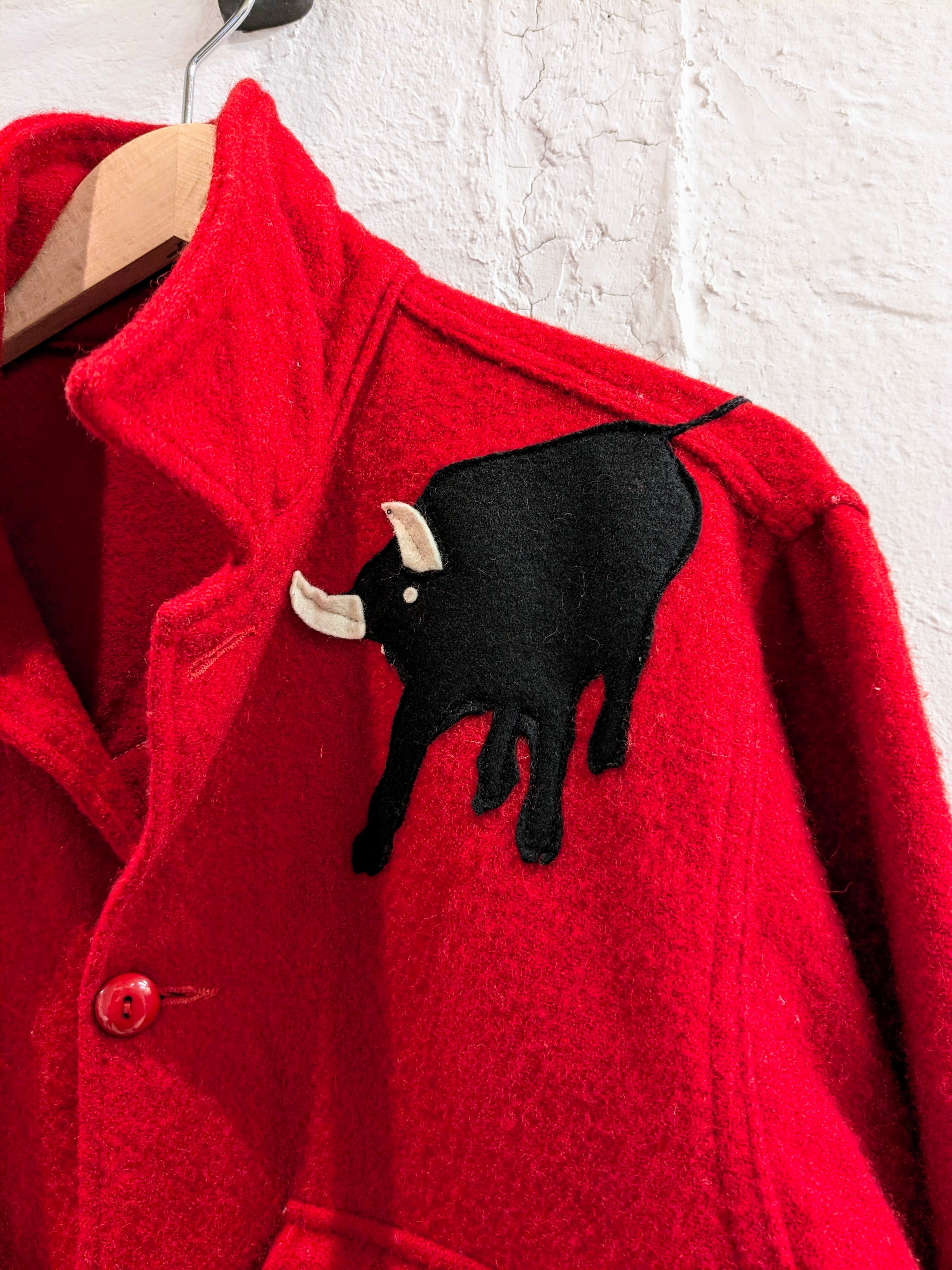 フロントのバッファローのパッチ、背中のワッペンが特徴的な一着。とても可愛いデザインでより一点モノ感があります。