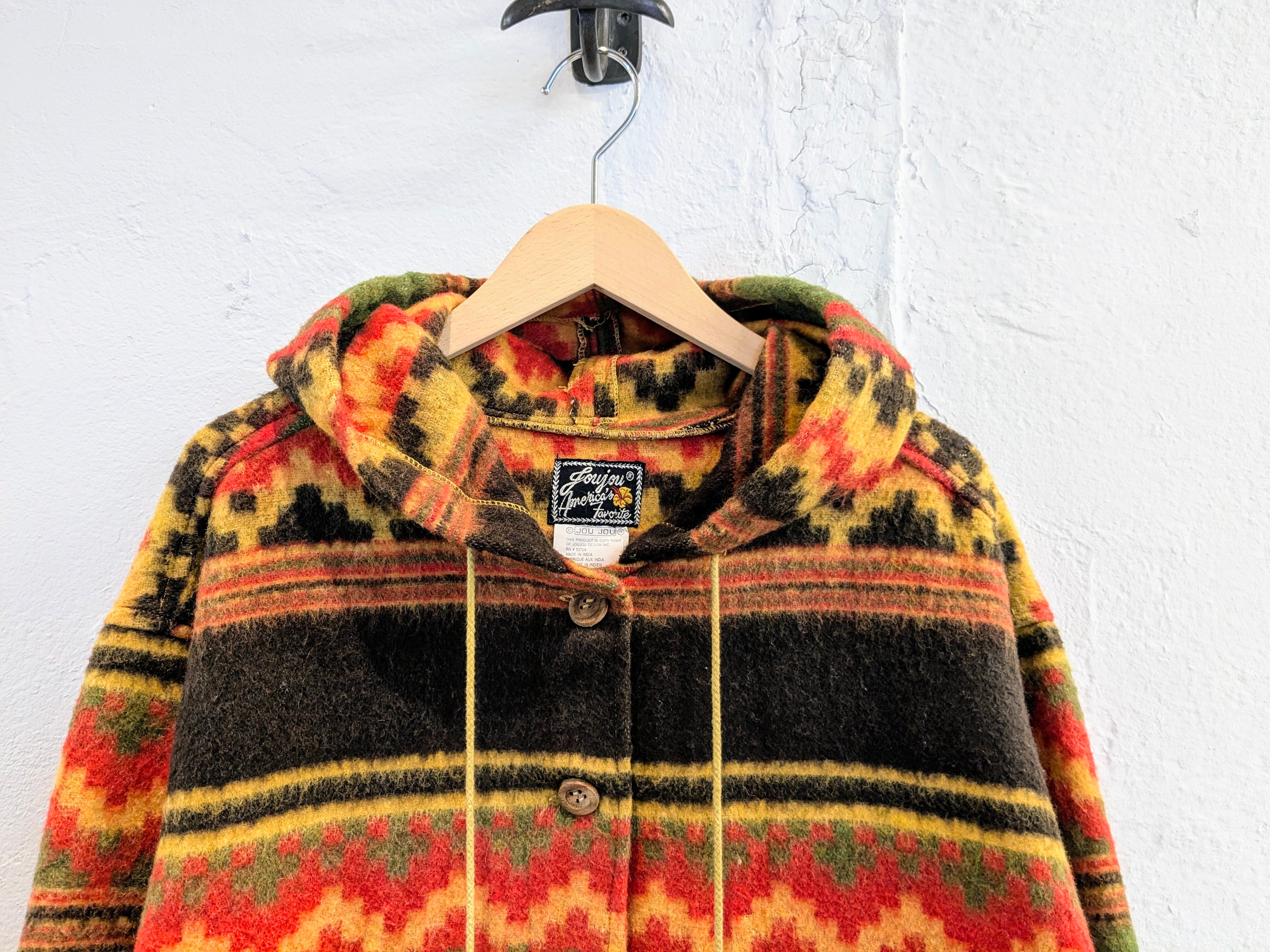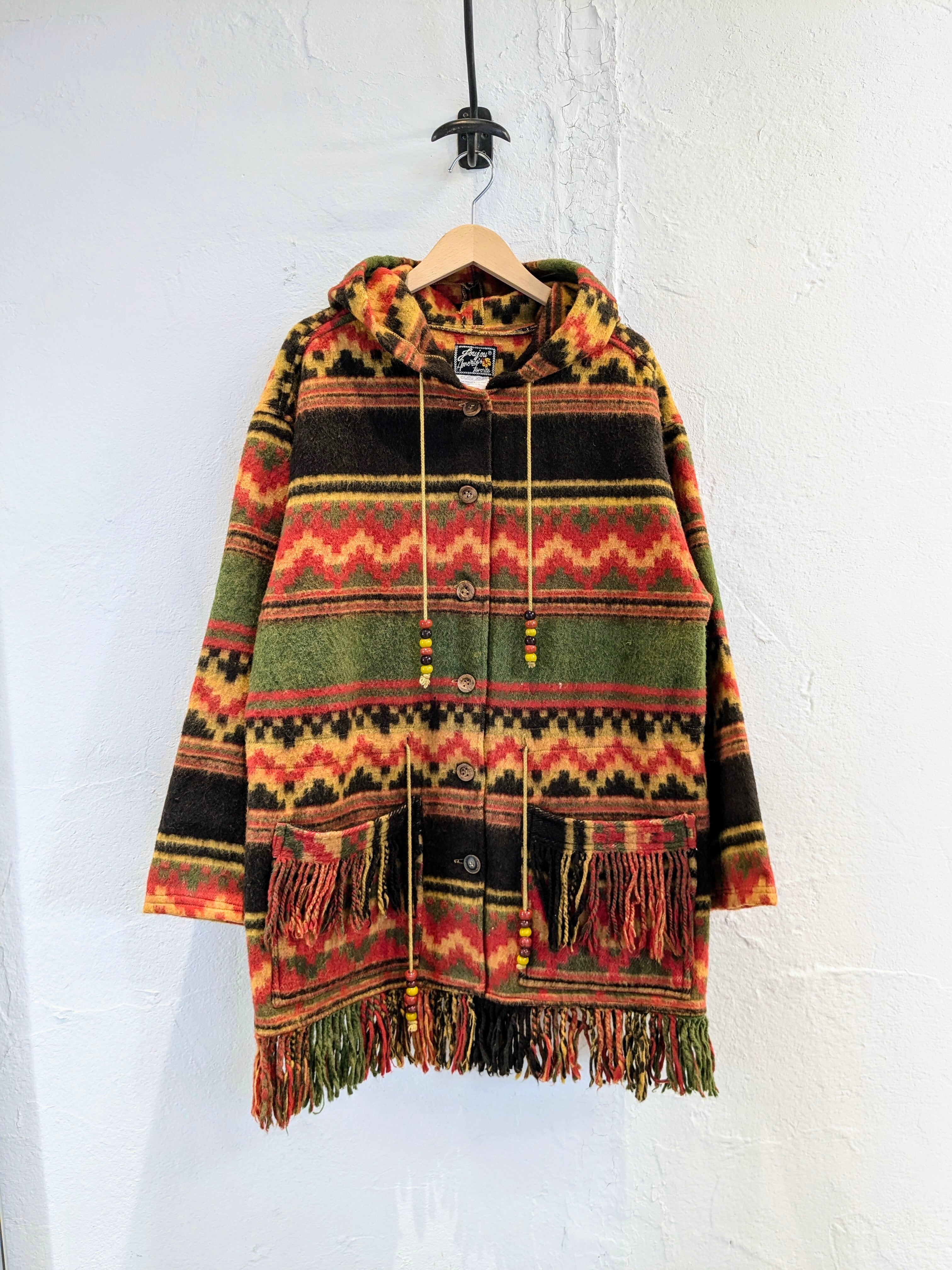 Ethnic Design Wool Hoodie Coat
