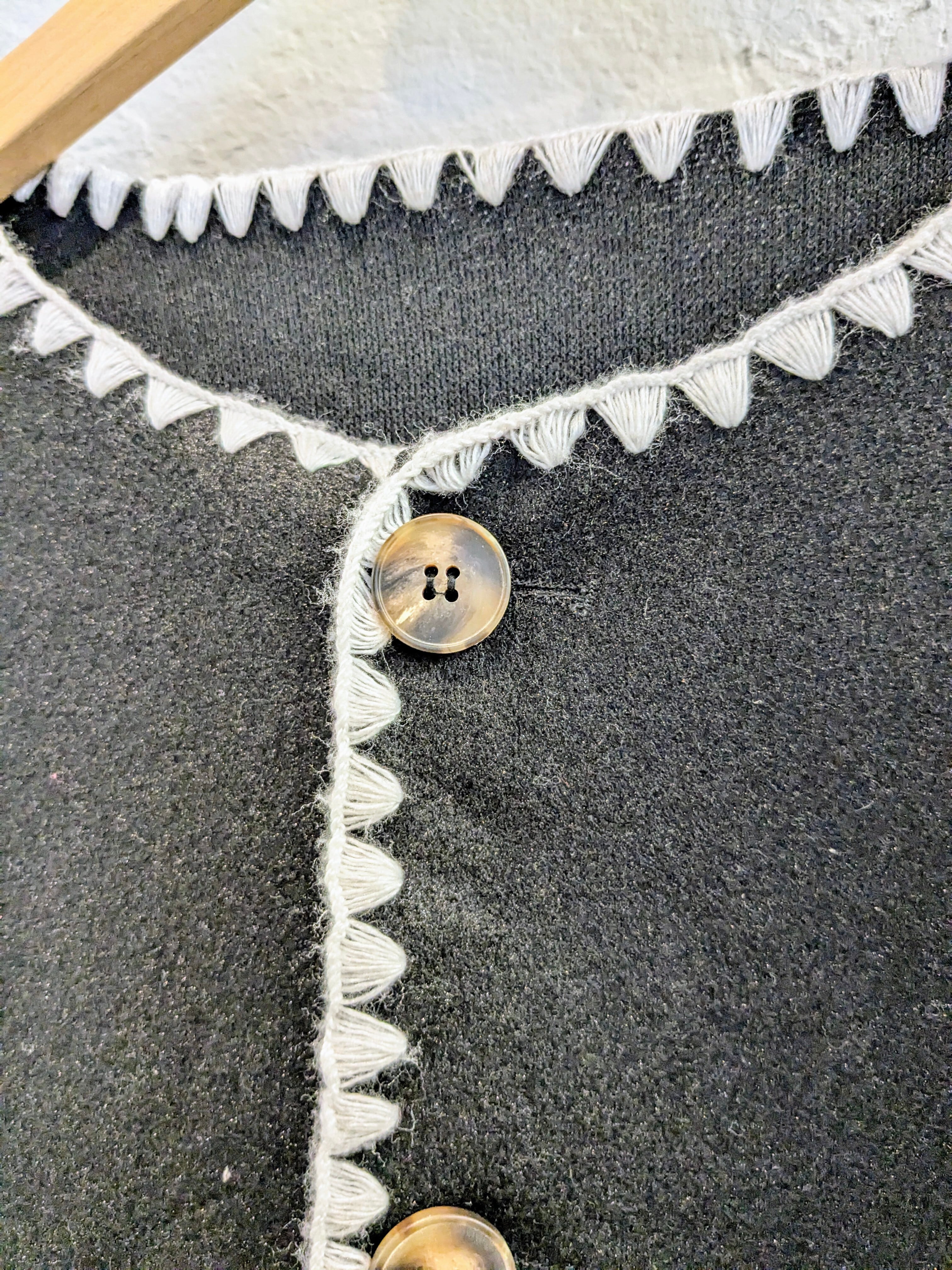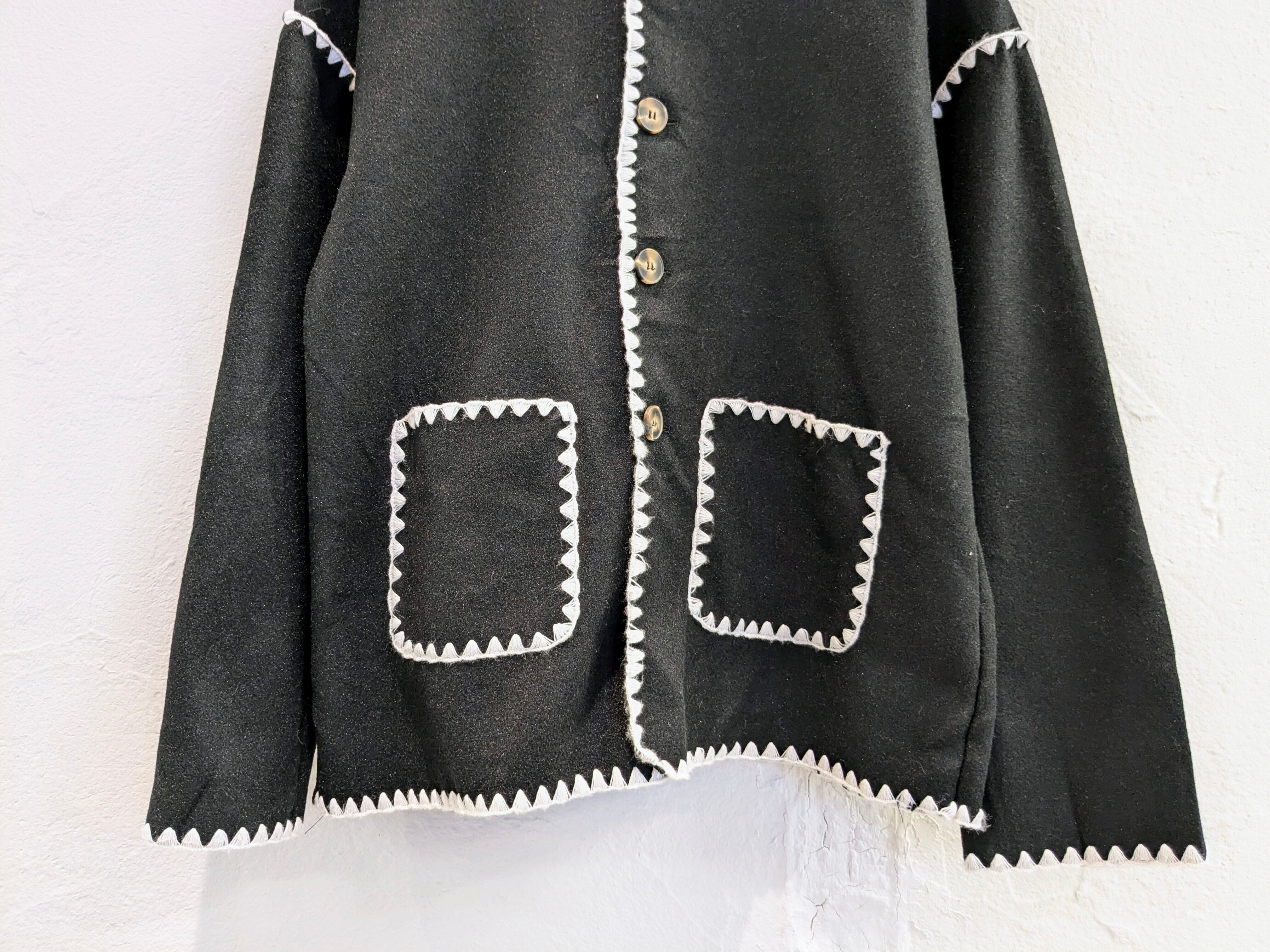 ステッチが特徴的なノーカラージャケット。