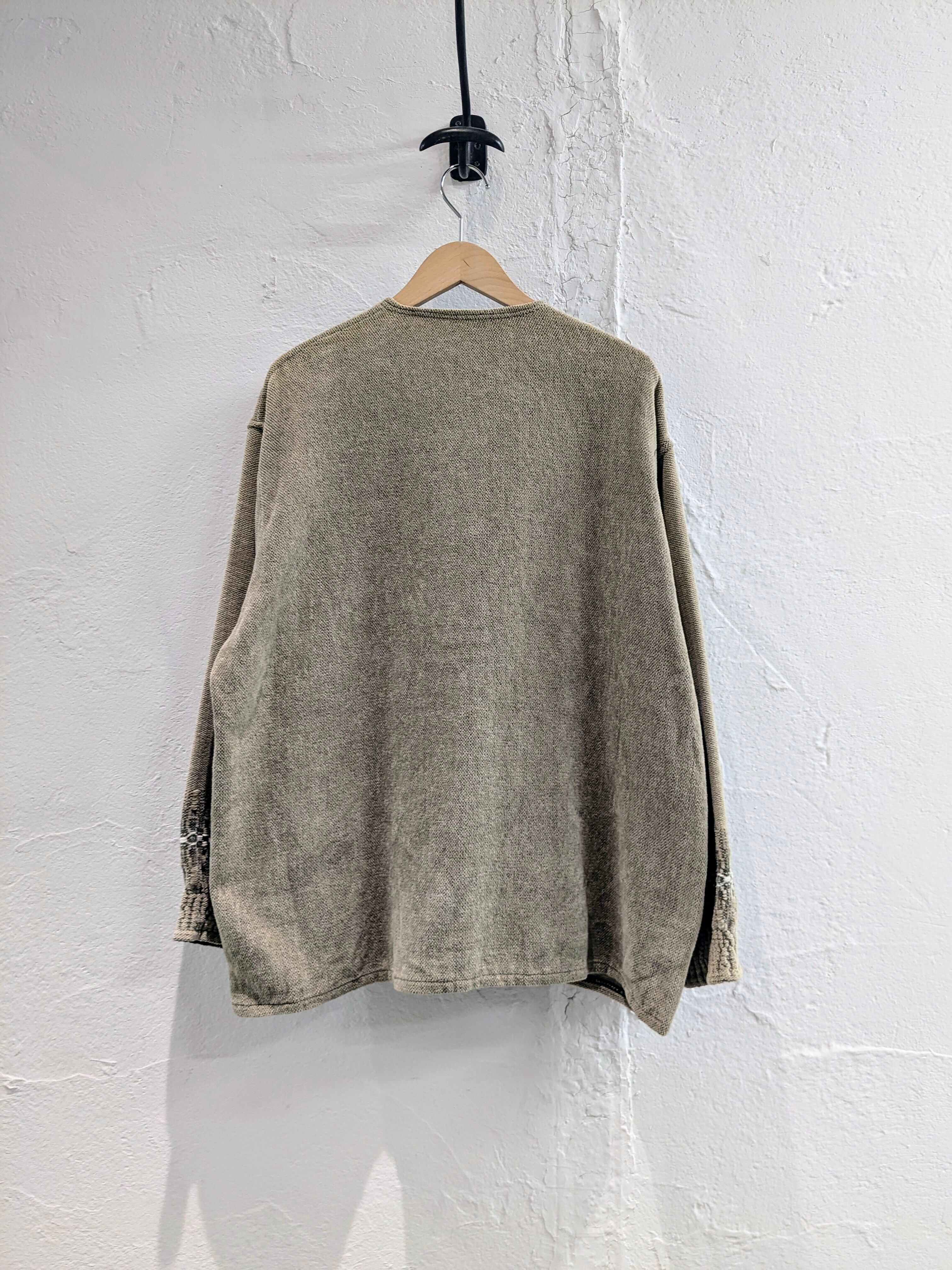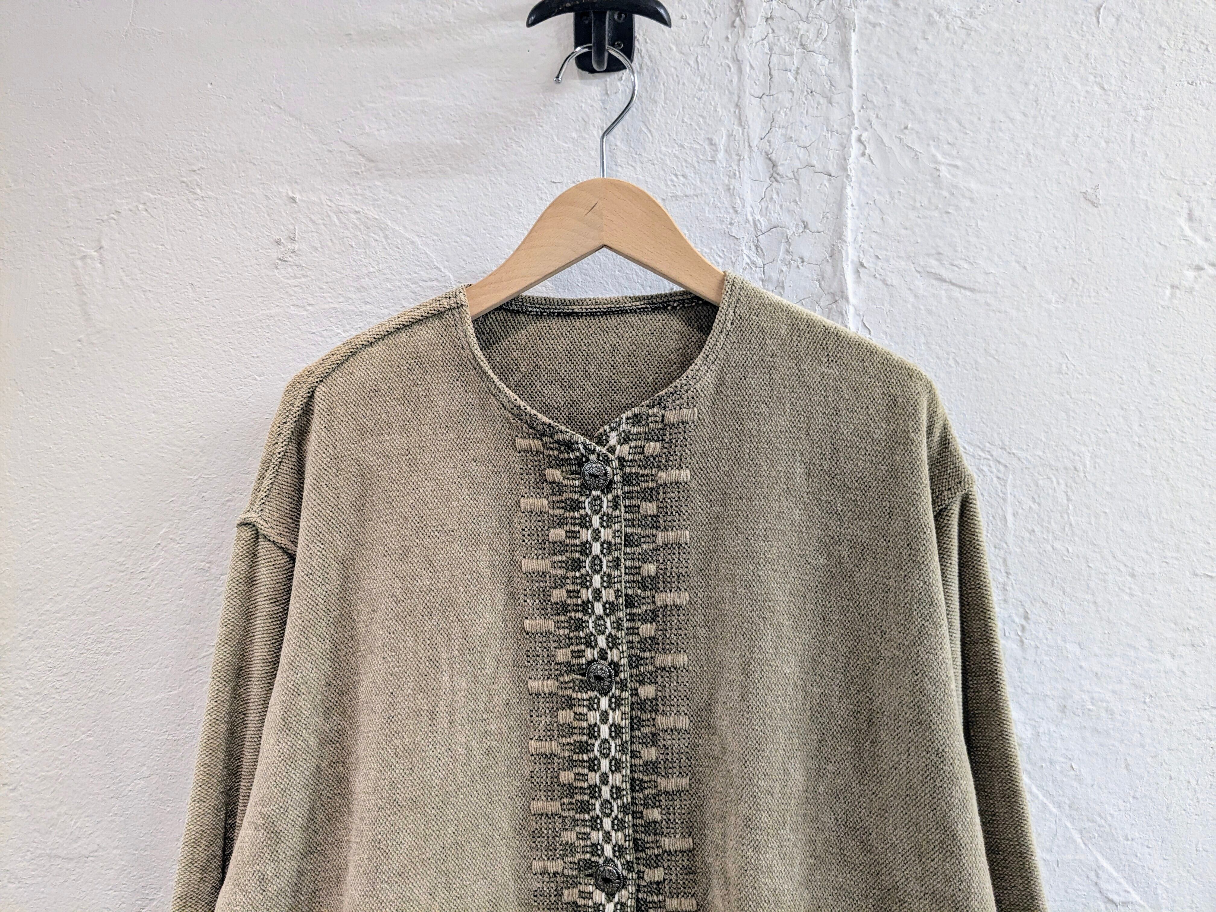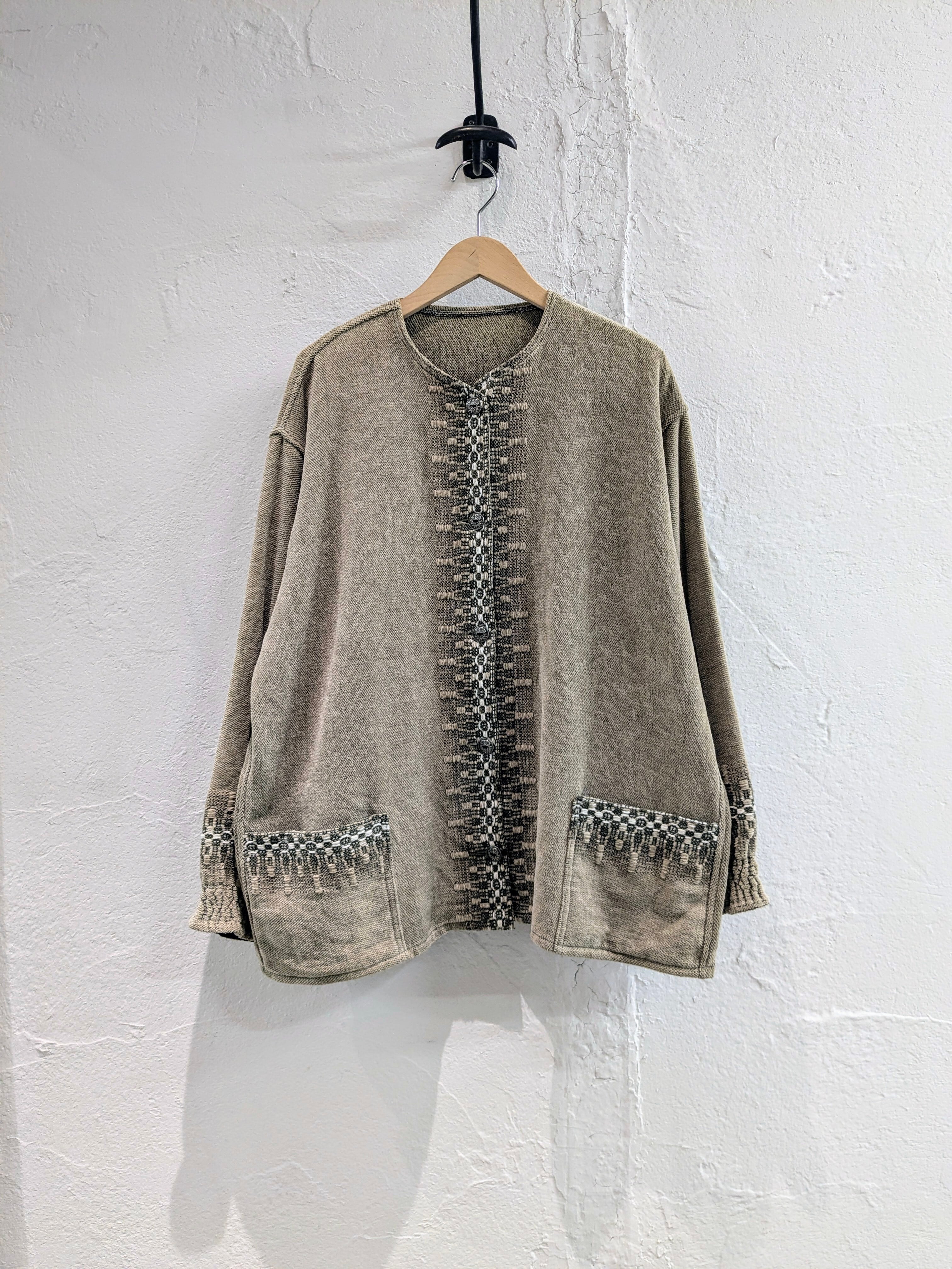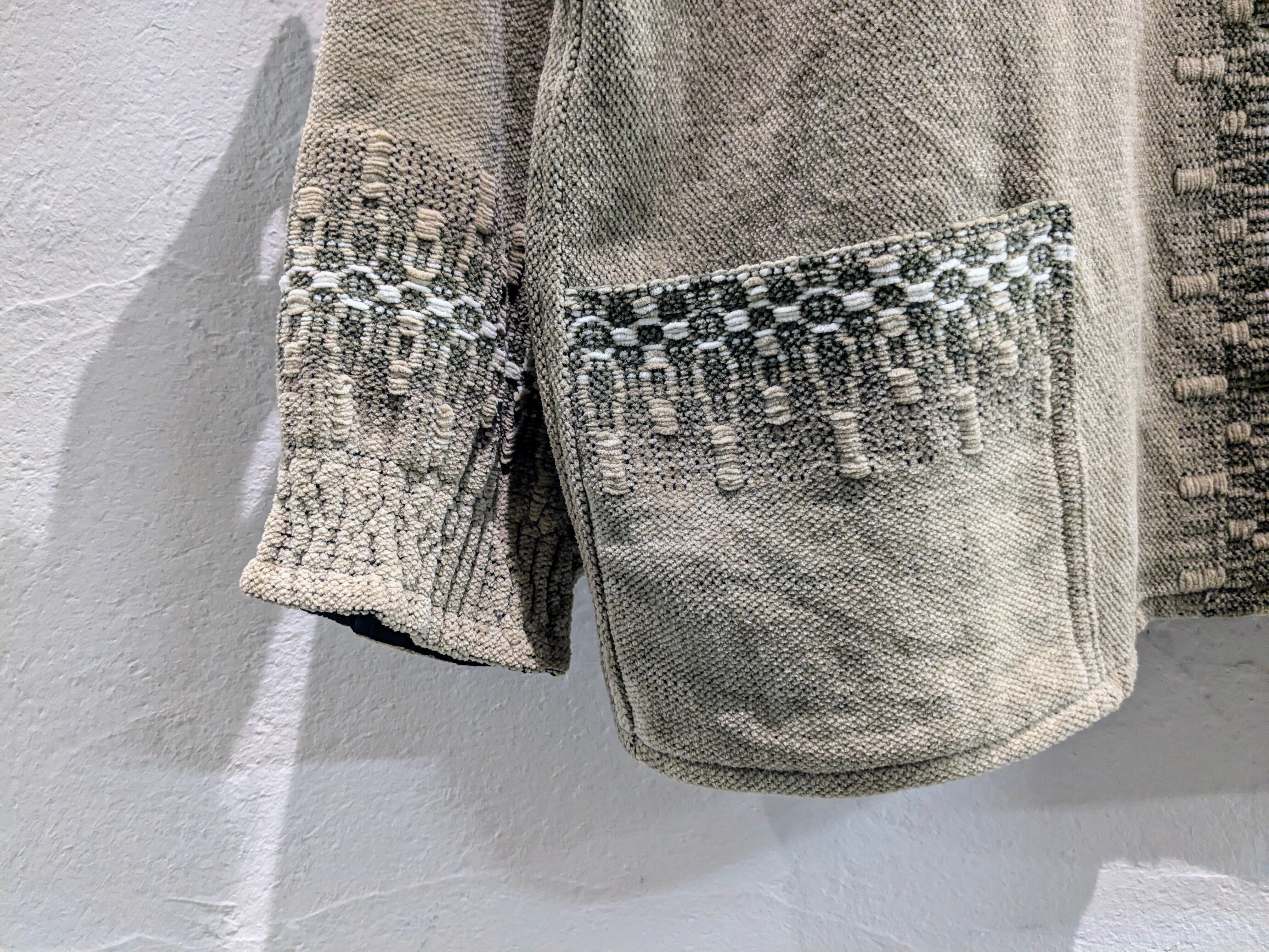要所に何柄と言っていいのか分かりませんが、織りで柄が入っています。パイルニットのような柔らかい素材になっており、とても着心地抜群です。ボタンもコンチョボタンを使用しており、細部にまでこだわり抜いた一着。