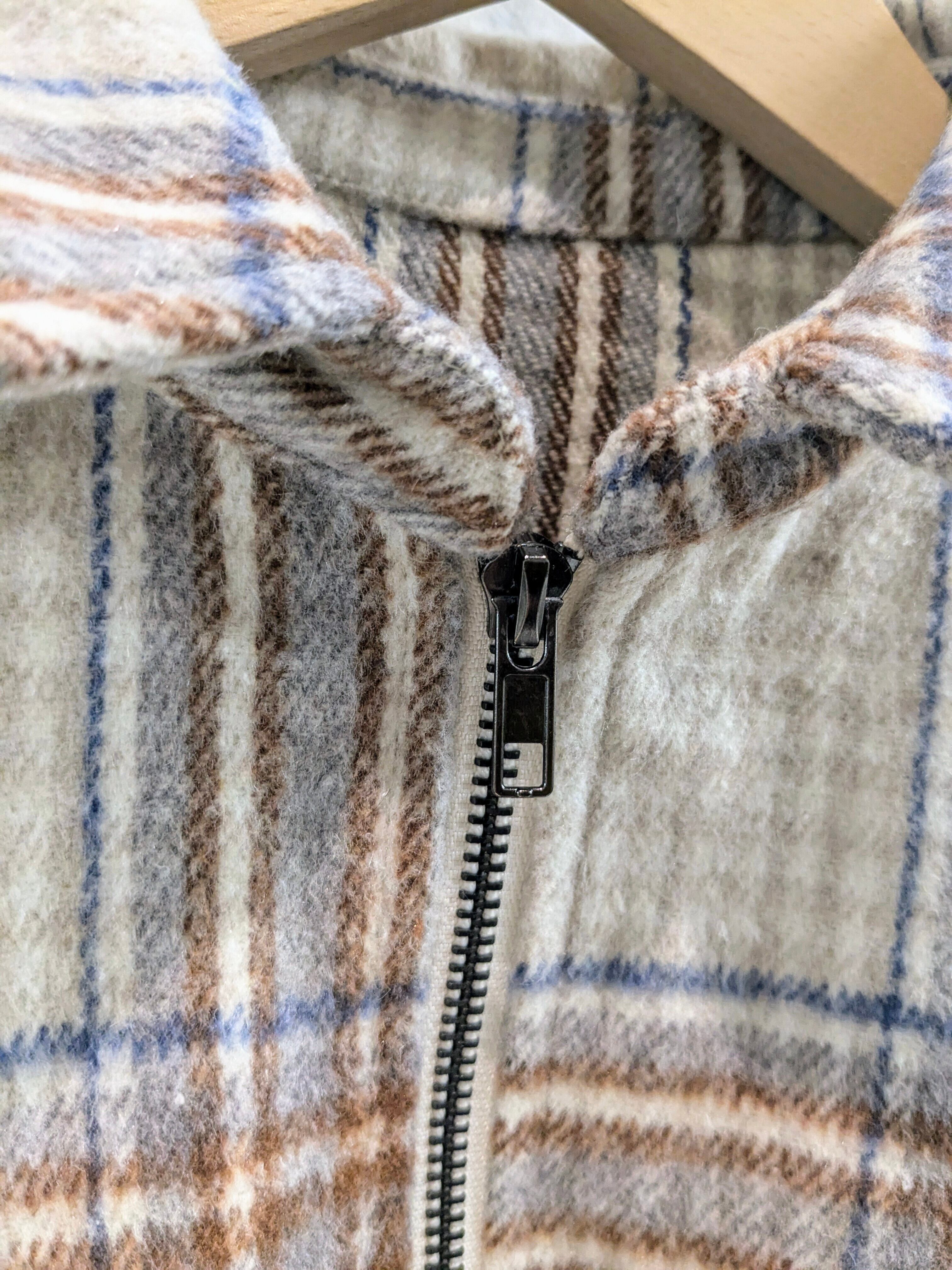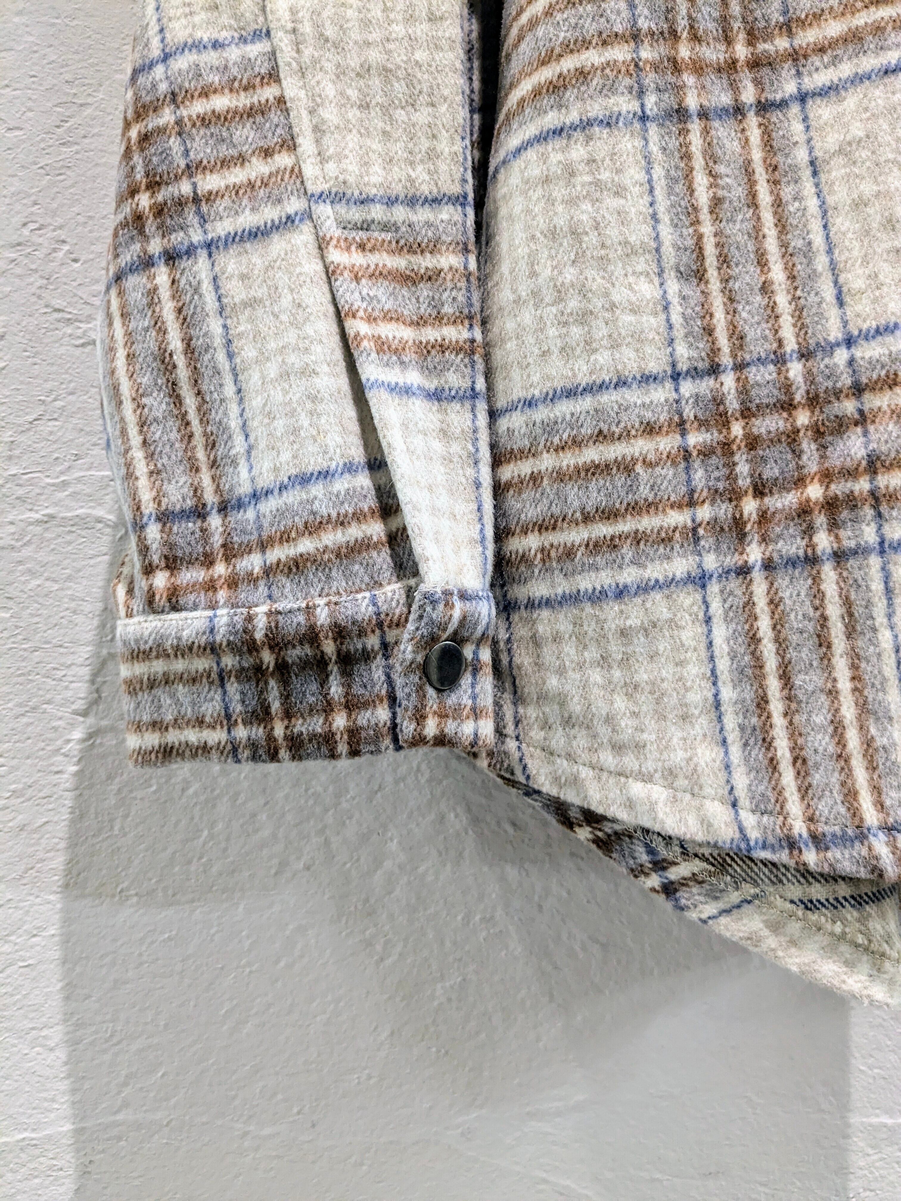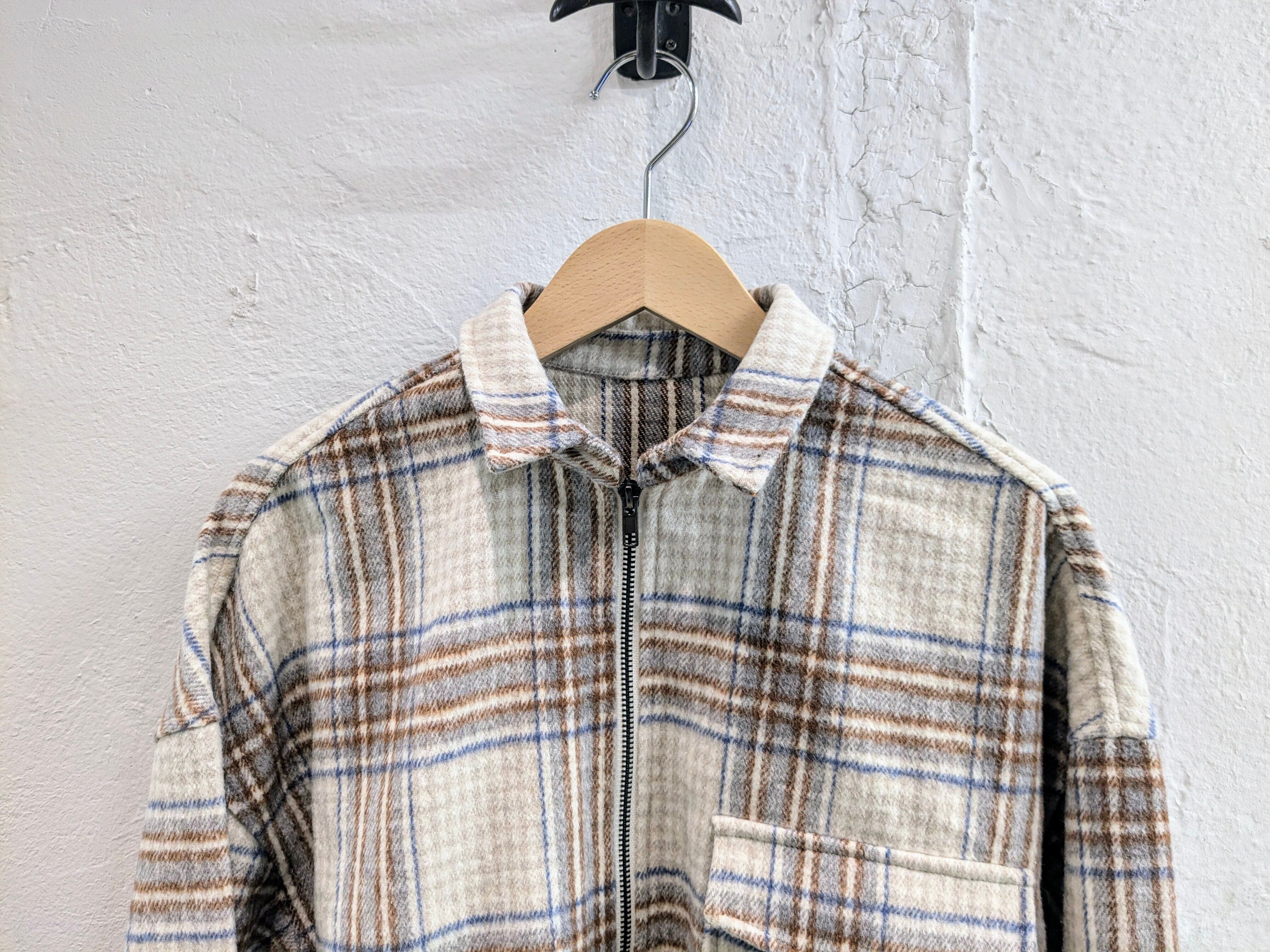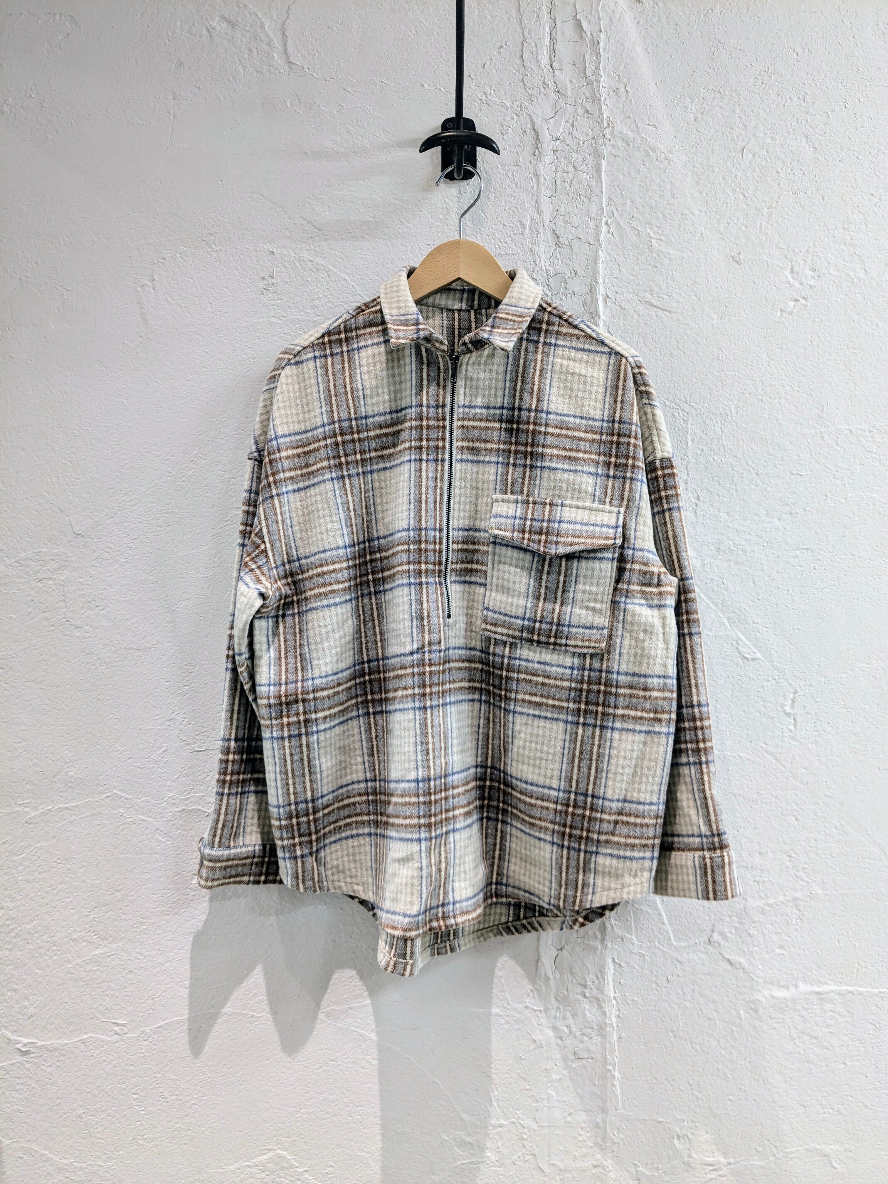 起毛素材のハーフジップデザインのチェックシャツ。