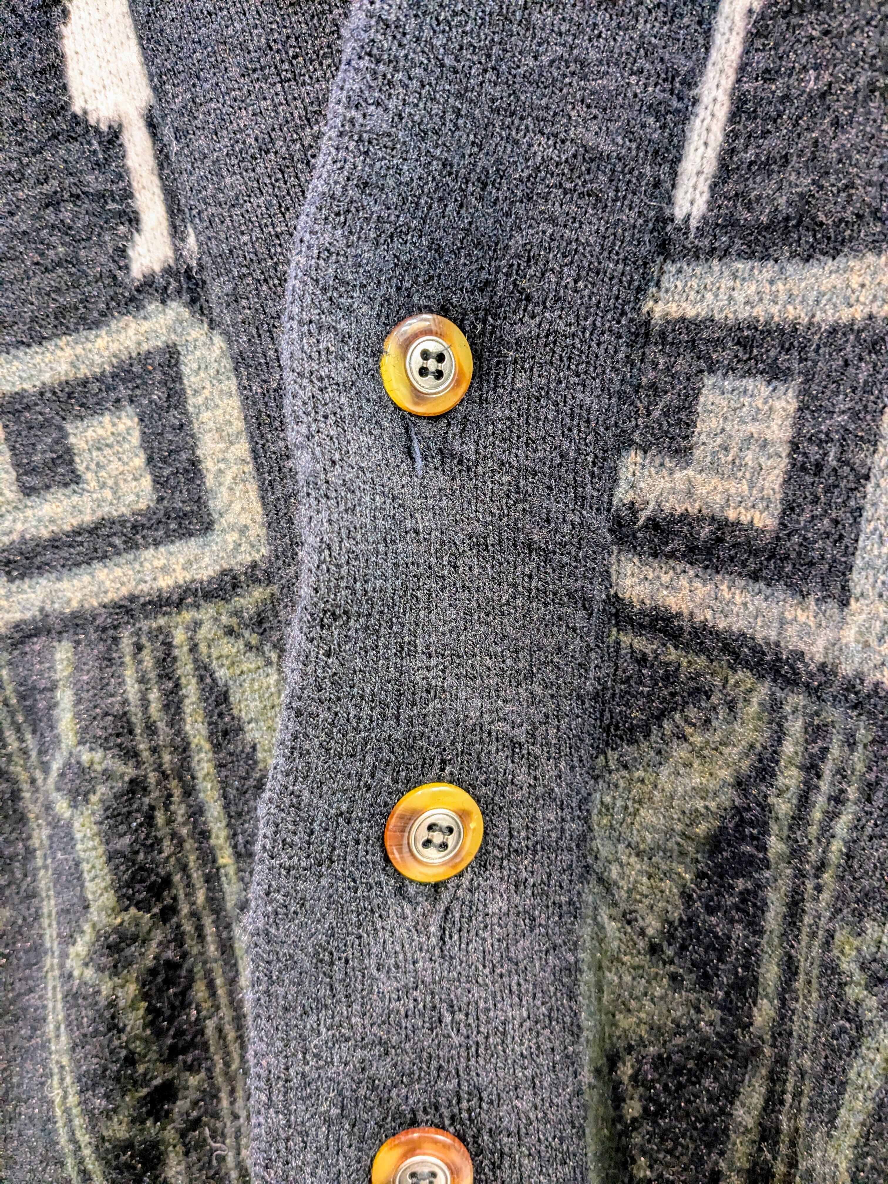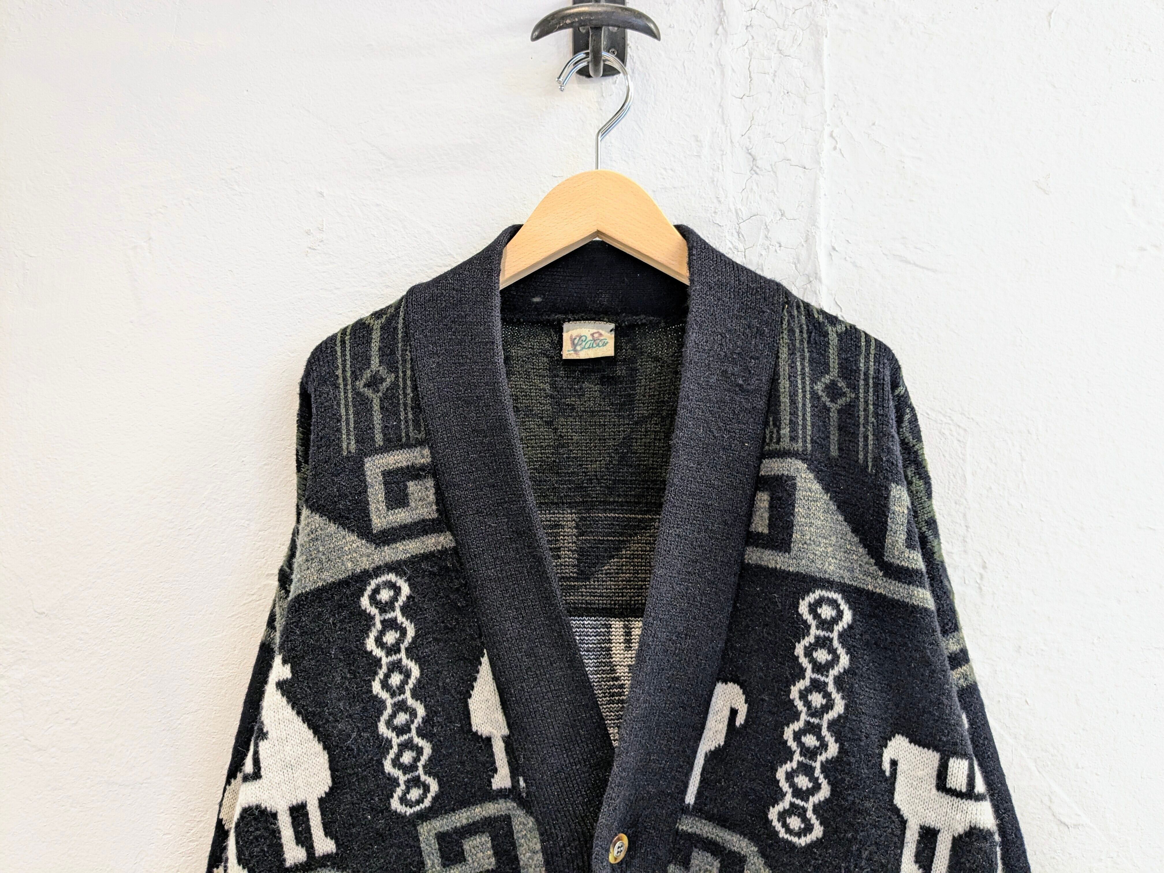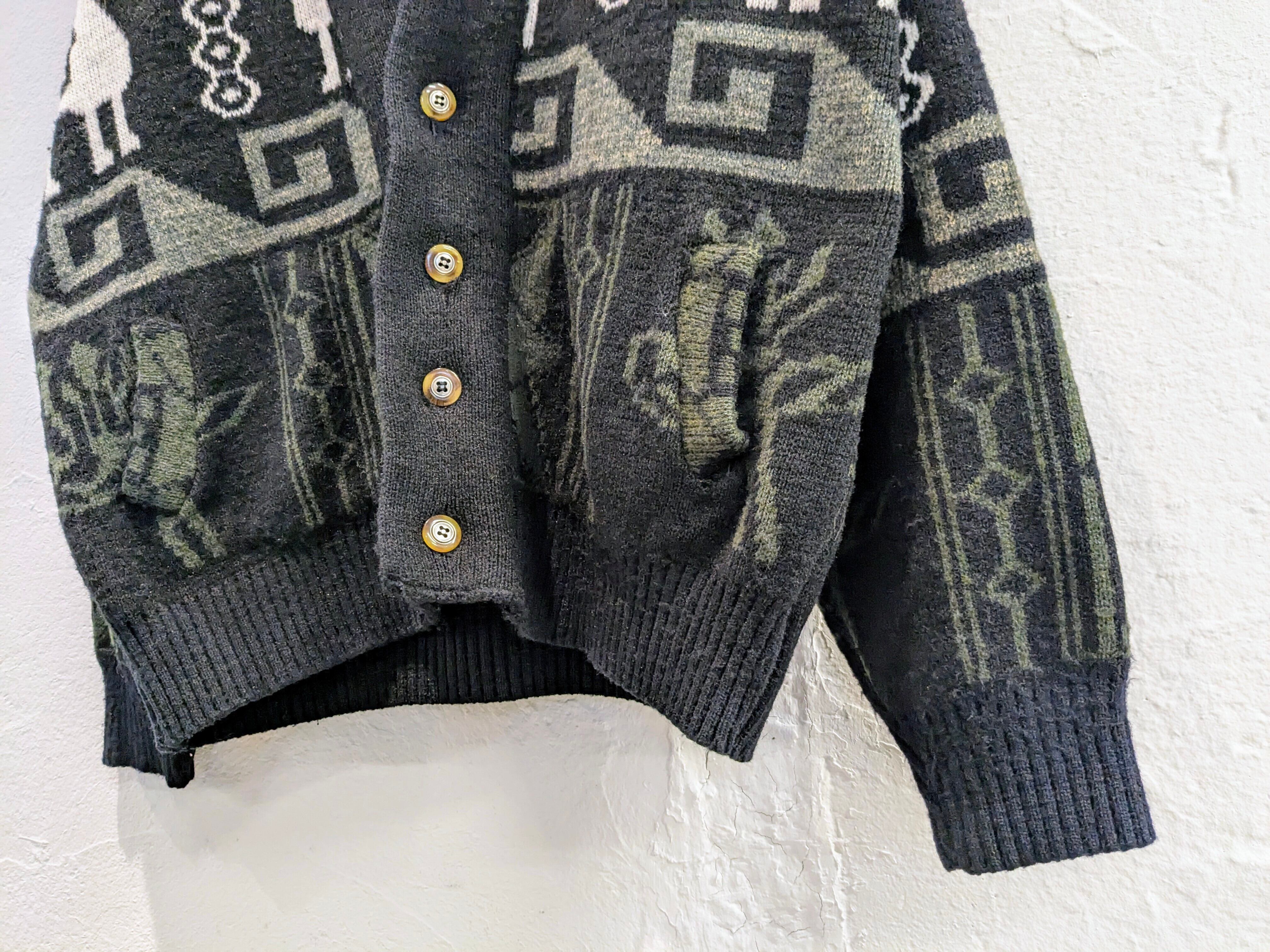 アルパカ?柄がとても可愛いデザインとなっています。生地は肉厚でニットアウターのような感覚で着ていただけます。アームホールもゆったりとしているので、インナーも選ばずスタイリングができます。毛羽立ちがあり。