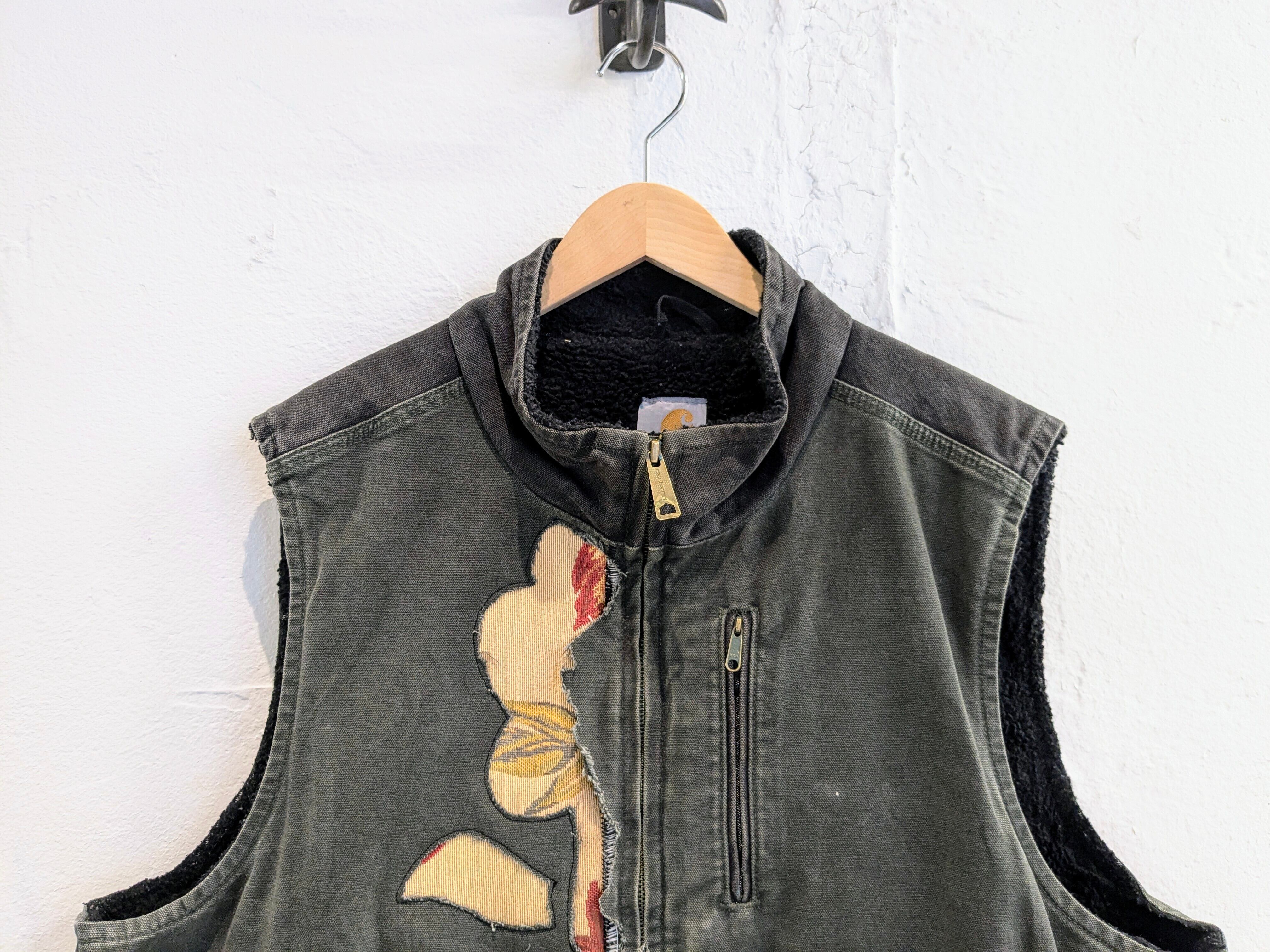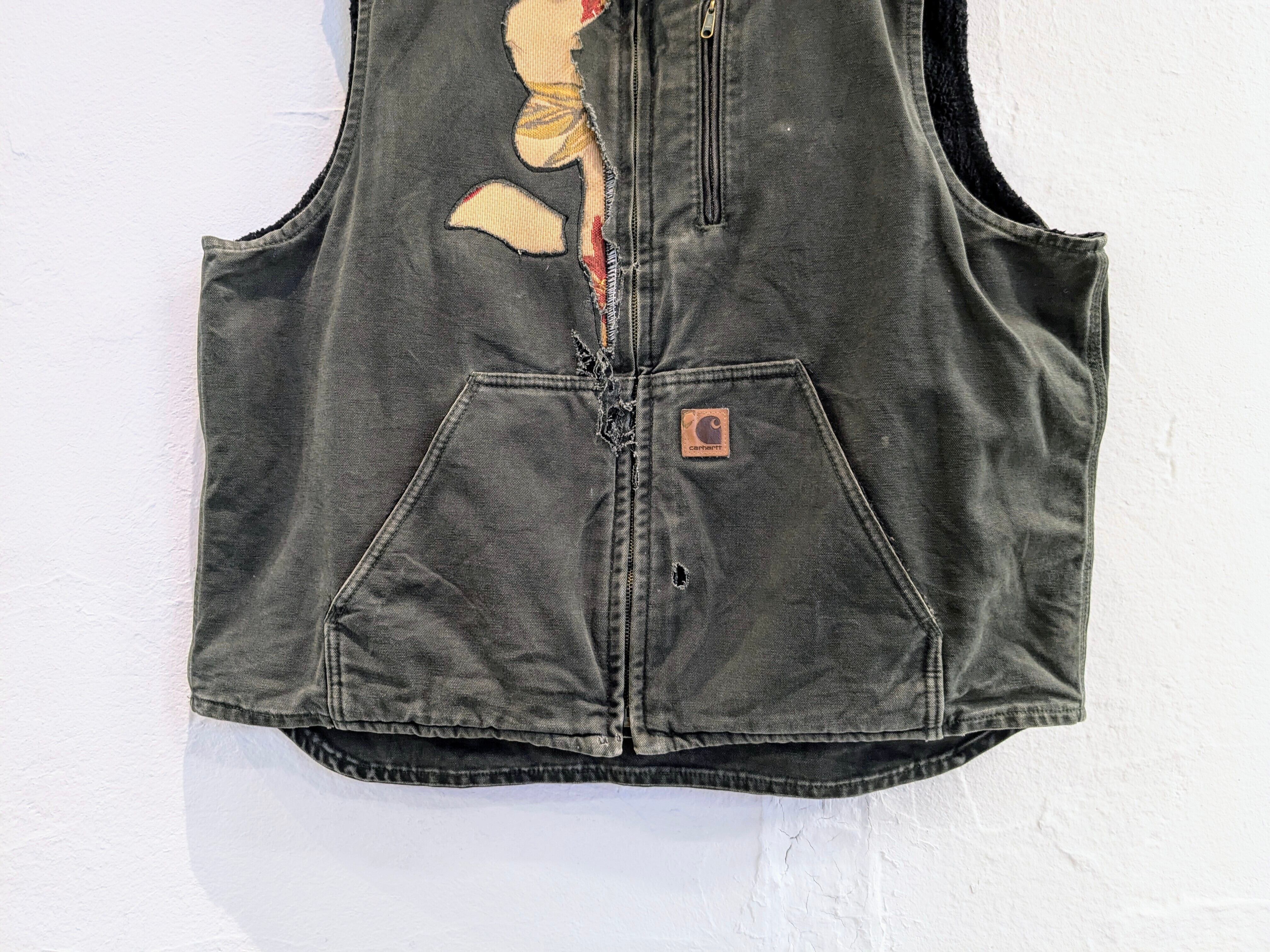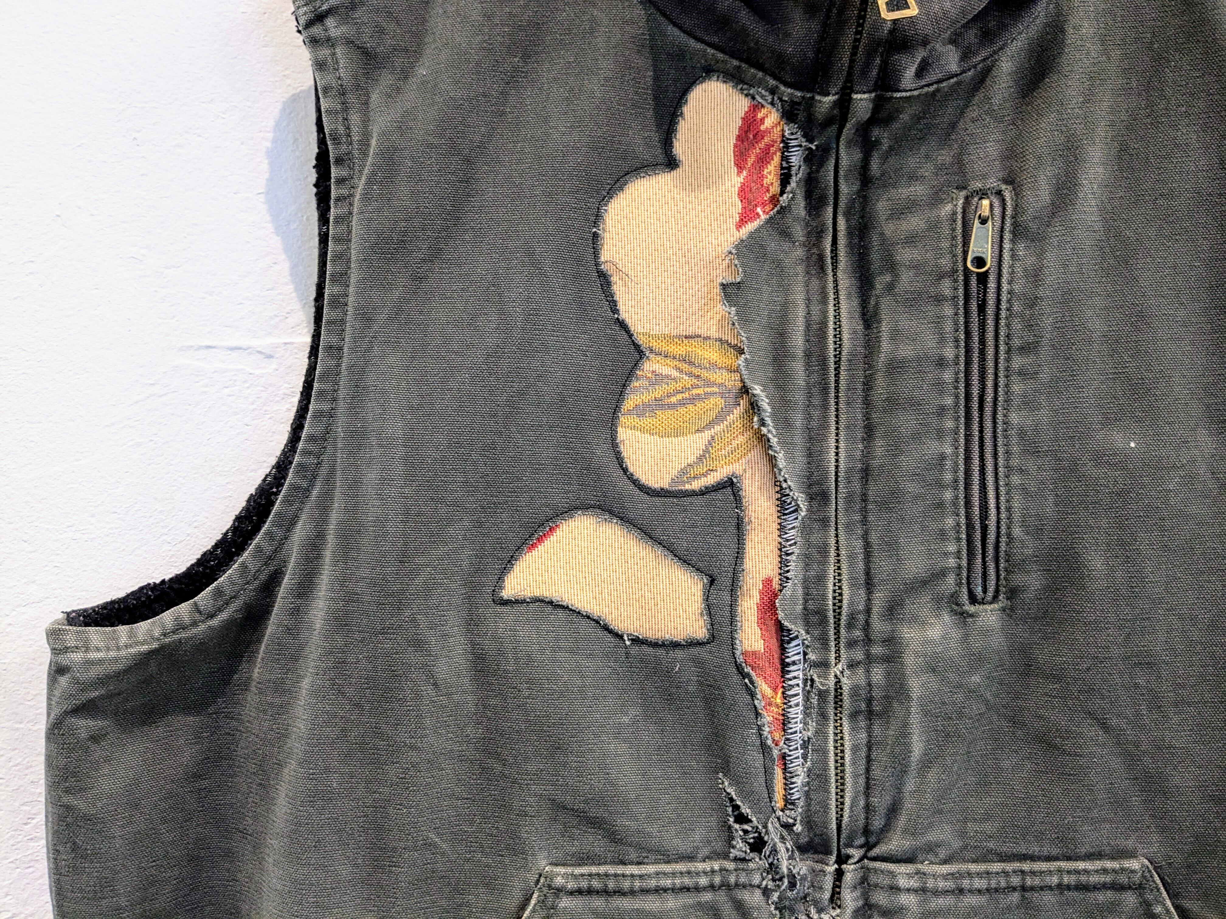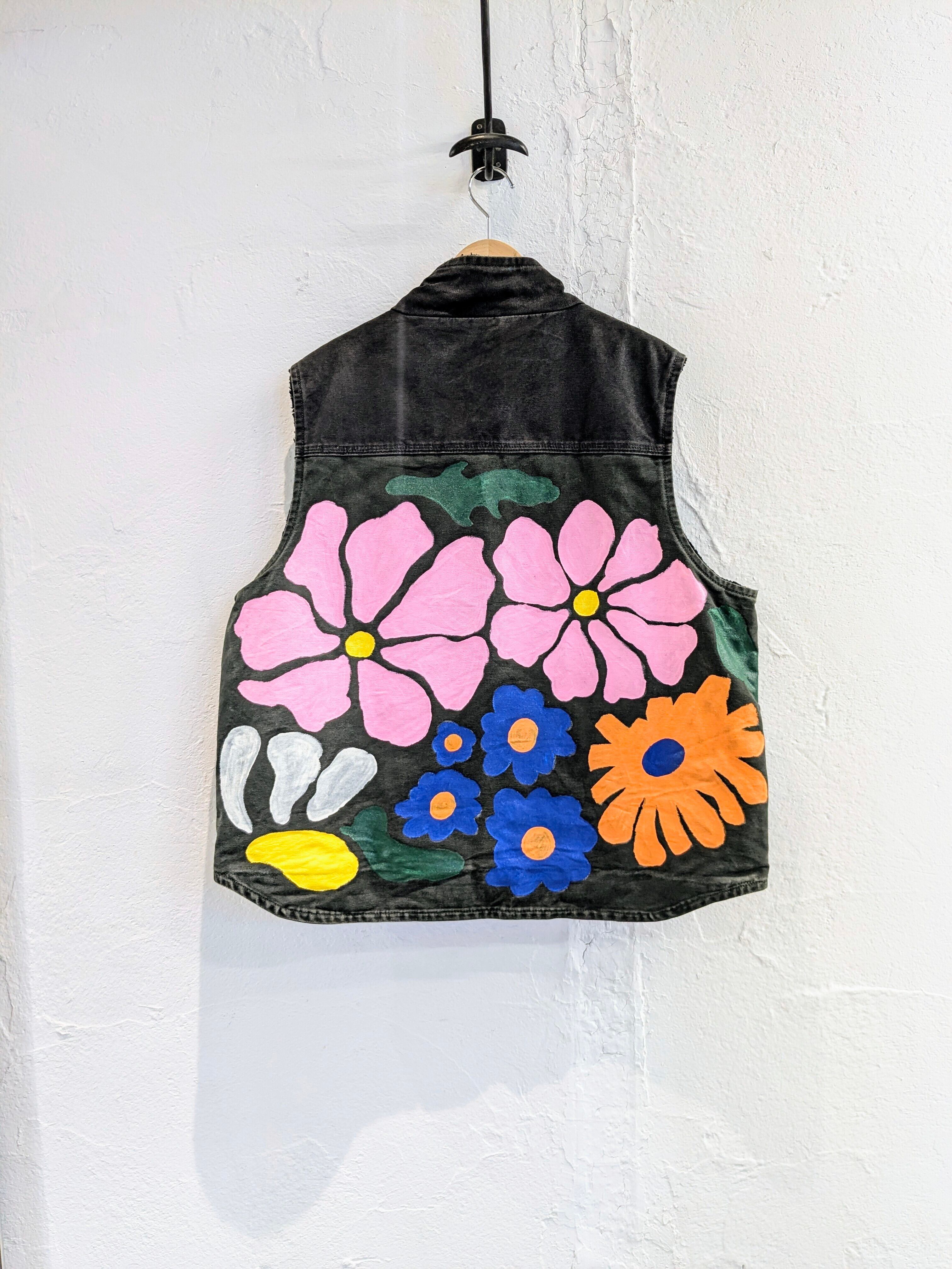 Repair & Hand Painted Flower Design Duck Material Vest "carhartt"