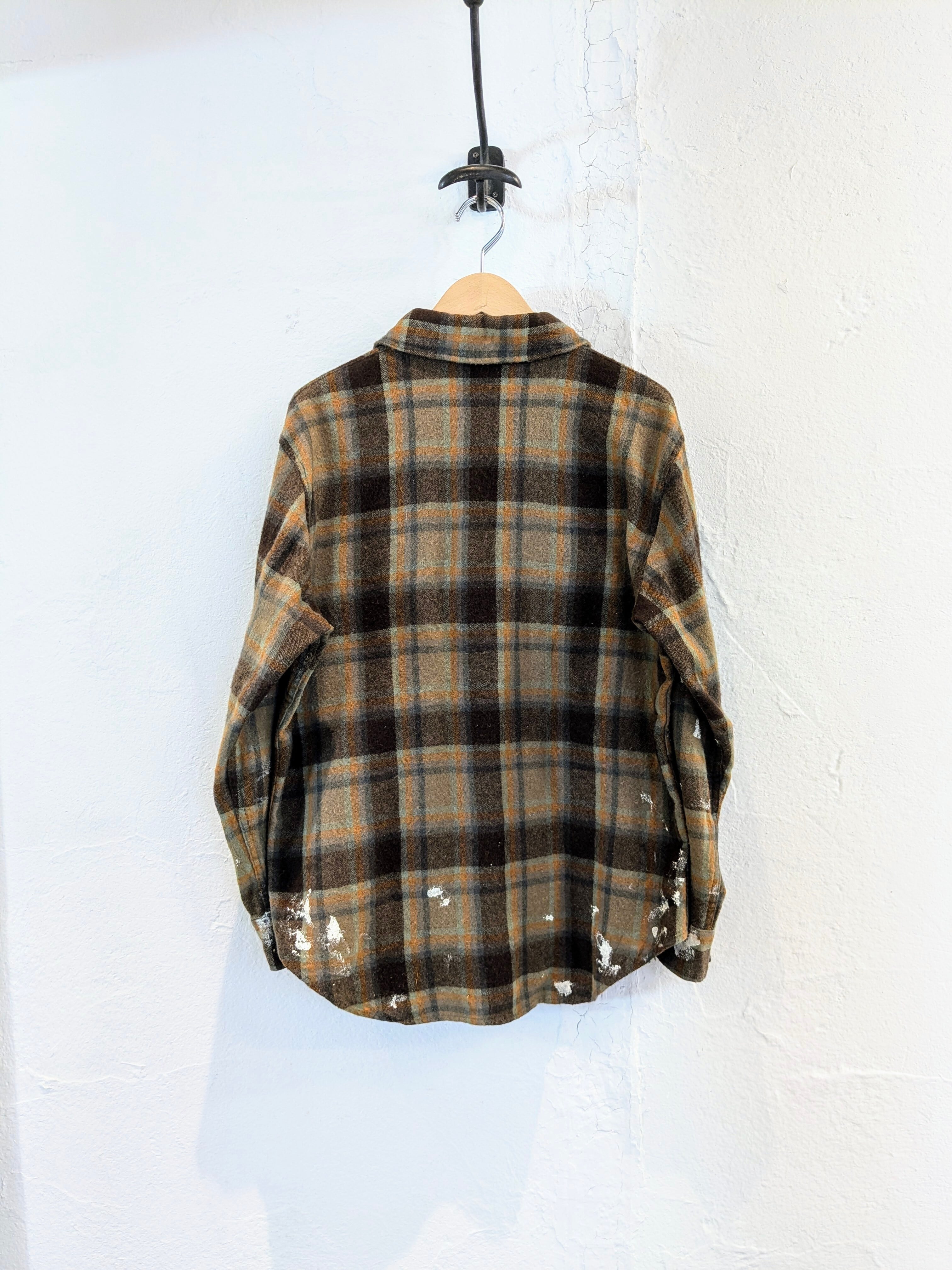 ペンキのヨゴレがまた雰囲気良いアイテムです。形はベーシックで、色も使いやすい一着。インナーでも、一枚着でも存在感を放ってくれます。