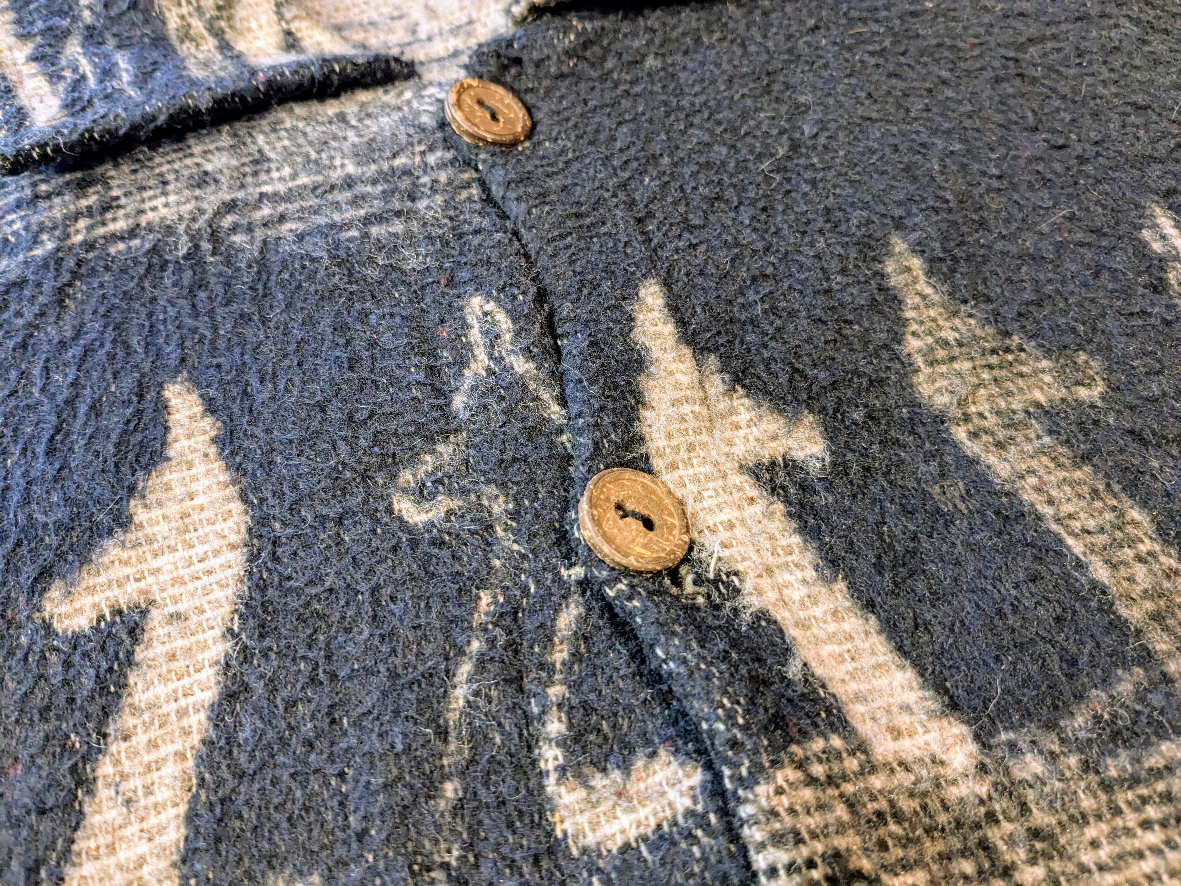 ショート丈ですが、身幅が広くシルエットがめちゃくちゃいい感じ。肩も落ちるようになっているので、体型など選ばず着ていただけます。ウール混かはちょっと分かりかねますが、見た目以上に軽いのでとても着やすくなっています。毛羽立ちなどあります。