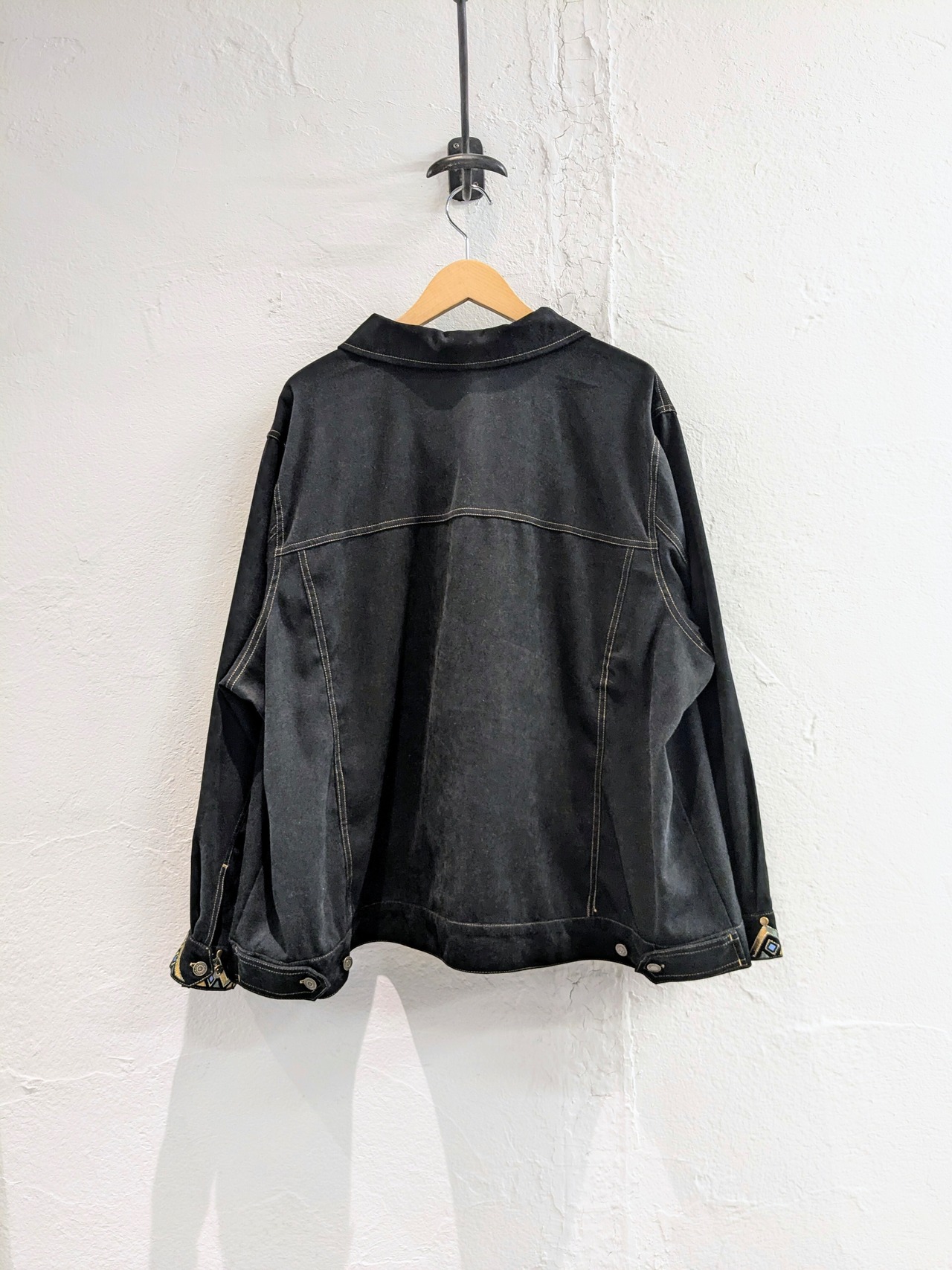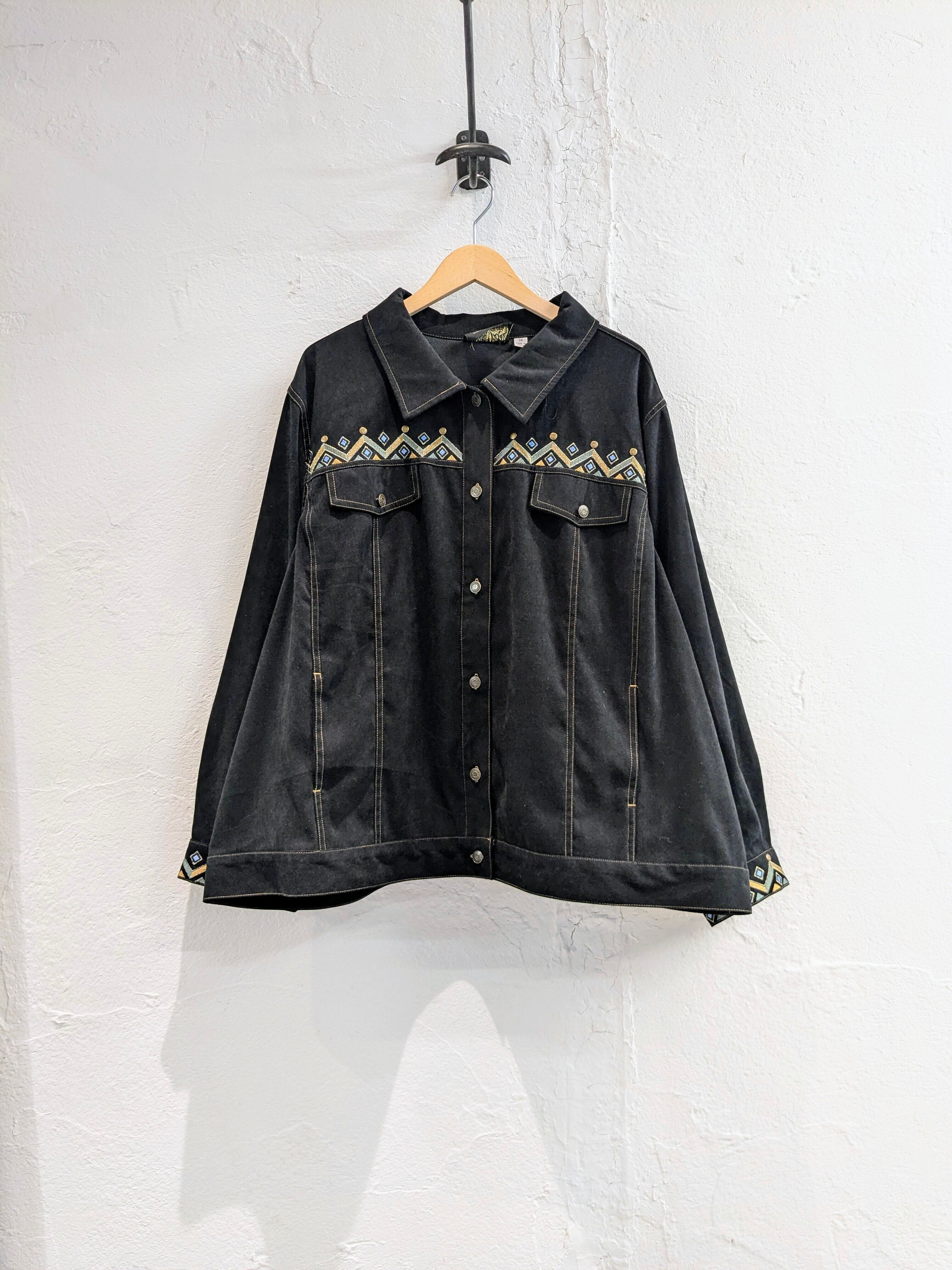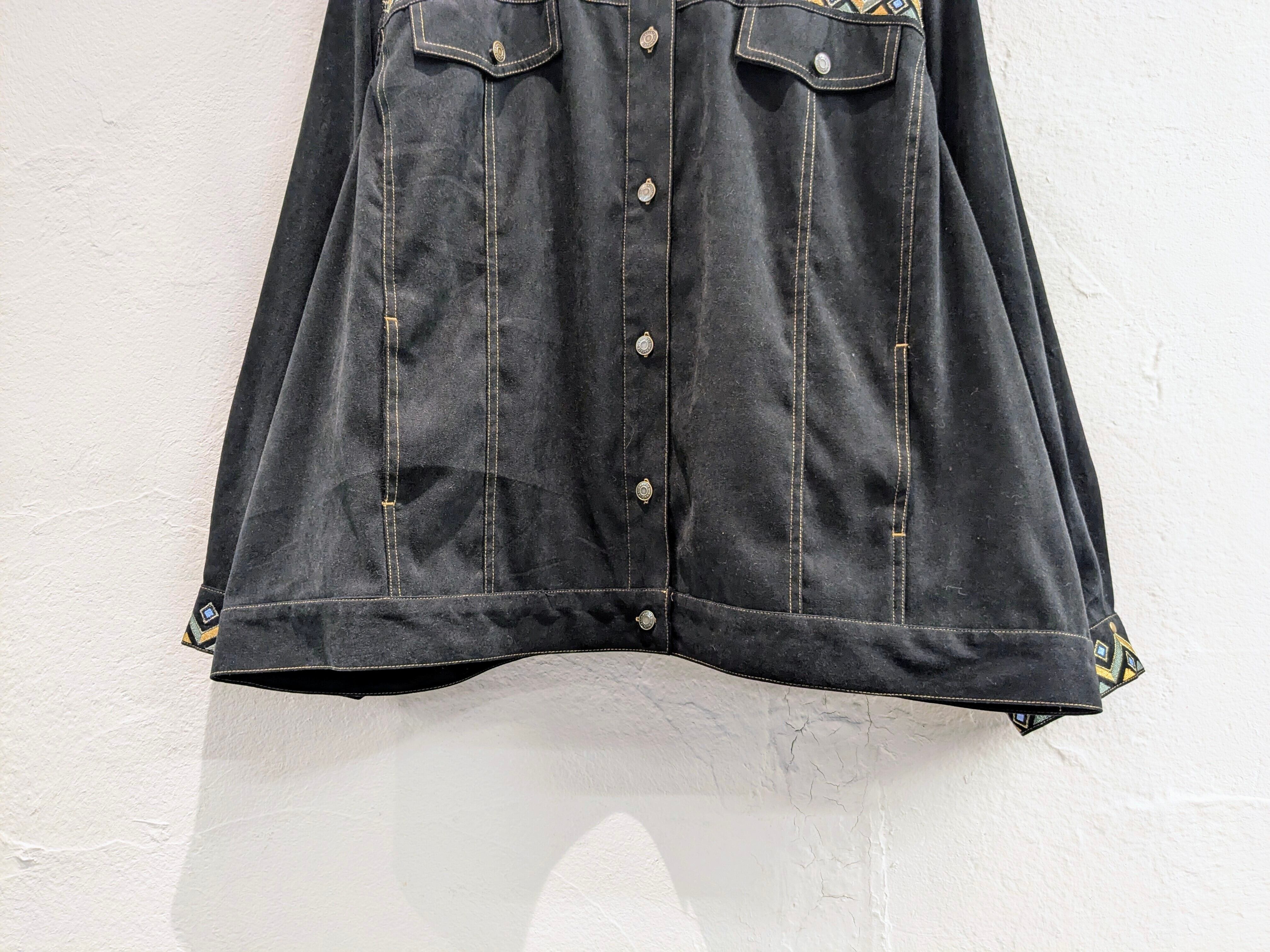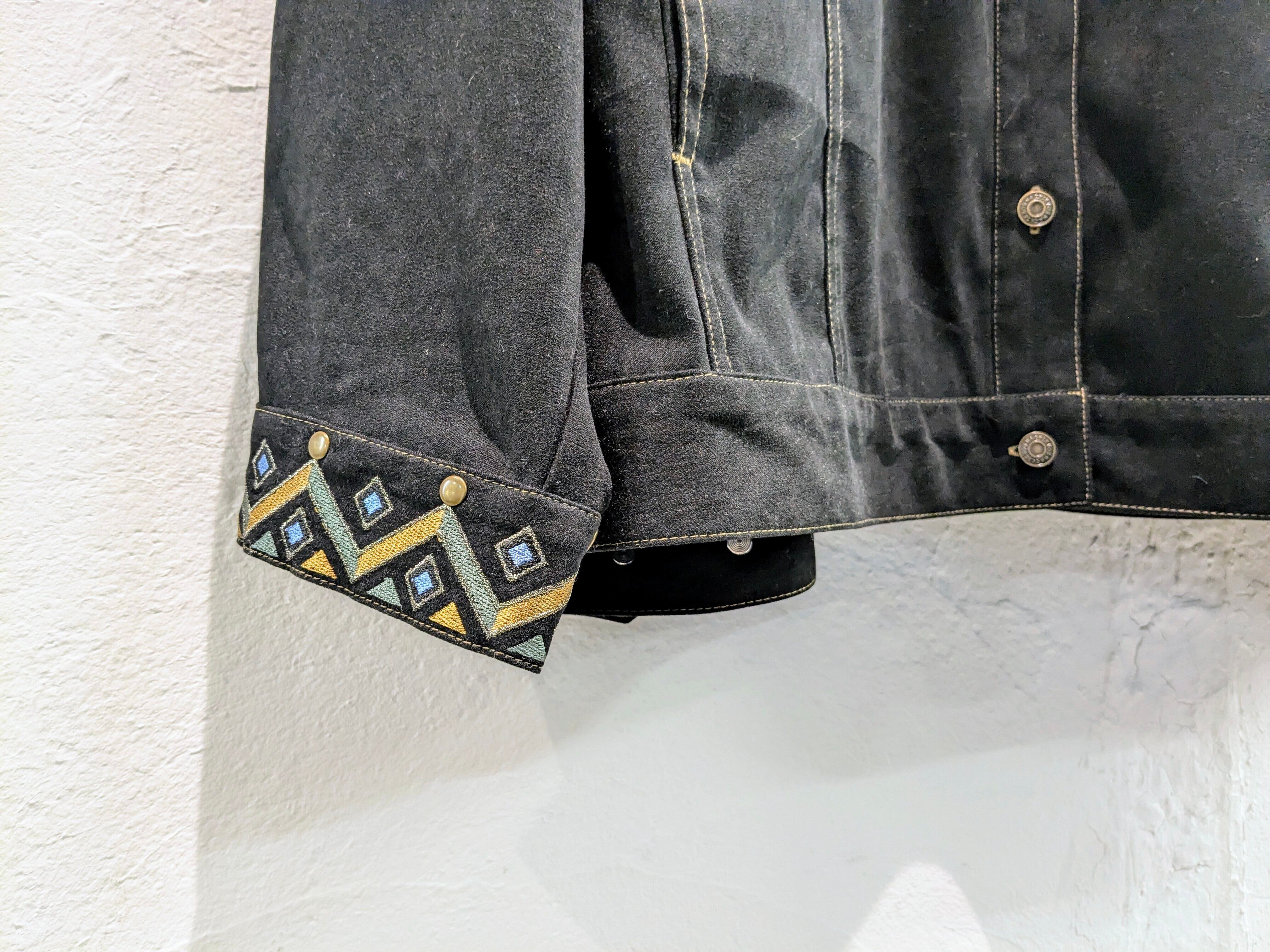 刺繍とスタッズのデザインが施されたフェイクスウェードのブルゾン。