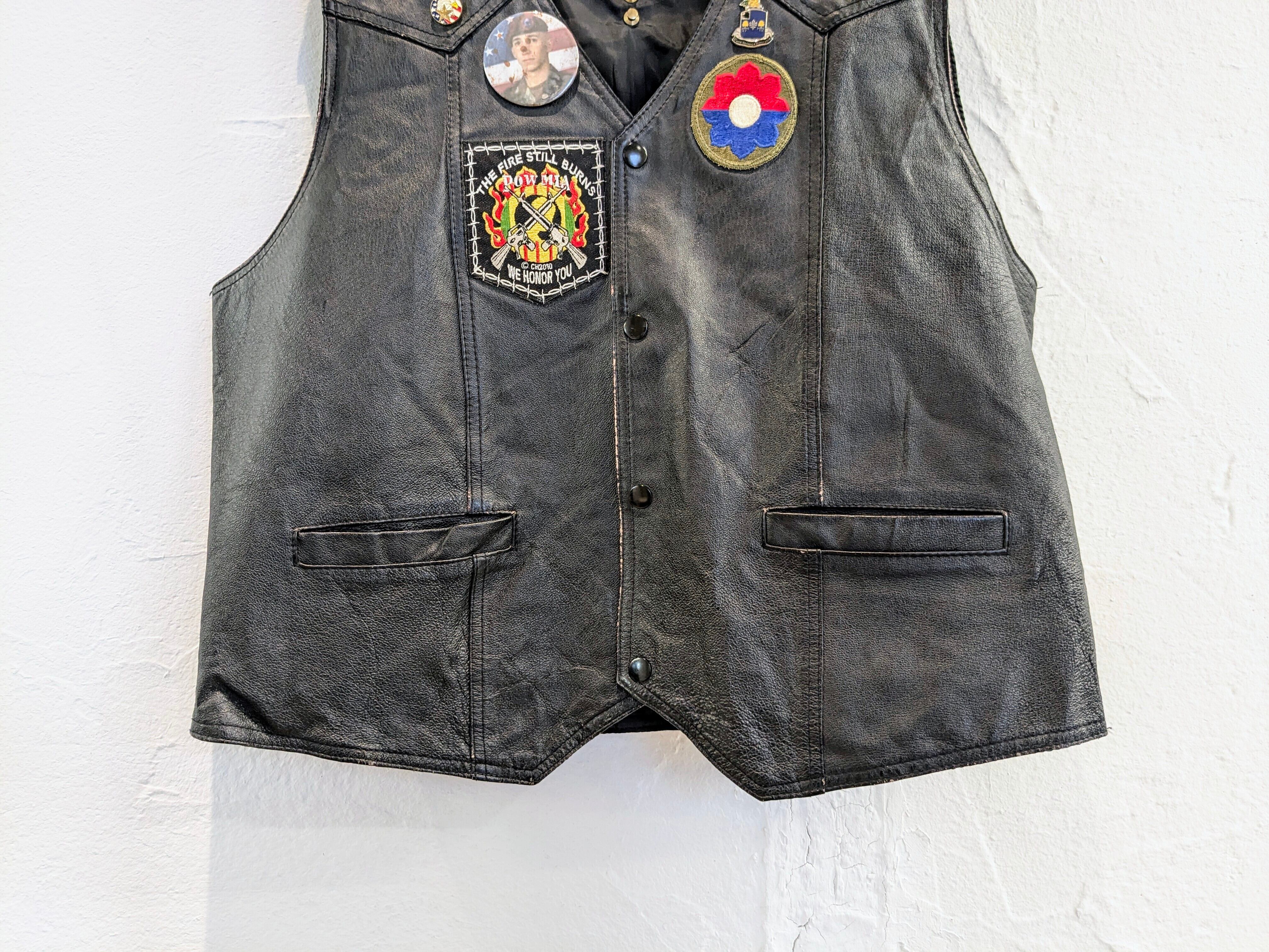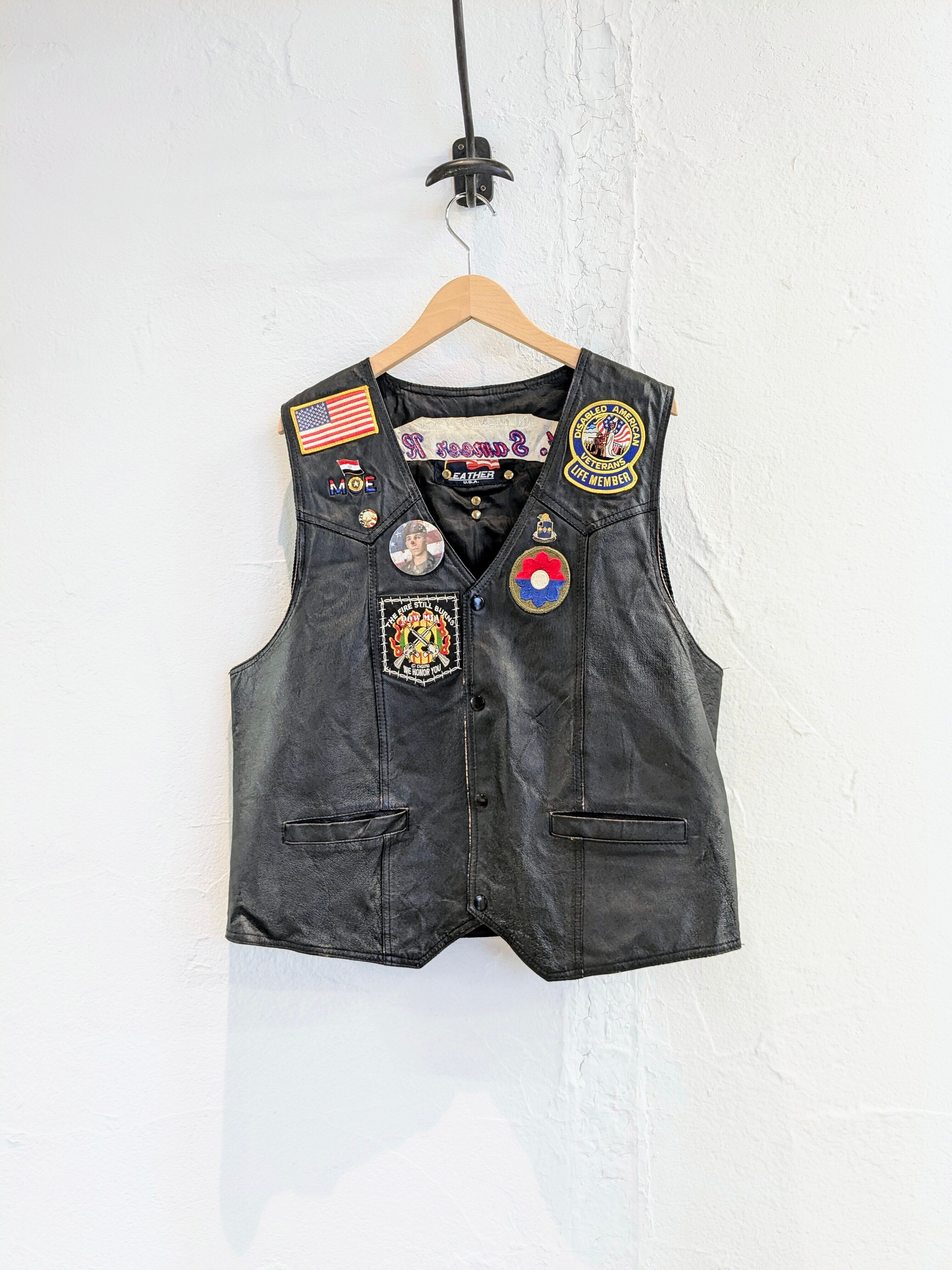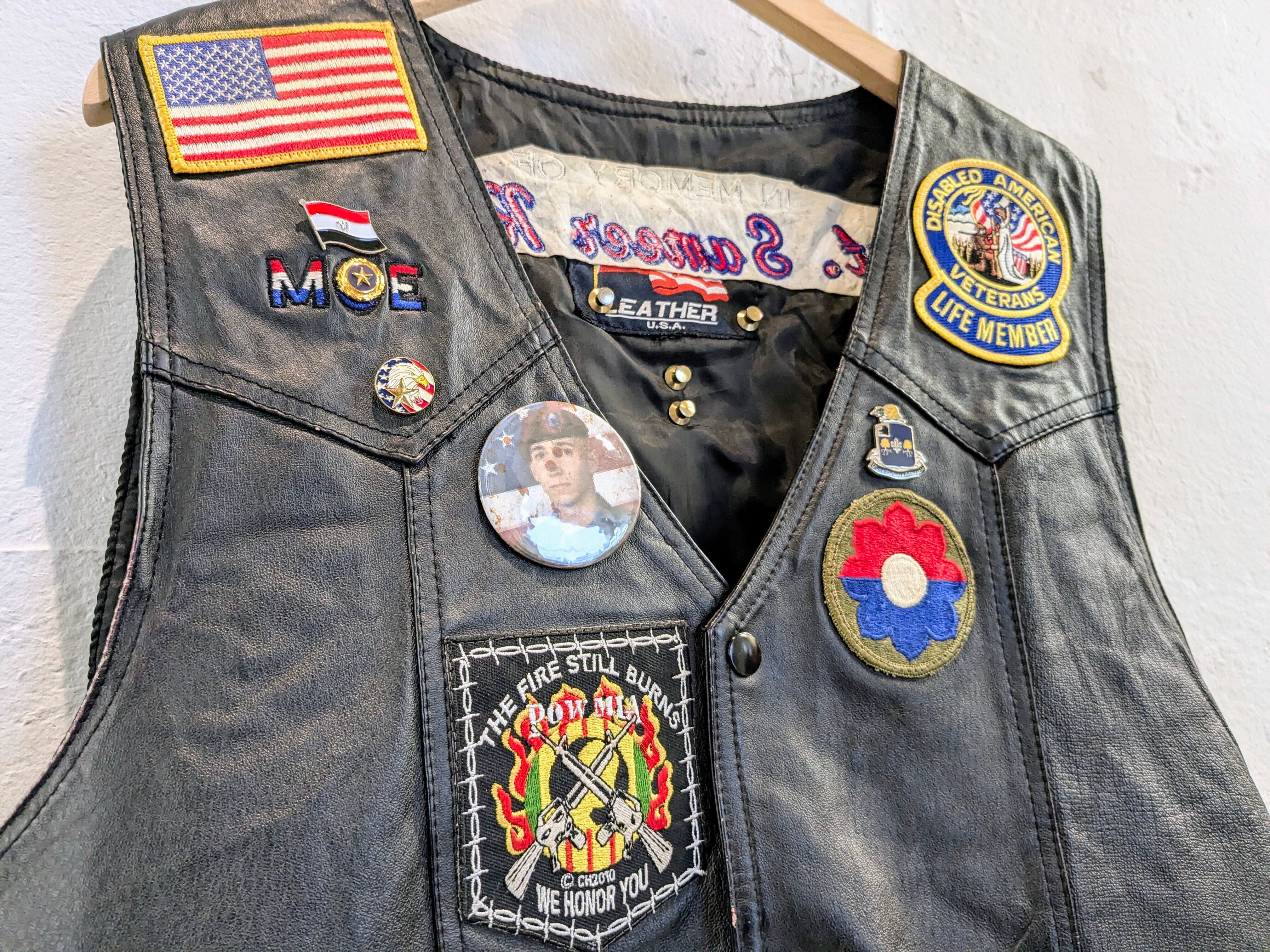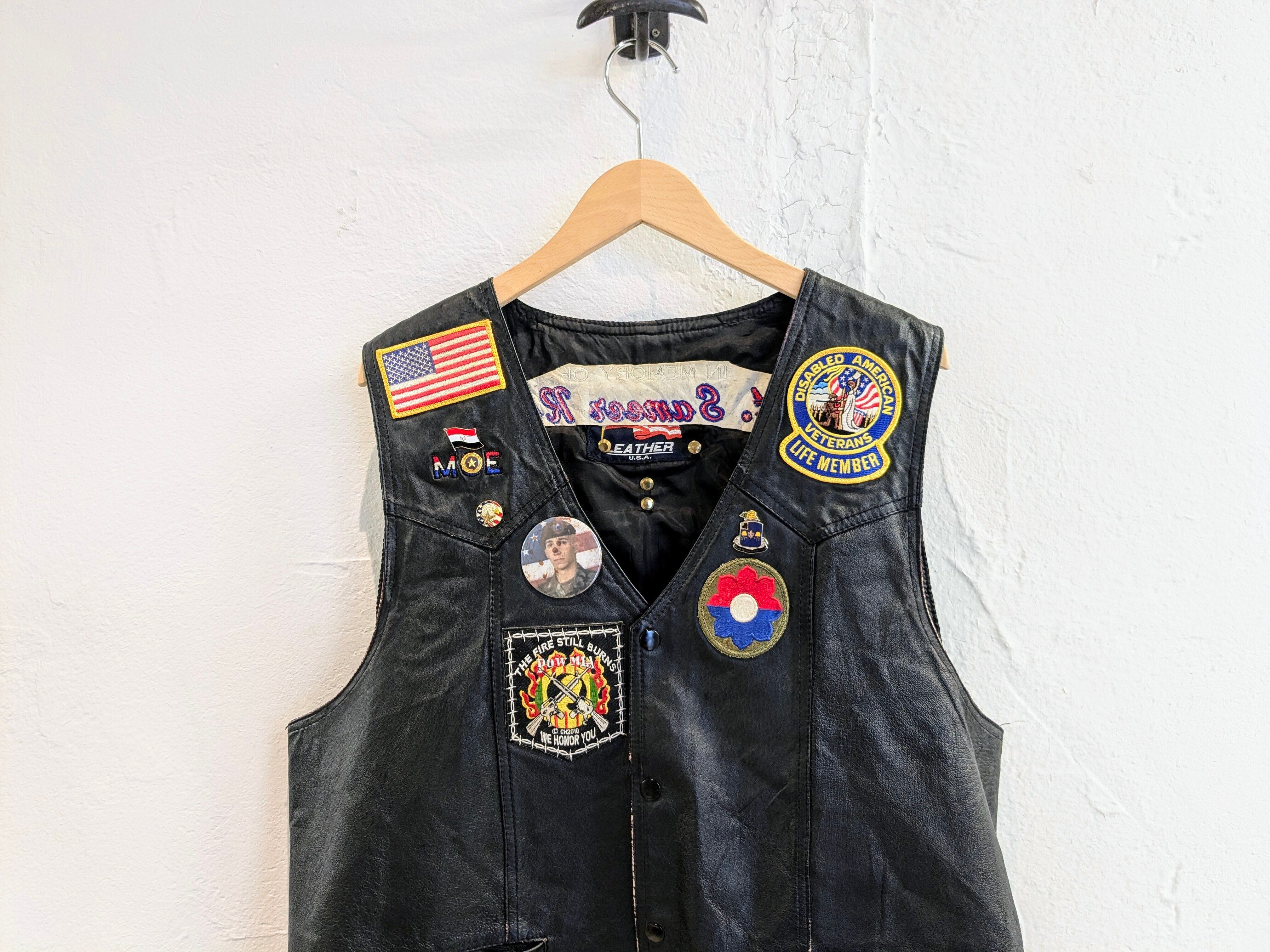 アメリカ傷痍軍人会とは、アメリカ合衆国議会による認可のもとでアメリカ軍の傷痍軍人およびその家族の援護を目的に設置された組織。こちらを着てまわられていたのではないでしょうか。雰囲気漂う一着。ピンズ、ワッペンはもちろんボディのレザーも比較的状態は良好。ジャケット、ブルゾンの上から羽織る着方もありかと。フロントボタン横スレあり。