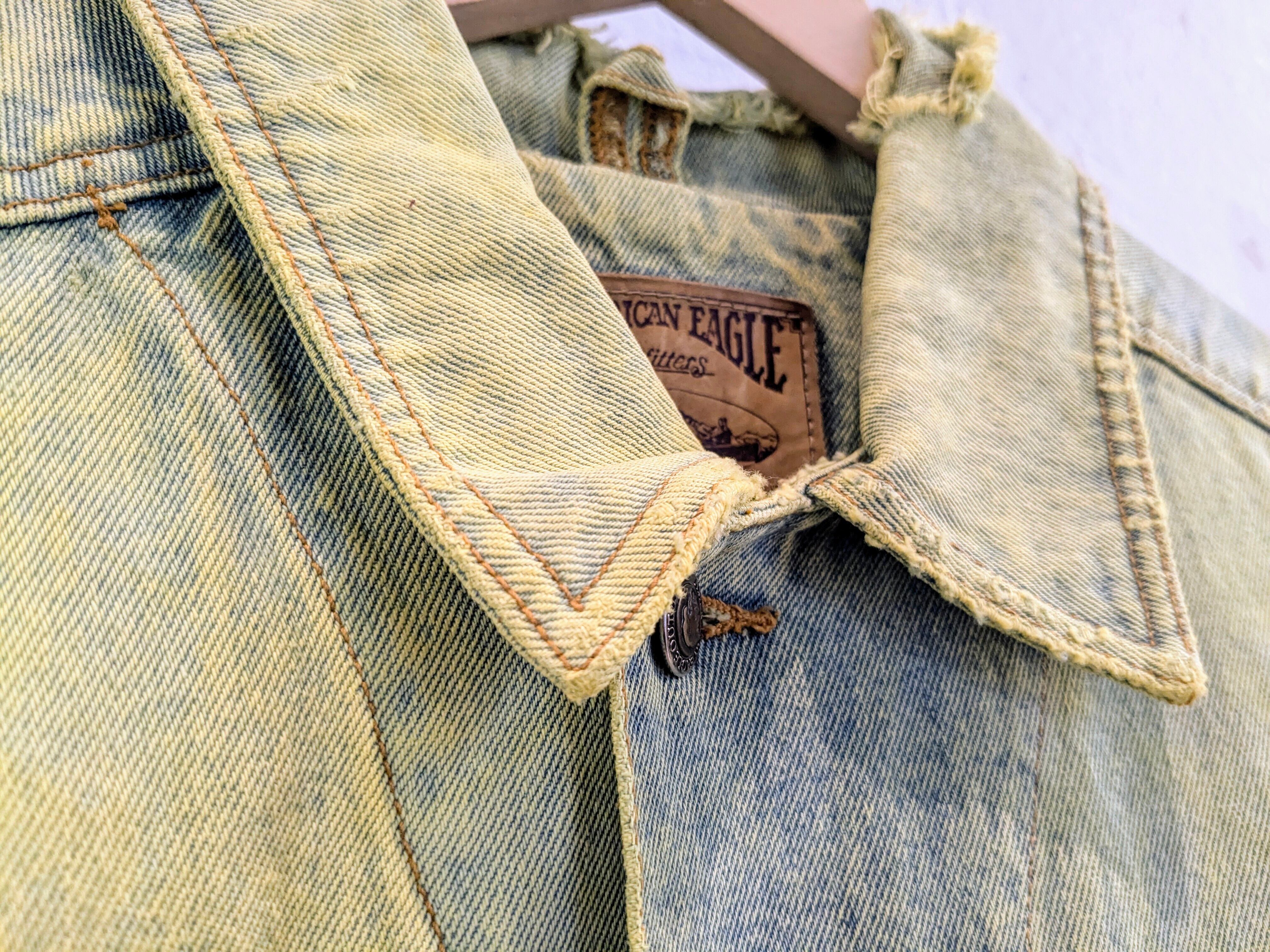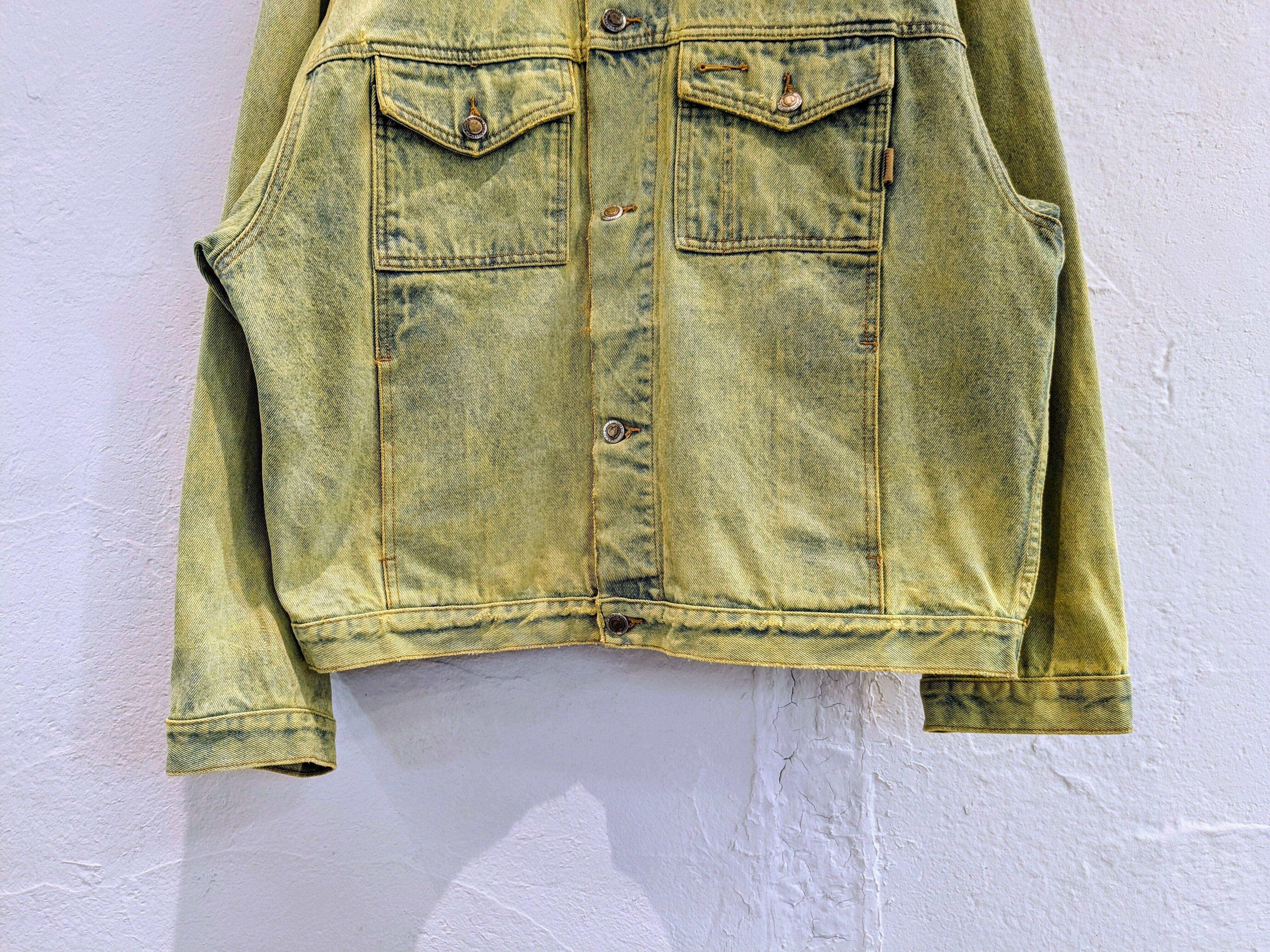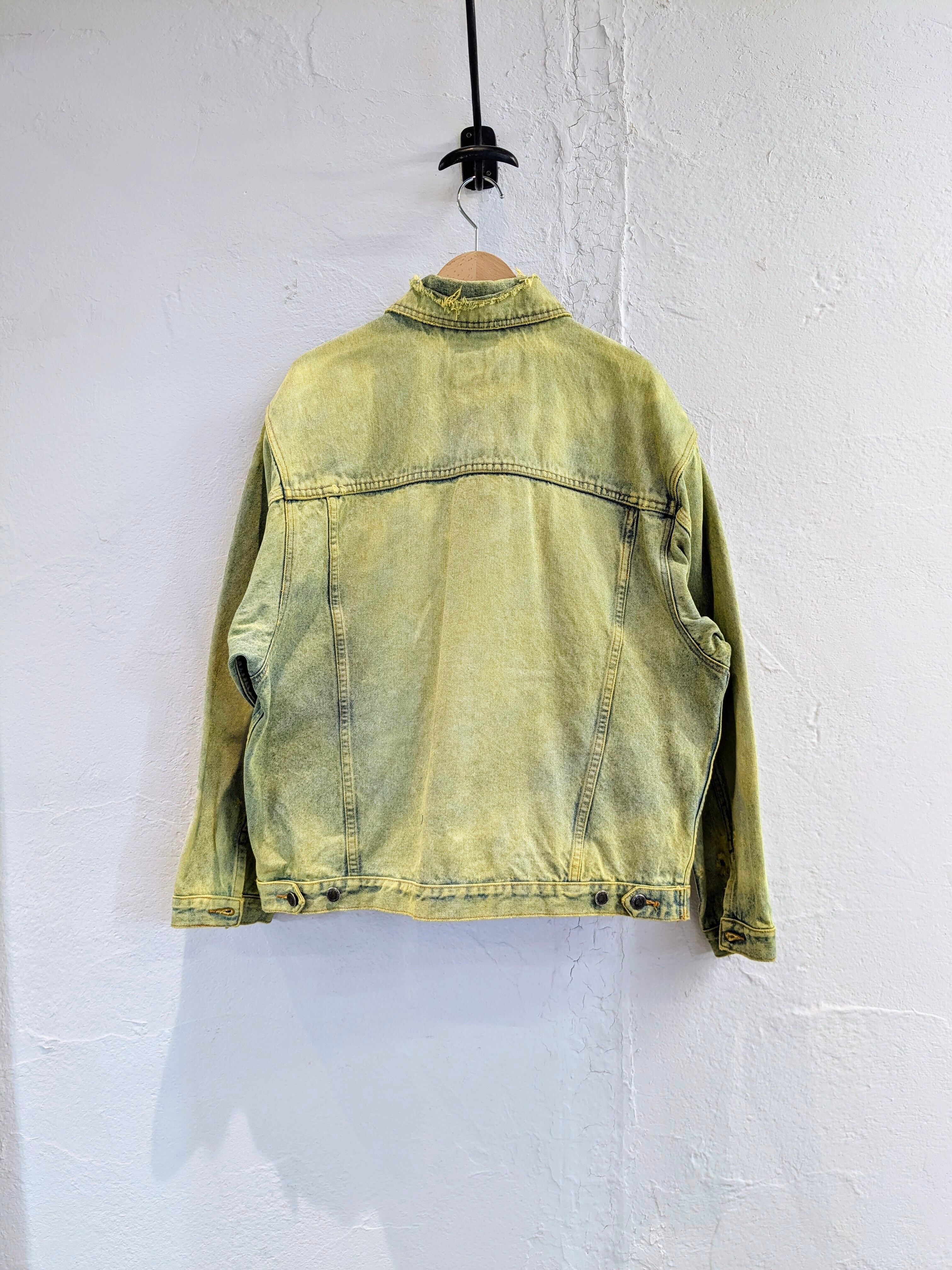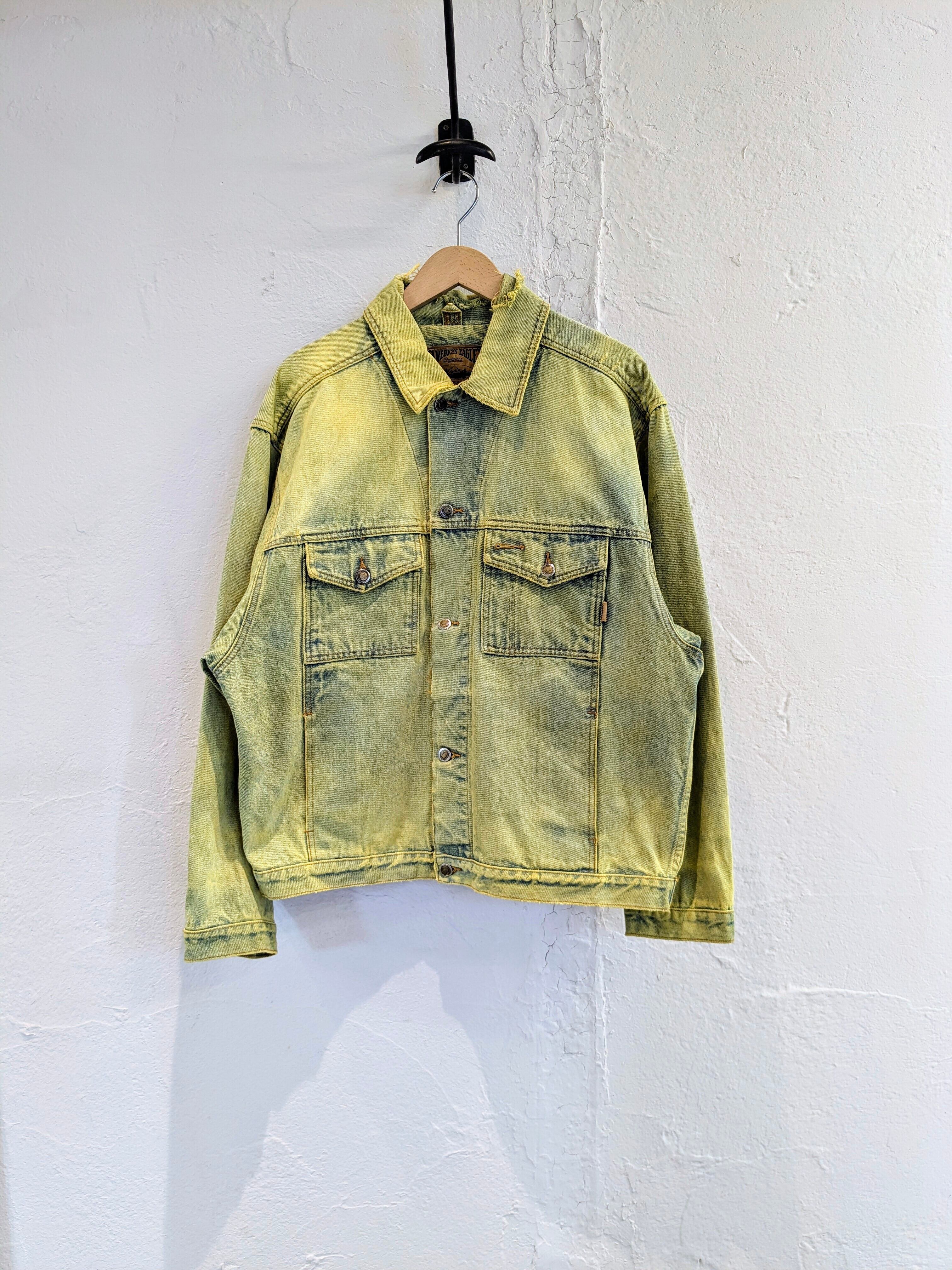 色が入りやすいように一度色を抜き、そこから染色をしてもらっています。ダメージなどは元々の個体のものになります。そのダメージの感じもまた雰囲気があり良い感じです。個体差もそうですが、色の出方など全て変わってしまうので全て1点物となっています。古着などで探すとなかなか出てこないかと。