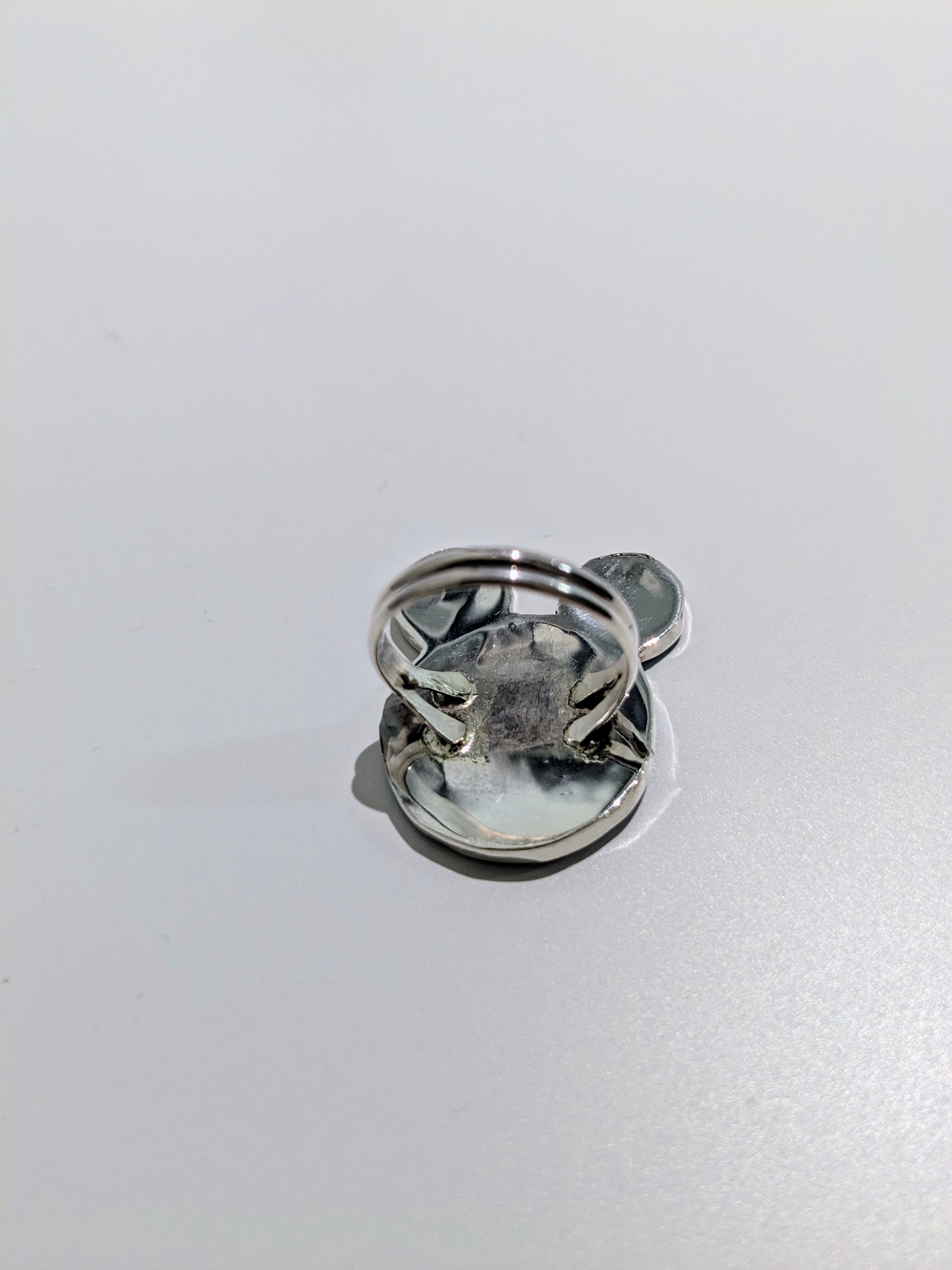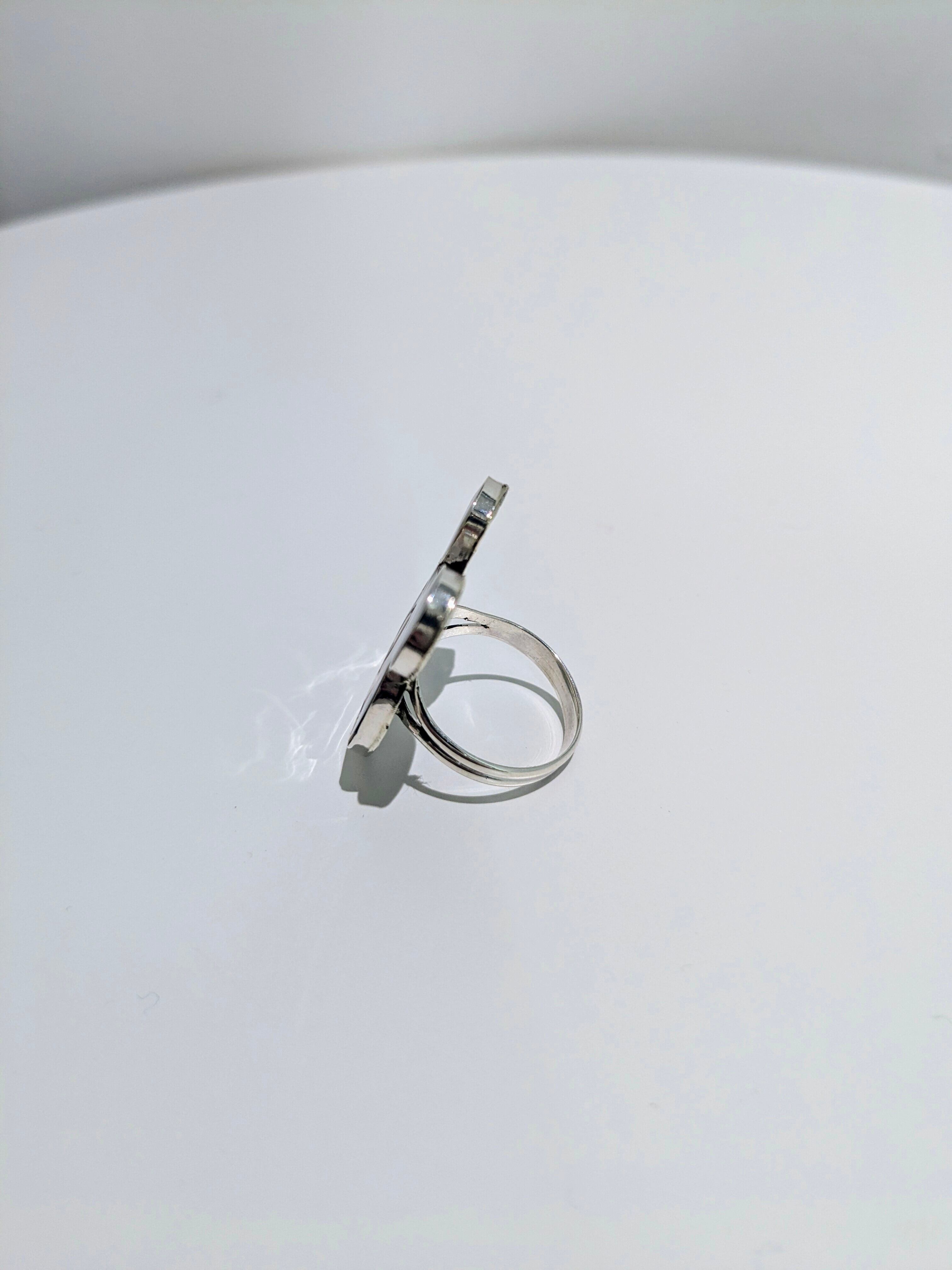 可愛らしいキャラクターがインレイワークされた、ズニ族のリングになります。