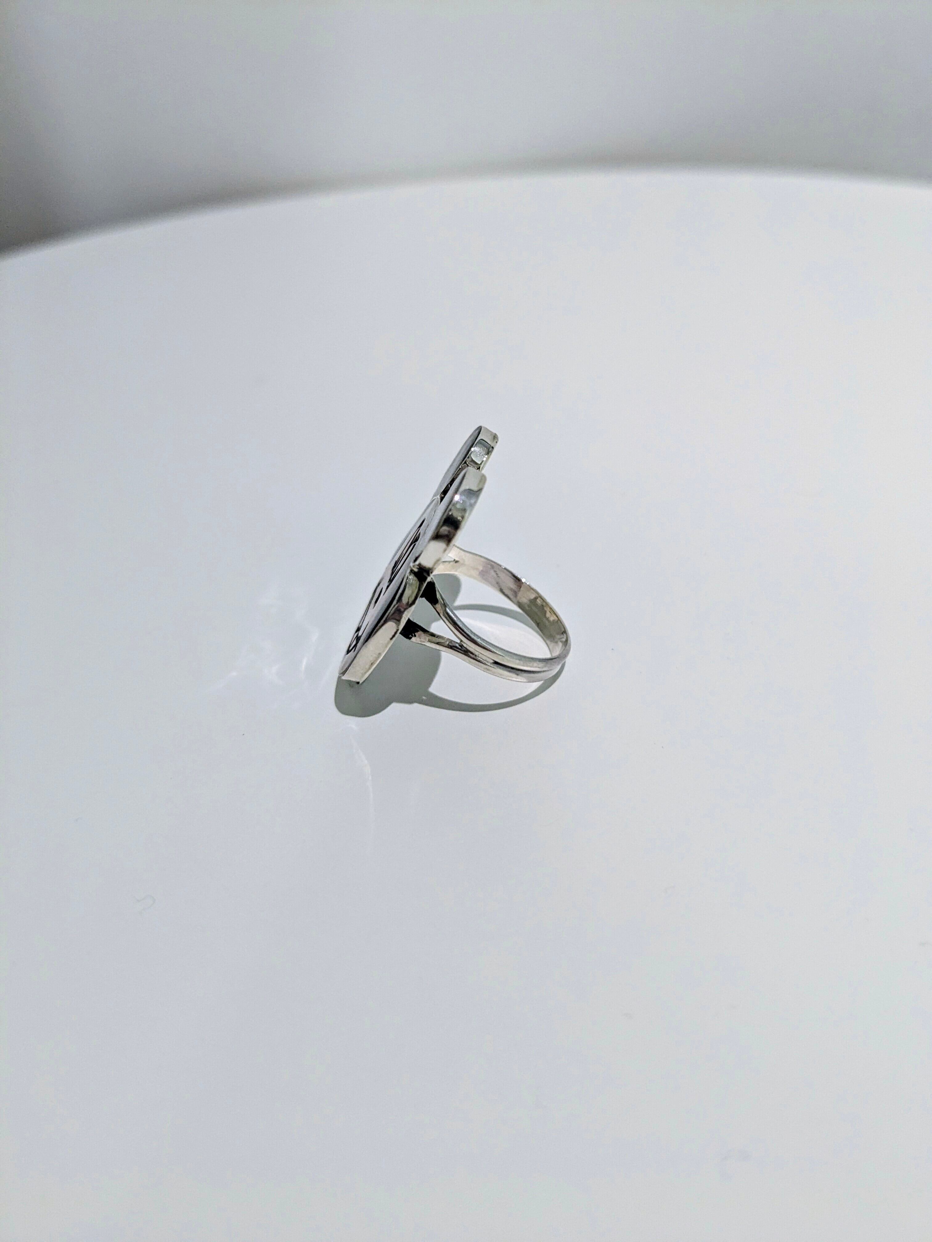 可愛らしいキャラクターがインレイワークされた、ズニ族のリングになります。