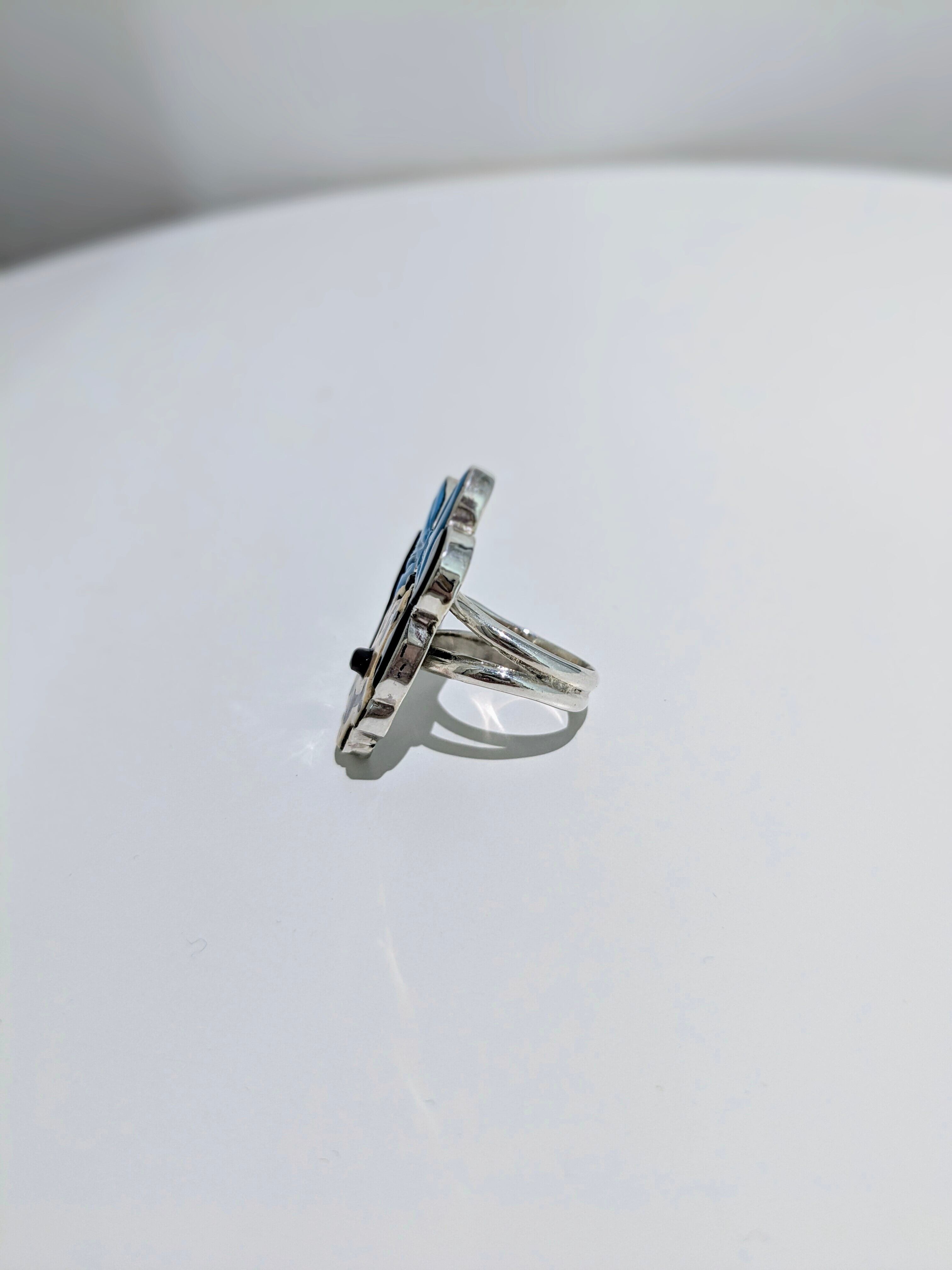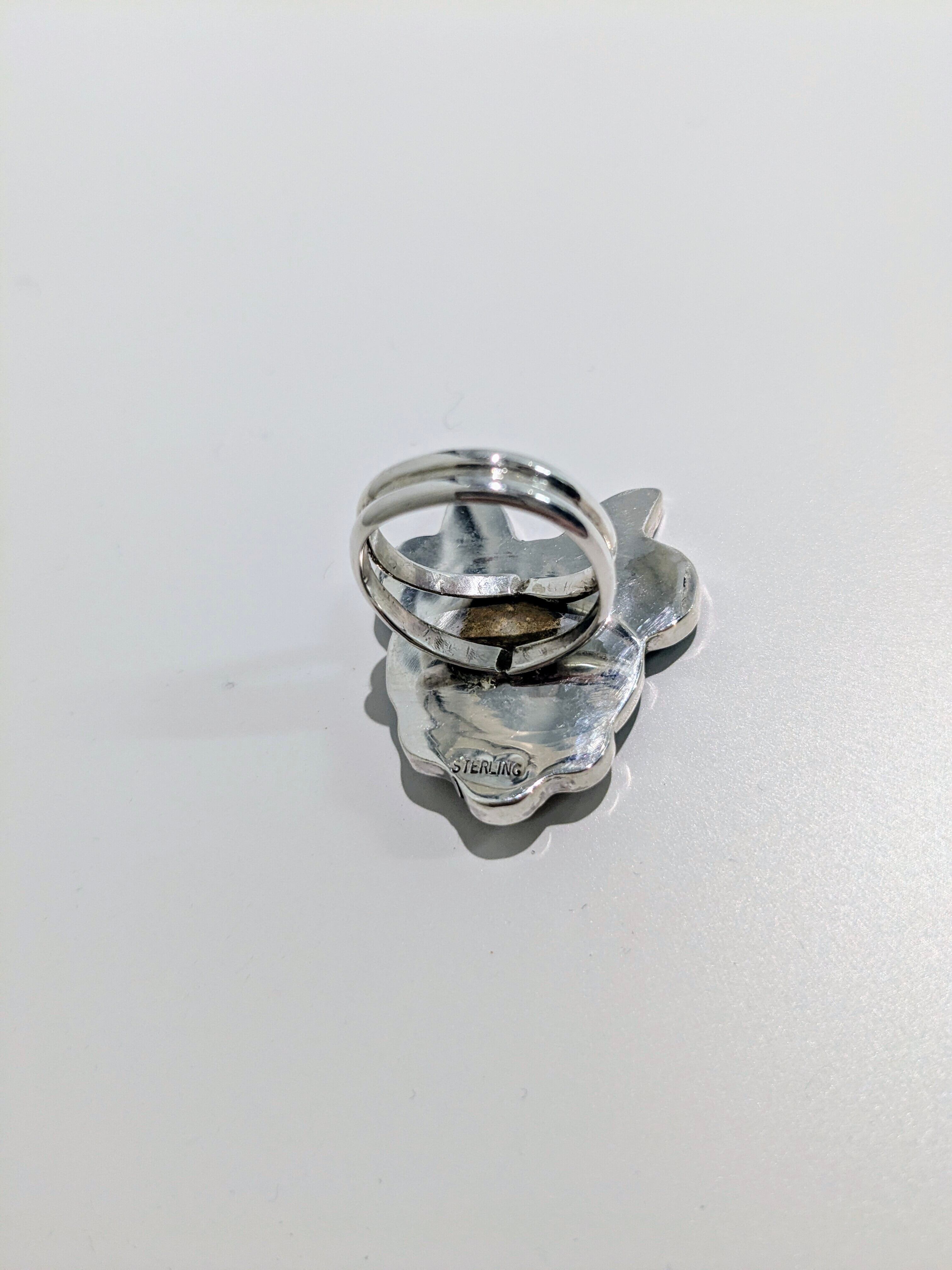 可愛らしいキャラクターがインレイワークされた、ズニ族のリングになります。