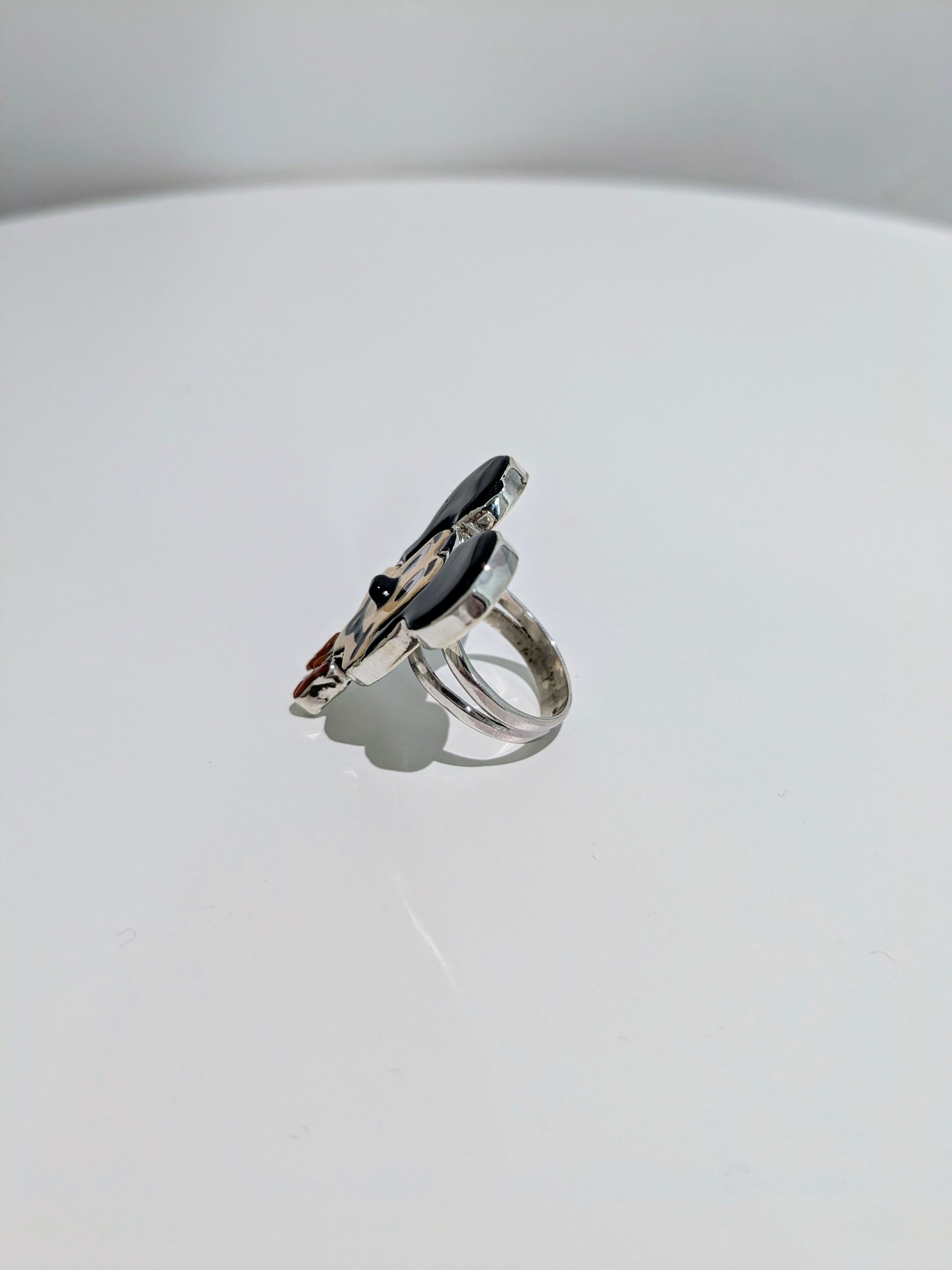 可愛らしいキャラクターがインレイワークされた、ズニ族のリングになります。