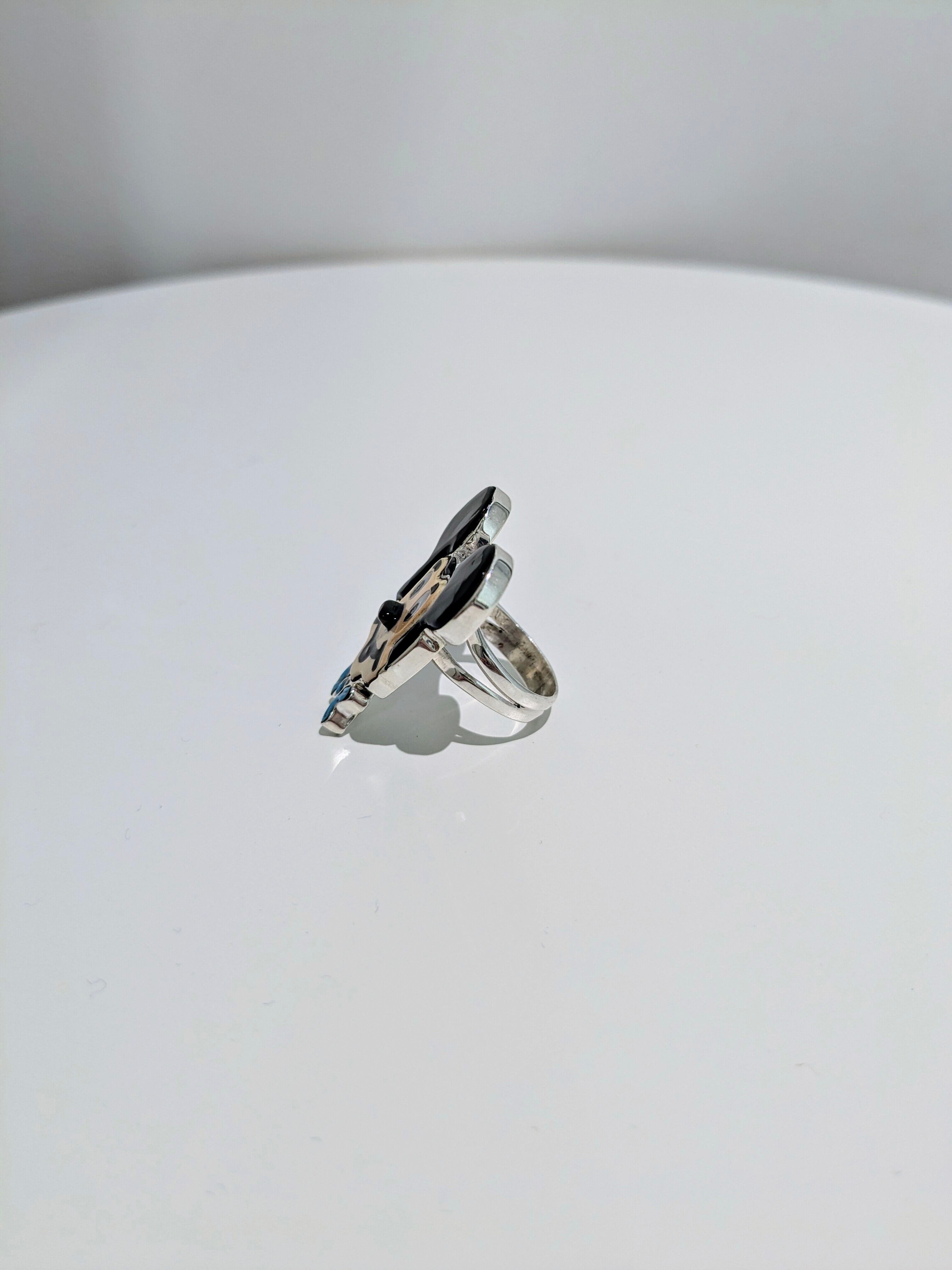 可愛らしいキャラクターがインレイワークされた、ズニ族のリングになります。