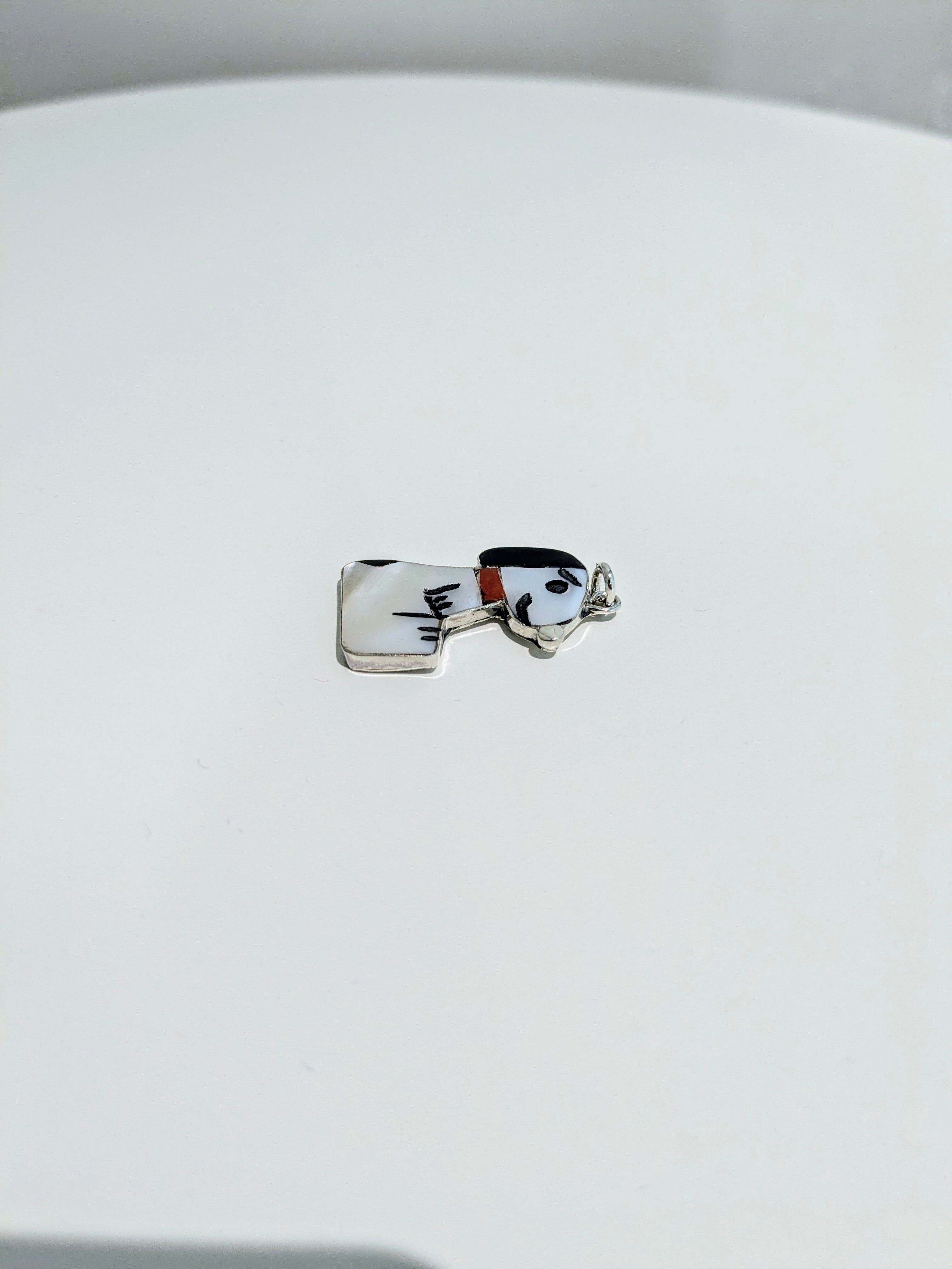 Shenel Comosona(シェネル コモソネ)は、ズニ族のアーティストで、細かなインレイ技法を得意としています。特にキャラクターアイテムの制作が代表作の一つで、スヌーピーをモチーフにした作品も作られています。為替の変動、価格変動に伴いお値段帯が変わることがございますので、ご了承ください。