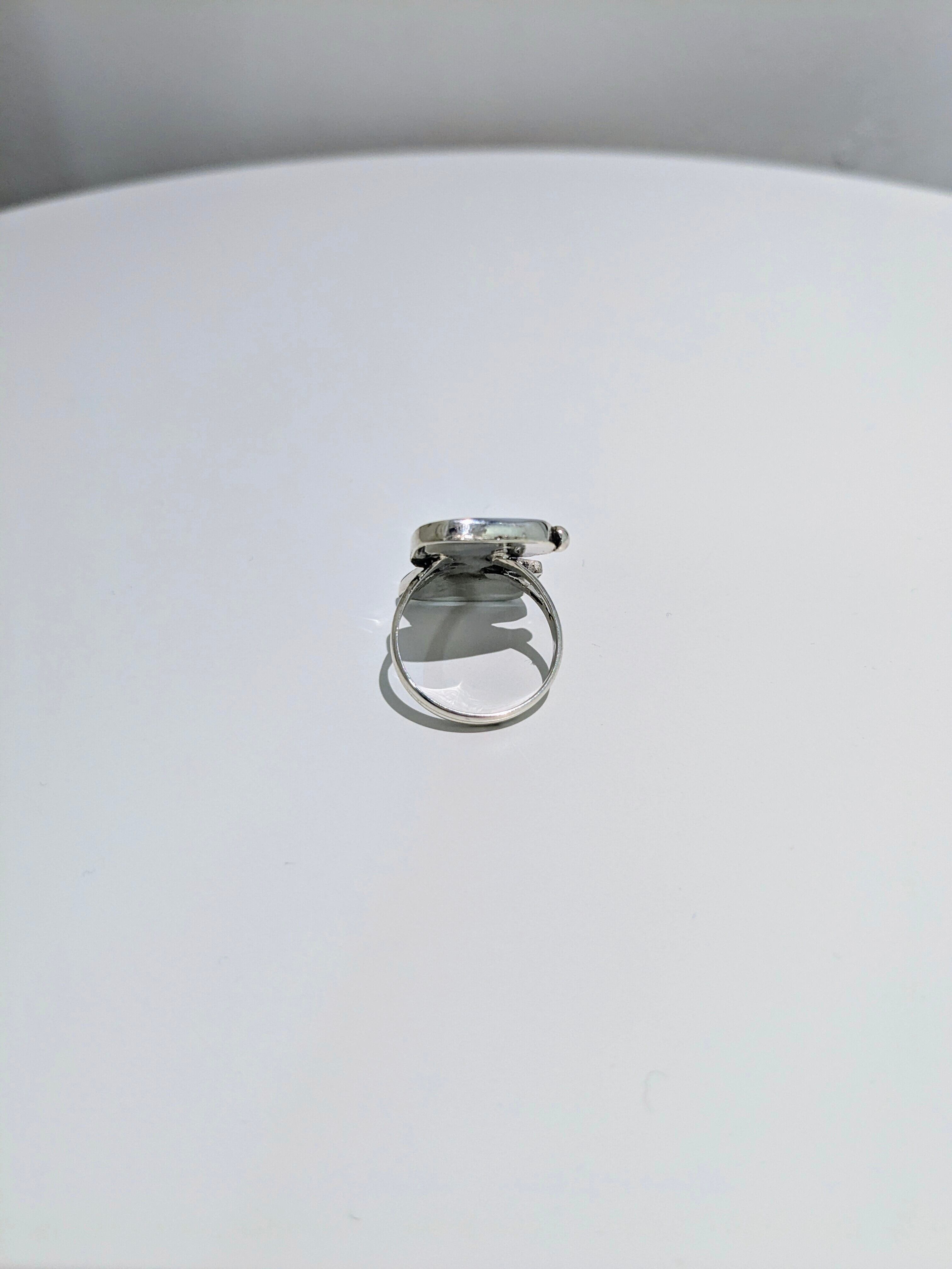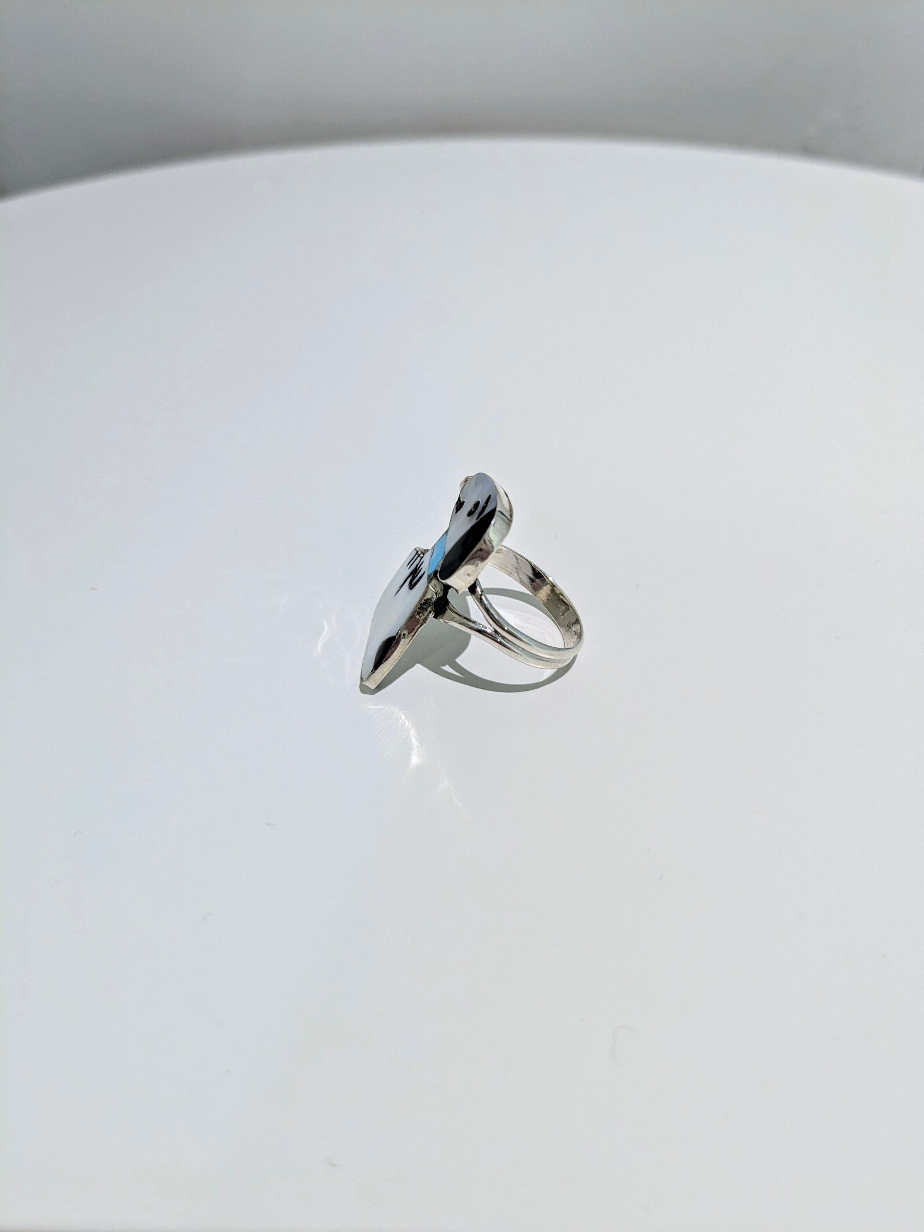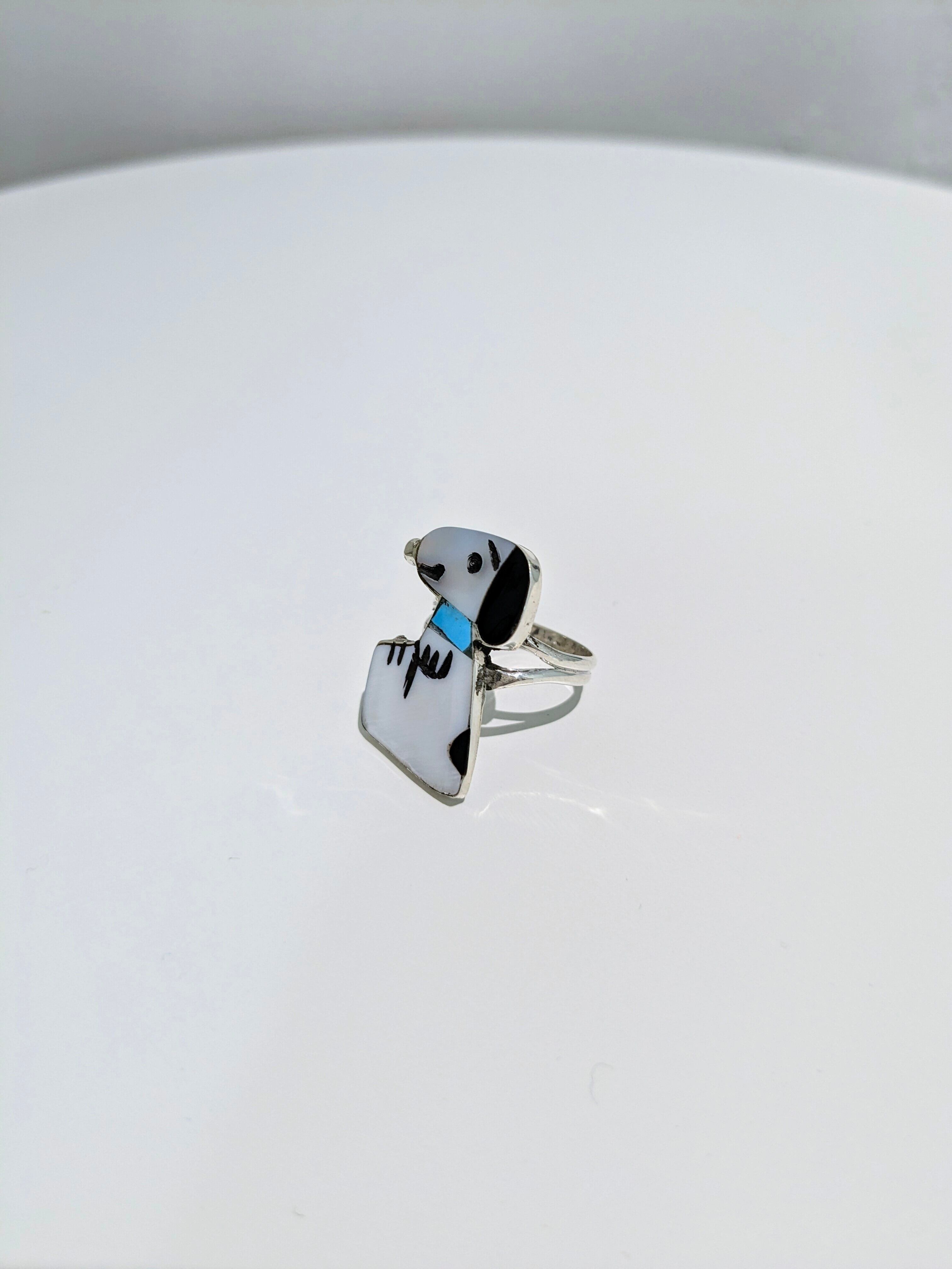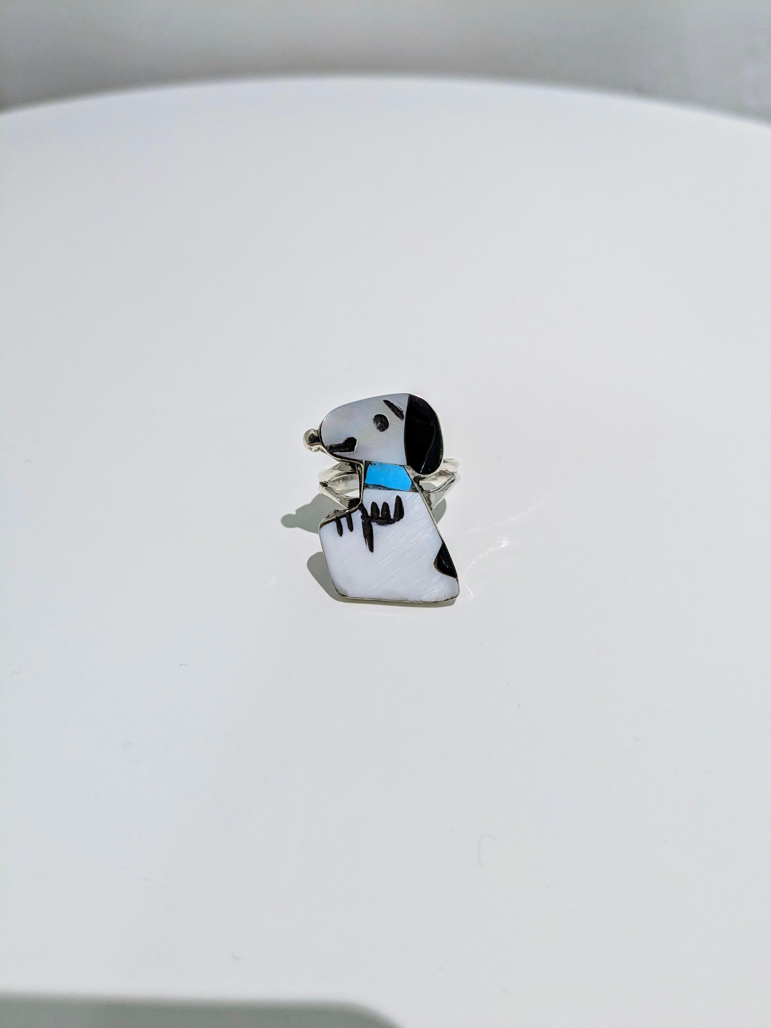 可愛らしいキャラクターがインレイワークされた、ズニ族のリングになります。